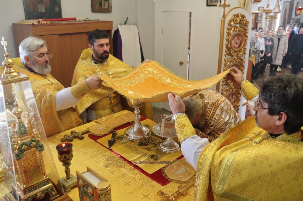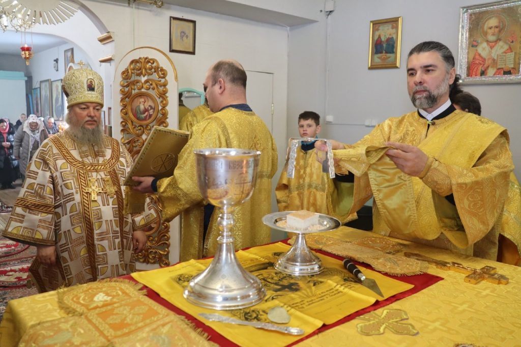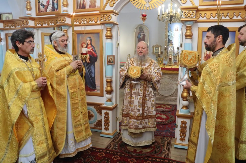 Его Преосвященству сослужили: ключарь кафедрального собора Архангела Михаила г.Сердобска, епархиальный древлехранитель иерей Роман Турецких; настоятель храма свт. Николая Чудотворца с.Пичевка Белинского района протоиерей Павел Ирбе; настоятель собора Покрова Пресвятой Богородицы г.Белинского иерей Георгий Благодарёв; клирик кафедрального собора Архангела Михаила г. Сердобска иеродиакон Иннокентий (Ганин).