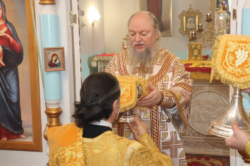 В завершение богослужения настоятель храма протоиерей Павел Ирбе поблагодарил епископа Митрофана за совместную молитву в праздничный день.