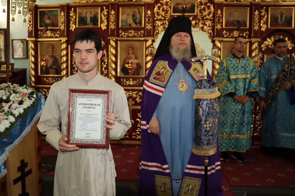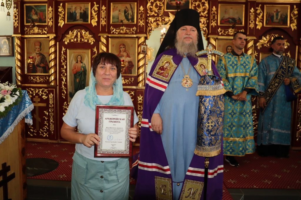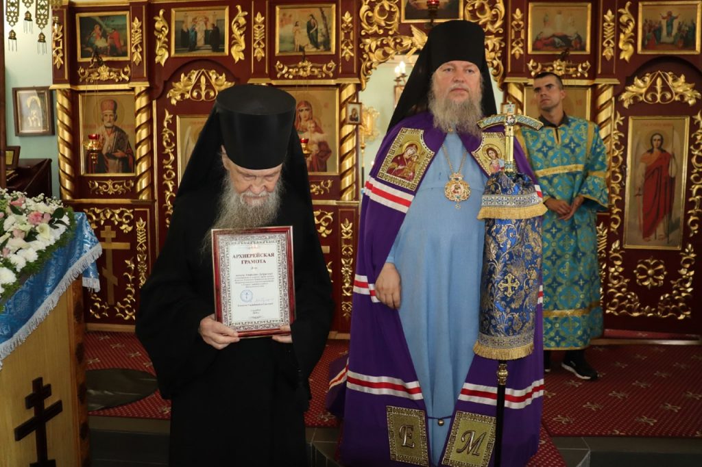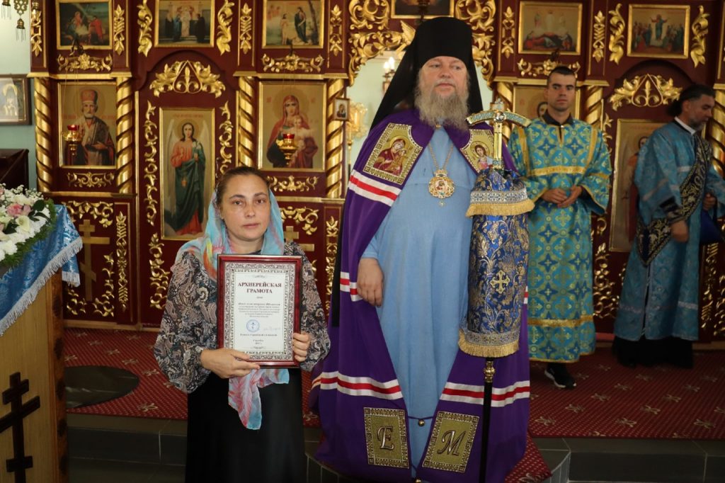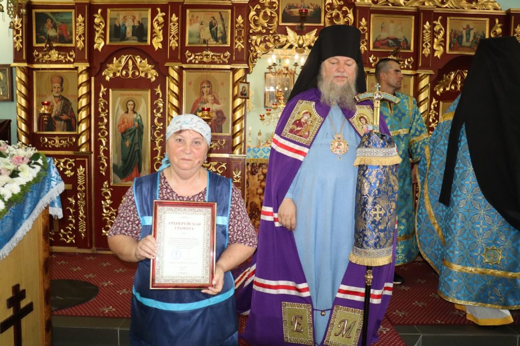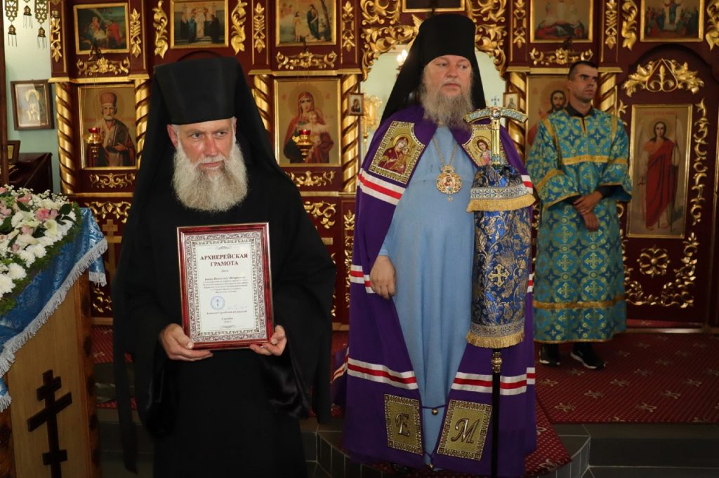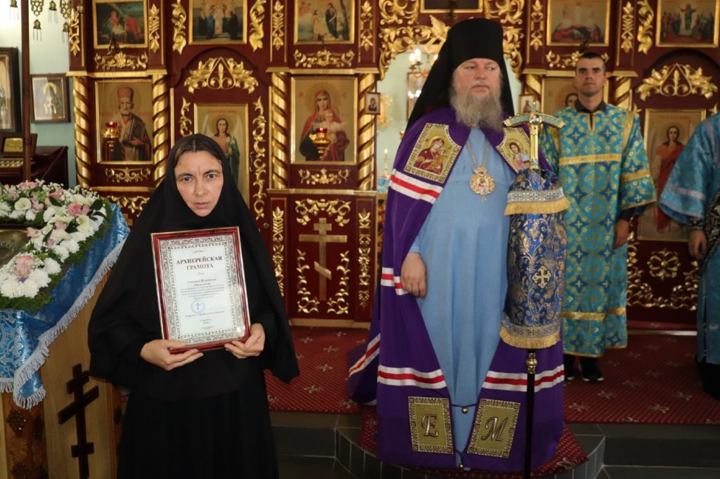 Епископ Митрофан в ответном слове поздравил верующих с престольным праздником и обратился с проповедью, по окончании которой вручил Архиерейские грамоты за усердные труды на благо монастыря. Награды удостоились: монах Амвросий (Зубрилов), инок Вячеслав (Некрасов), послушник Евгений Лутков, трудник Александр Васендо, монахиня Иоанникия (Малькова), О.А. Шмакова, В.В. Карчагин, И.Н. Дуванова, Н.В. Кобец, Н.А. Богданова.