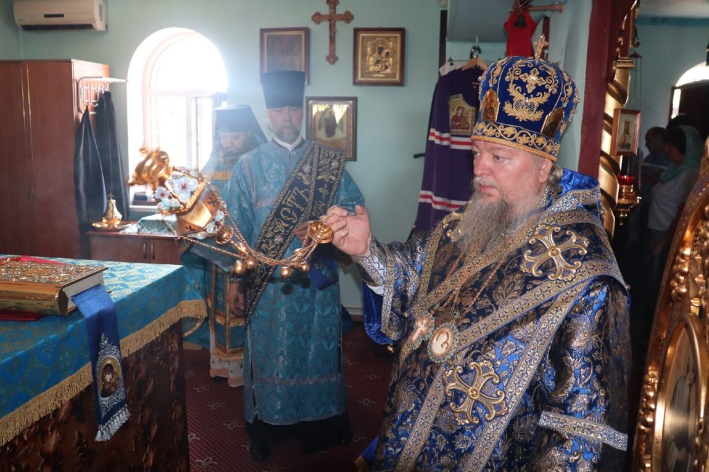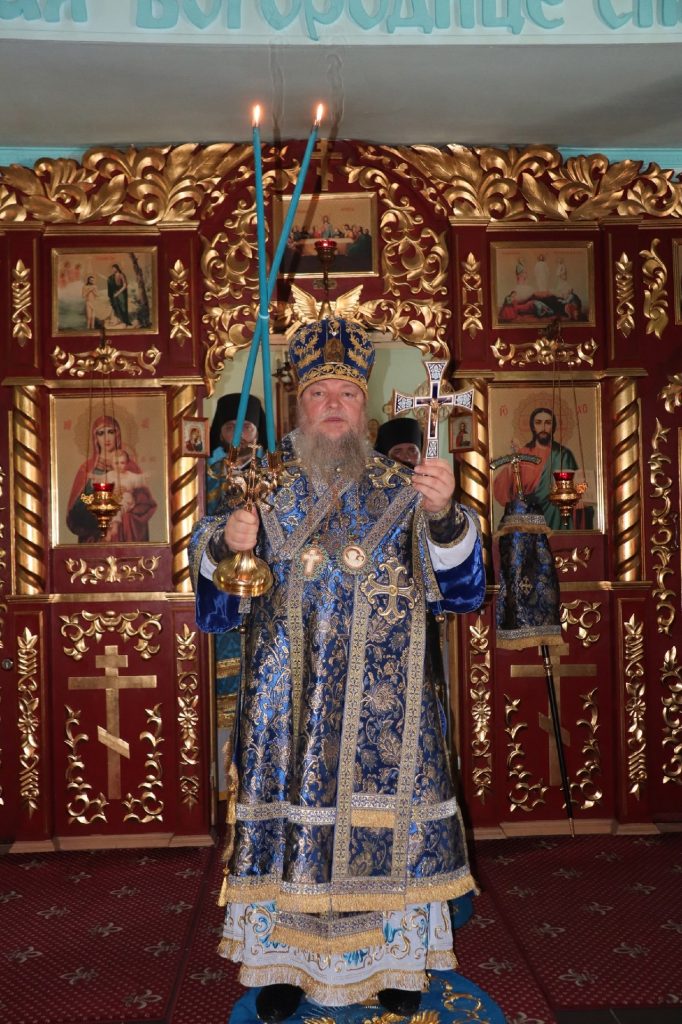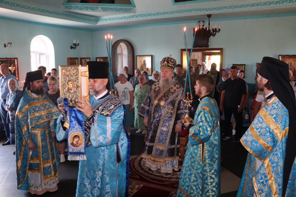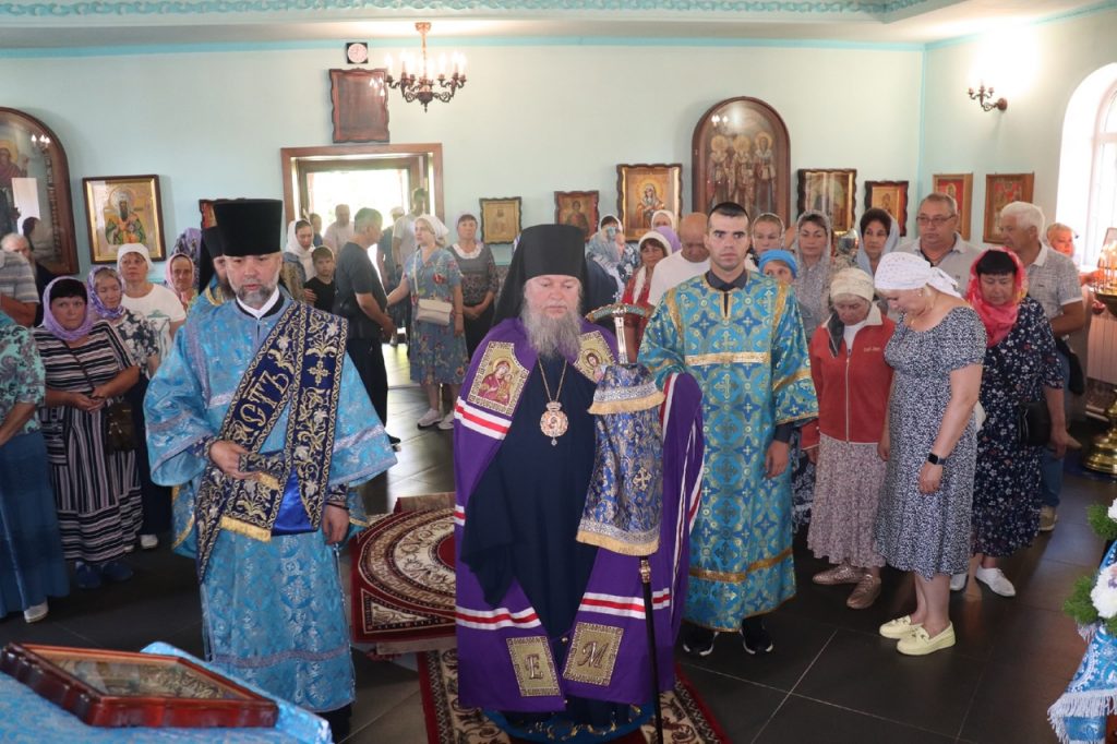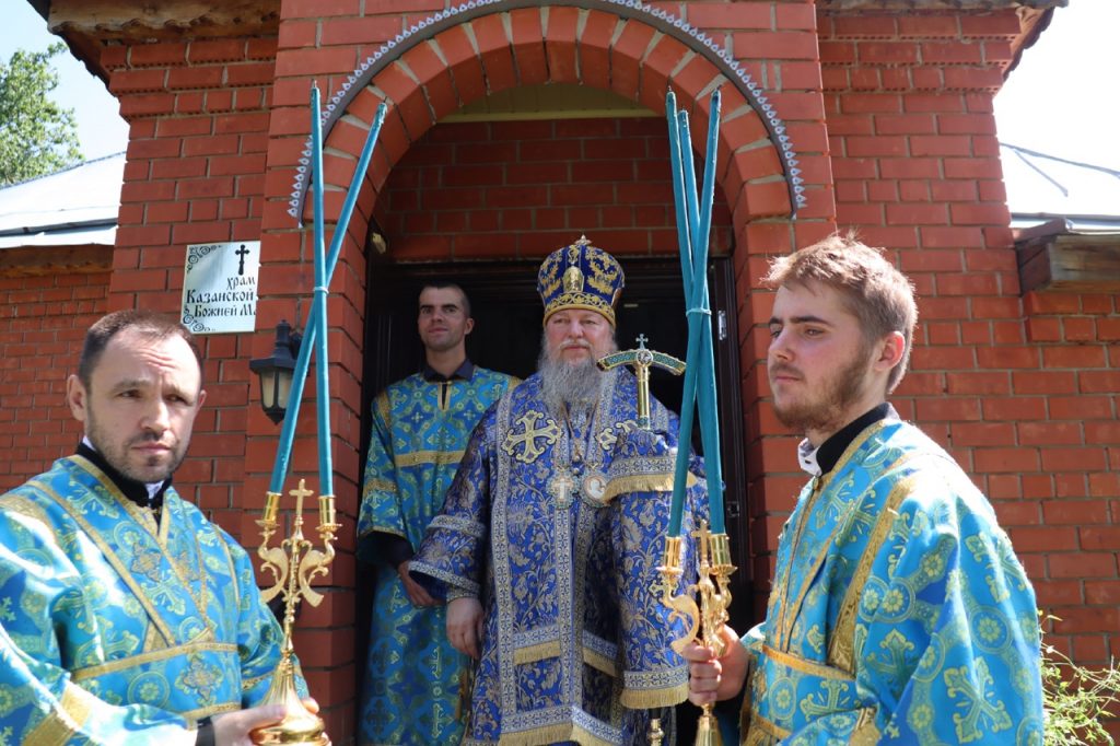 Затем епископ Митрофан совершил молебен и славление празднику перед чтимым образом Казанской иконы Божией Матери.