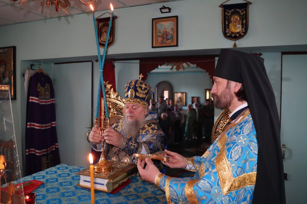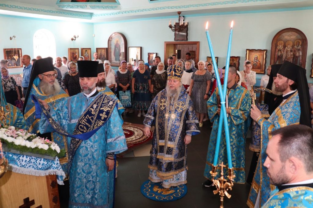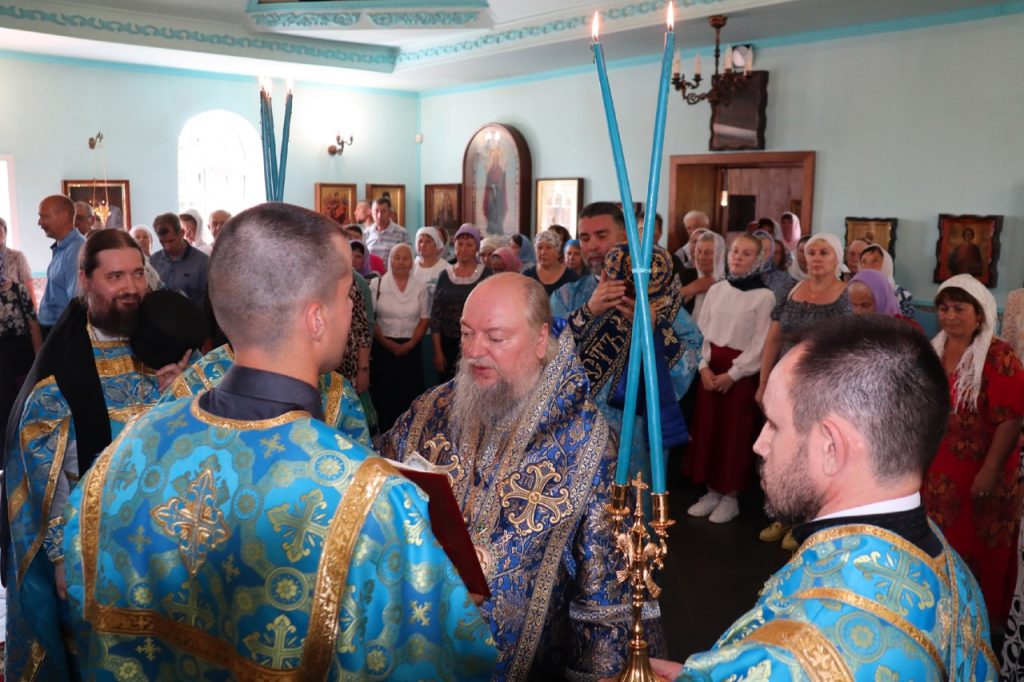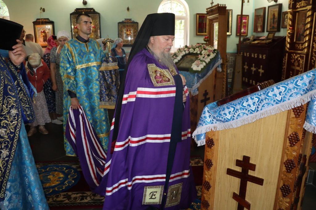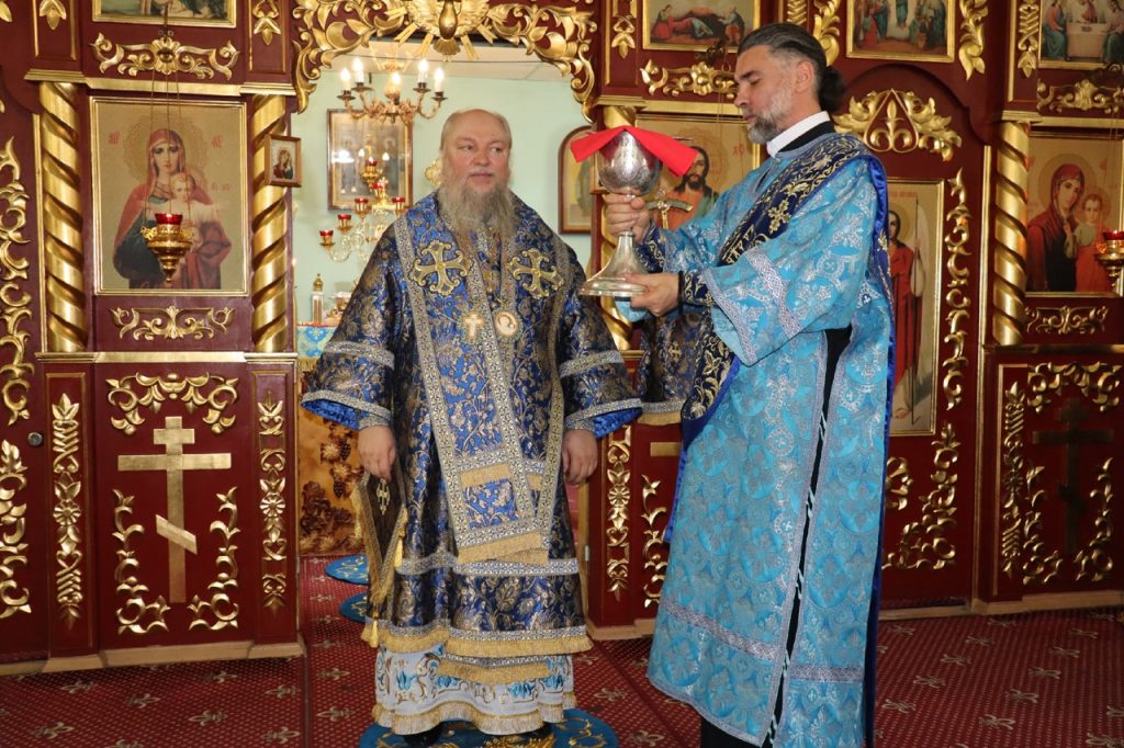 Затем епископ Митрофан совершил молебен и славление празднику перед чтимым образом Казанской иконы Божией Матери.