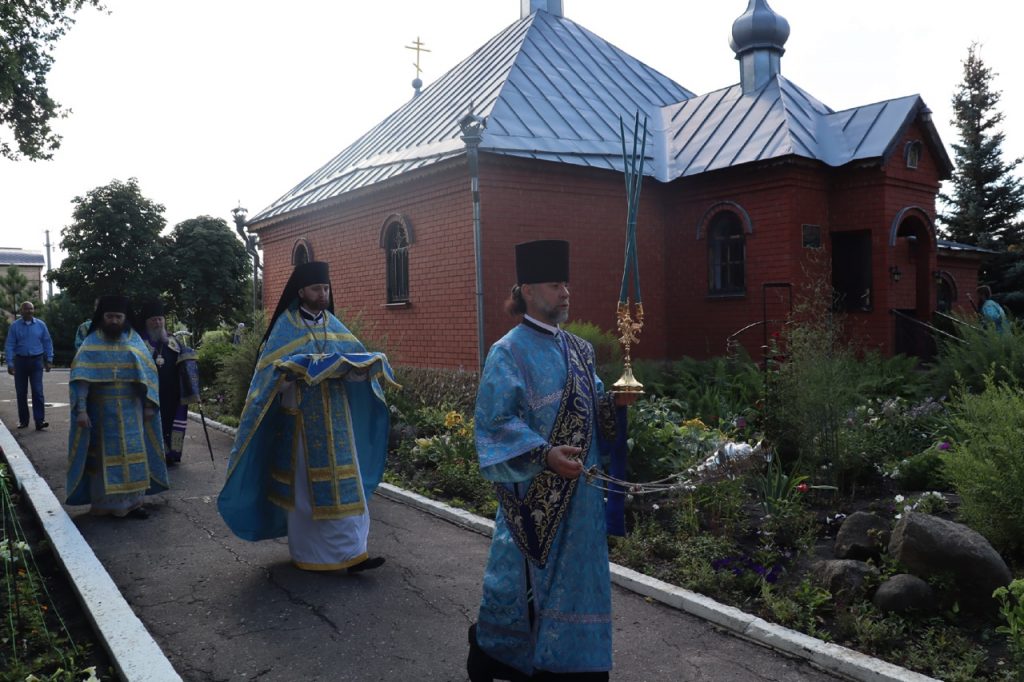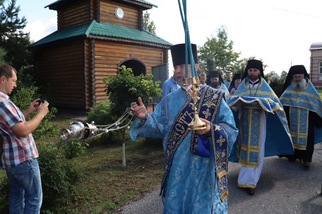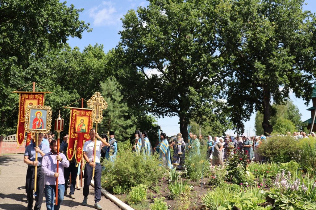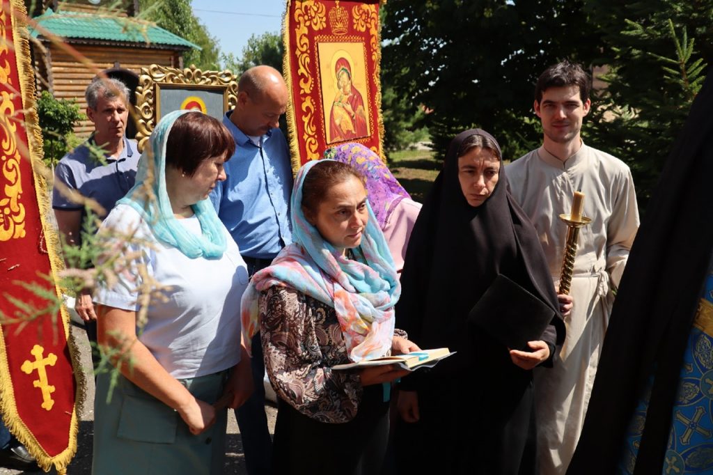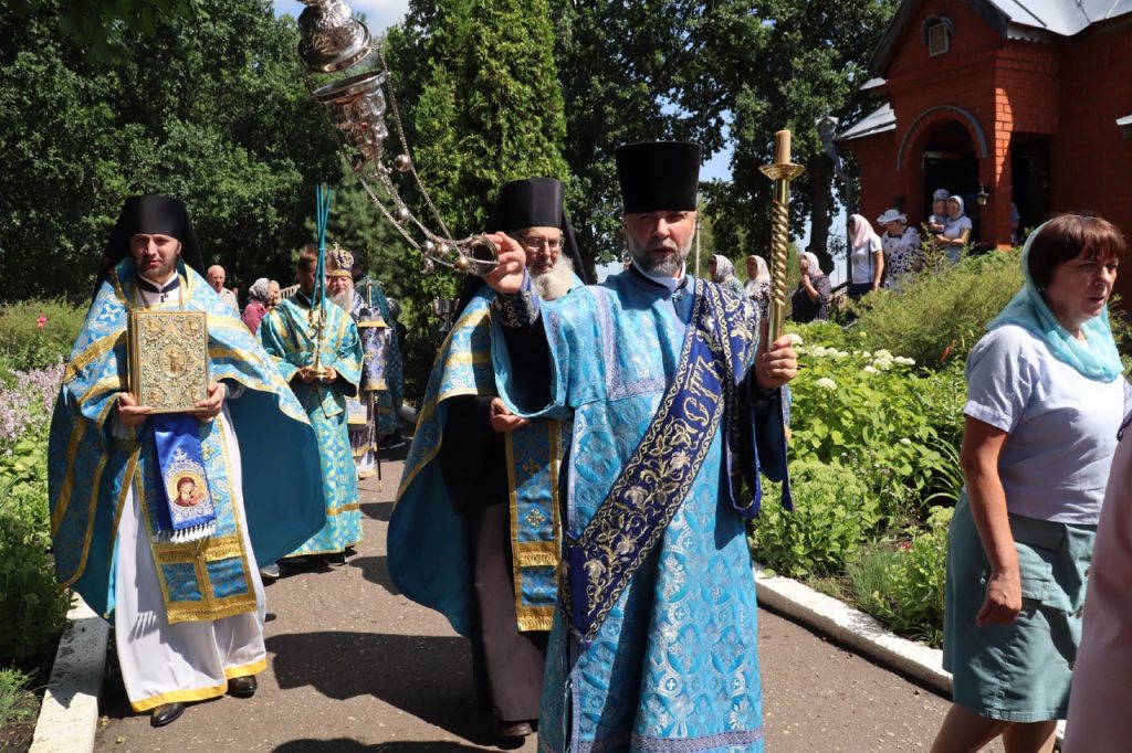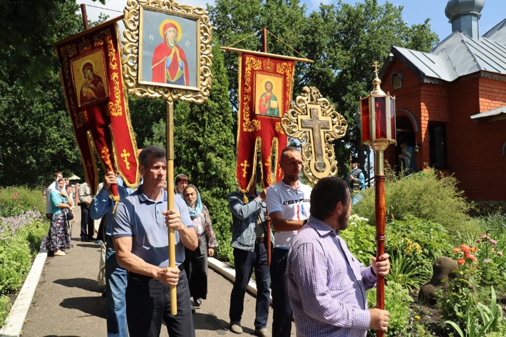 После Литургии состоялся крестный ход: духовенство и прихожане с хоругвями и иконой Казанской Божией Матери обошли по периметру территорию обители.