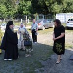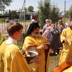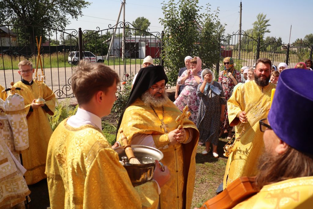По традиции, по заамвонной молитве был совершен крестный ход вокруг храма, во время которого Преосвященнейший Владыка Митрофан вместе с духовенством вознес молитву и окропил верующих освященной водой.