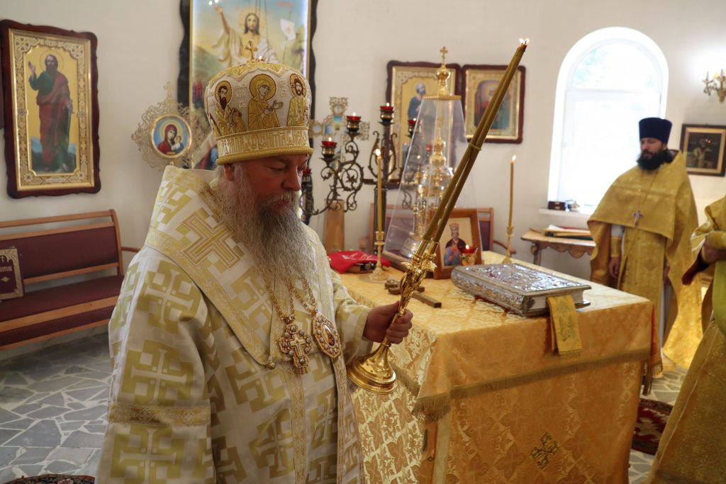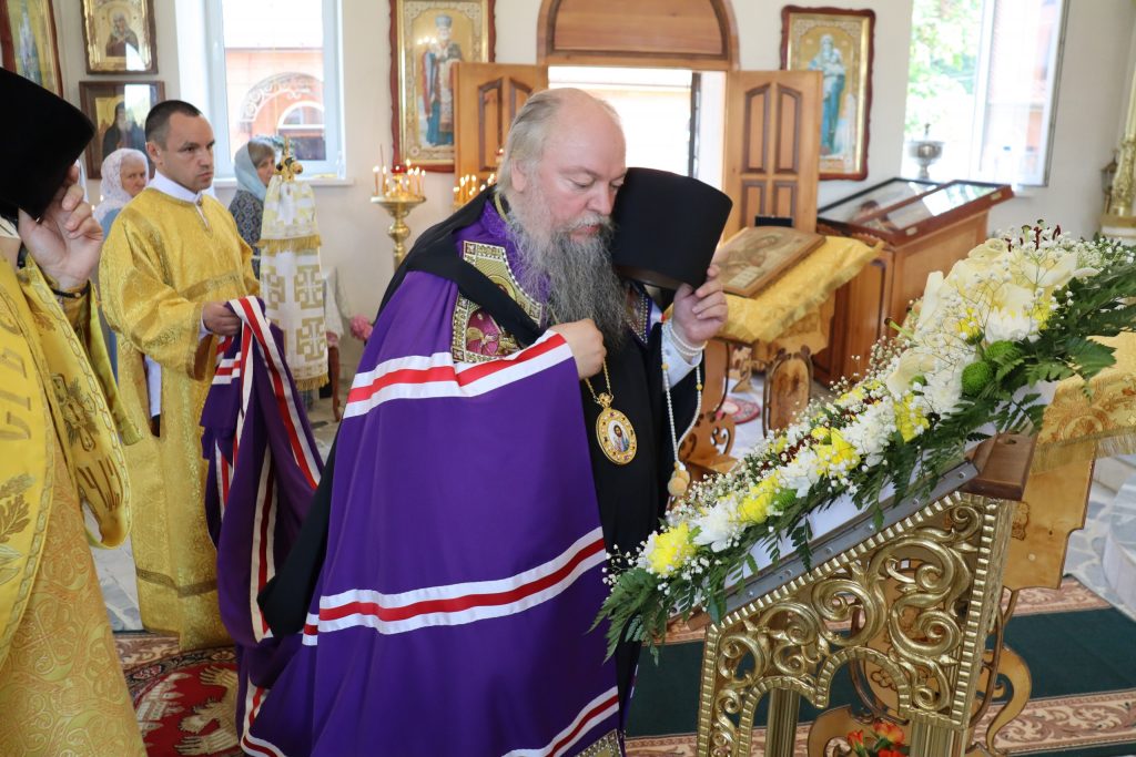 Завершая богослужение, епископ Митрофан поздравил прихожан храма с престольным праздником и обратился со словом проповеди.