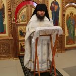 В завершении богослужения настоятельница монастыря игумения Варвара (Соколова) поблагодарила правящего архипастыря за совместную молитву в день престольного праздника.