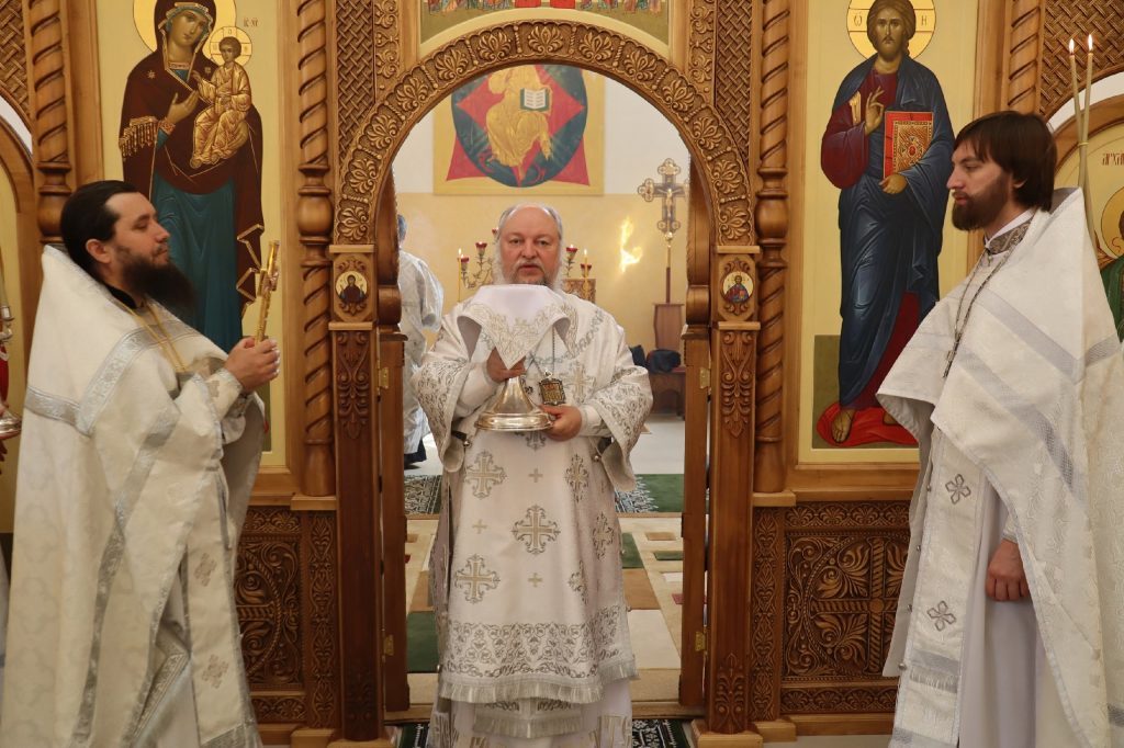 По окончании Литургии епископ Митрофан возглавил крестный ход вокруг обители, после чего было совершено славление перед иконой Вознесения Господня.