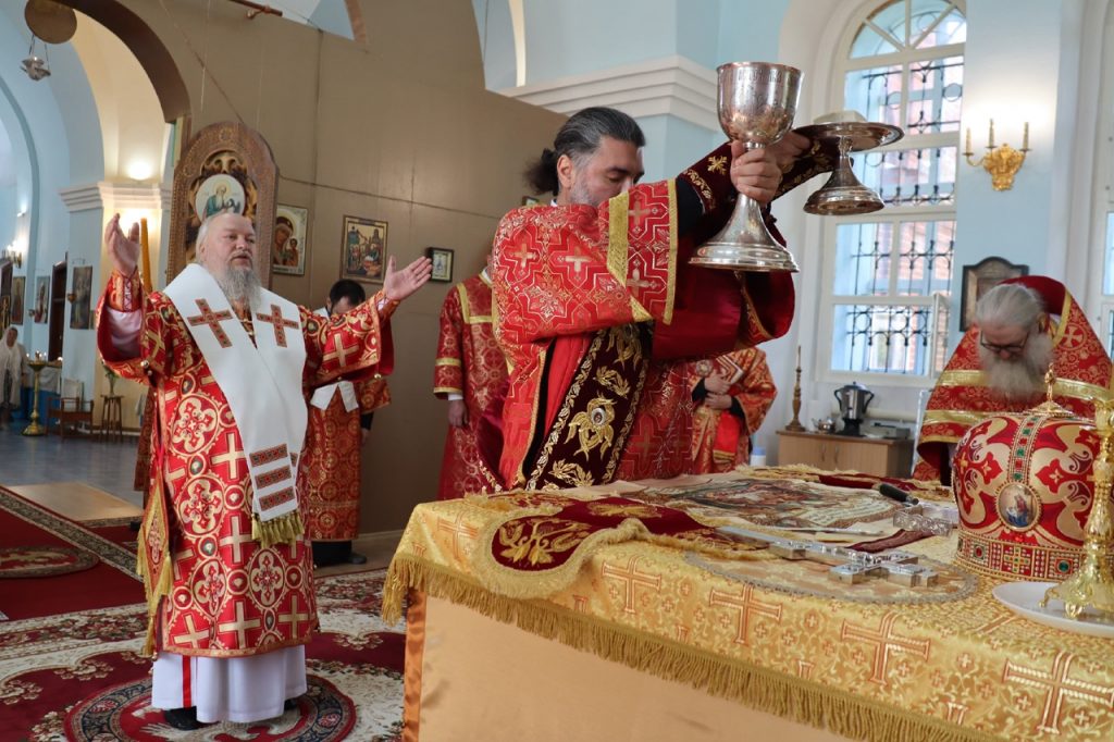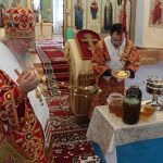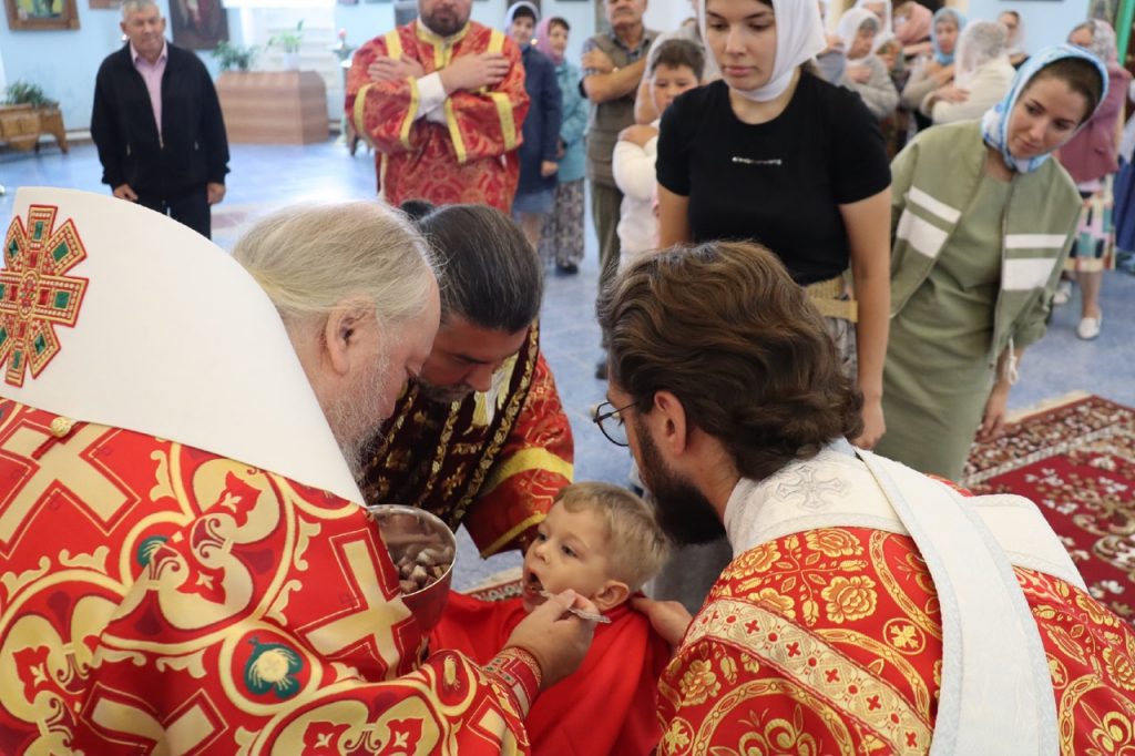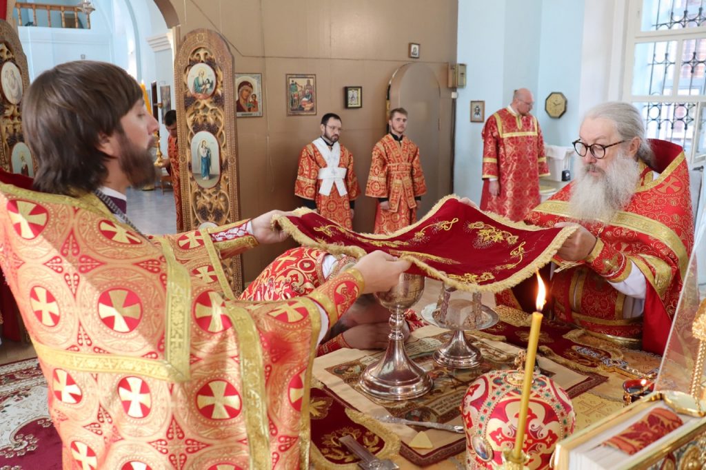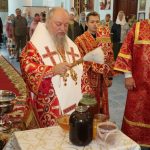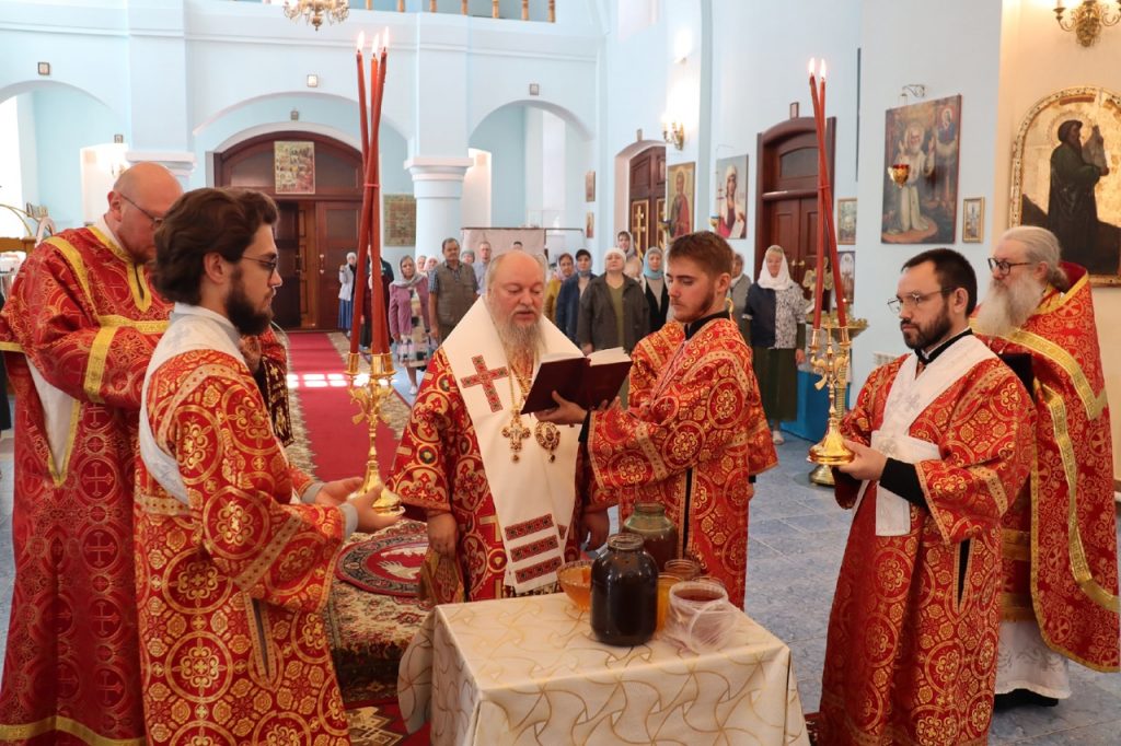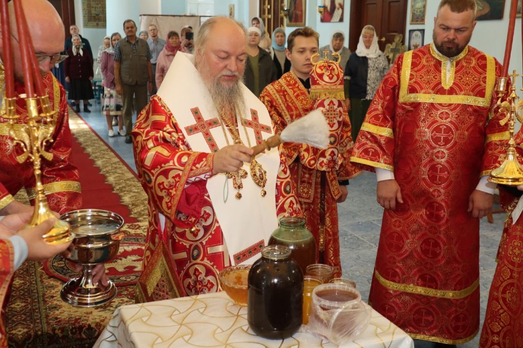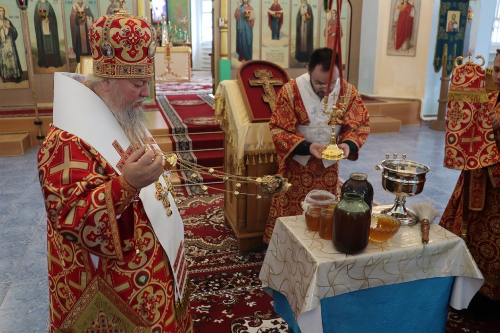 В завершение богослужения епископ Митрофан совершил,  по обычаю, освящение меда нового сбора, поздравил с праздником и обратился к верующим с архипастырским словом.