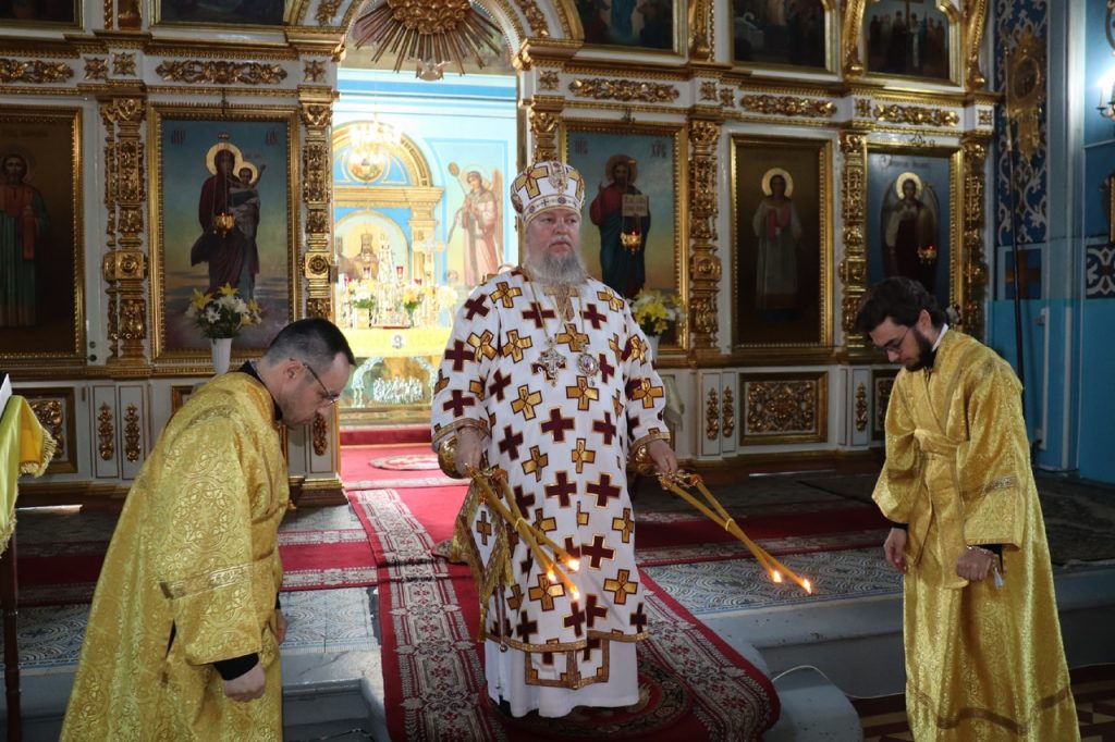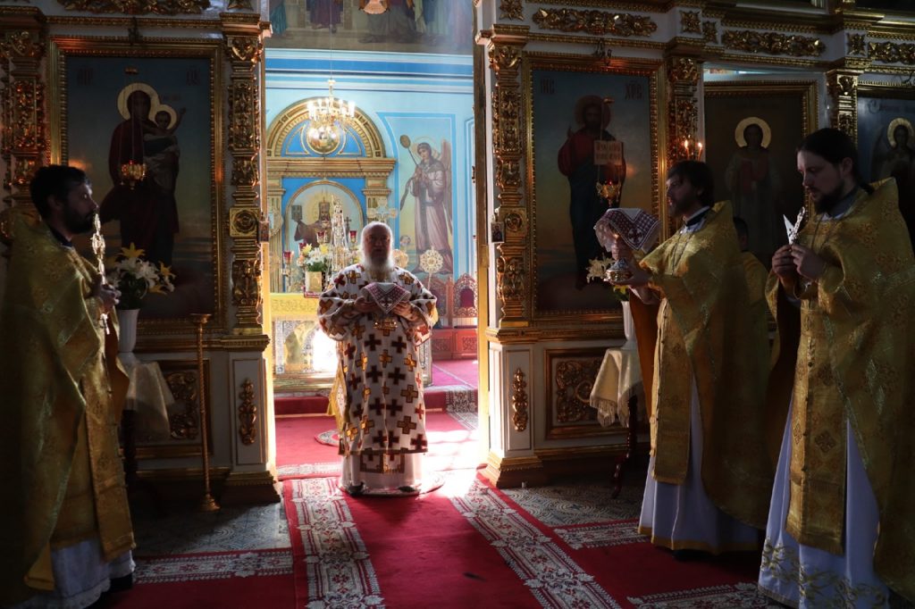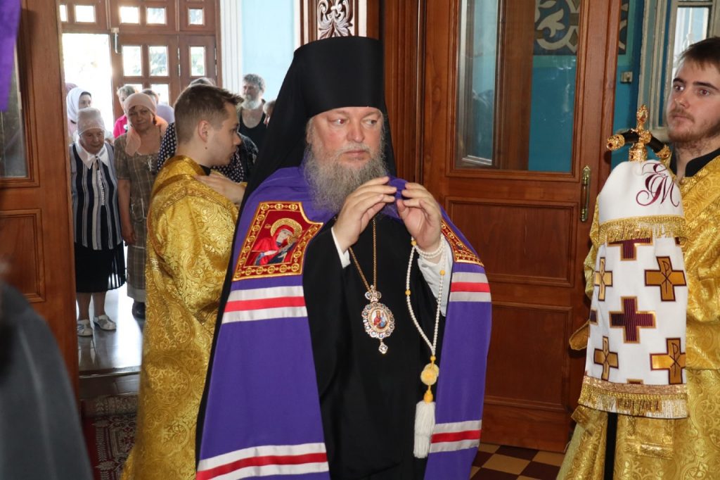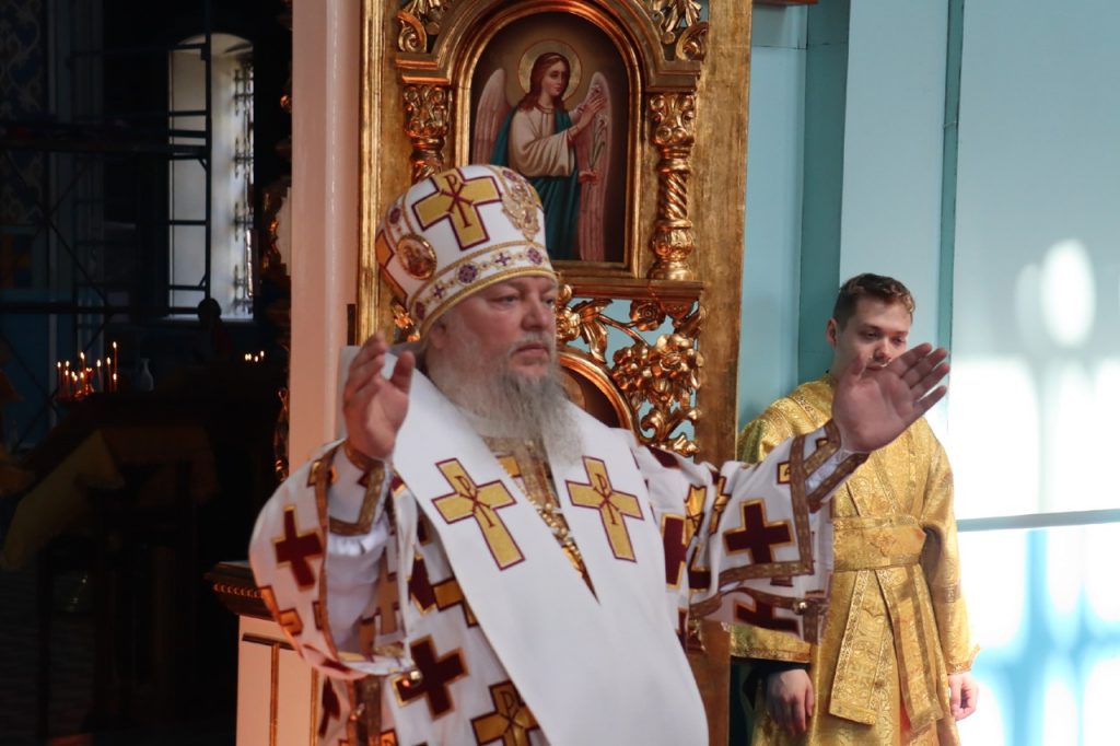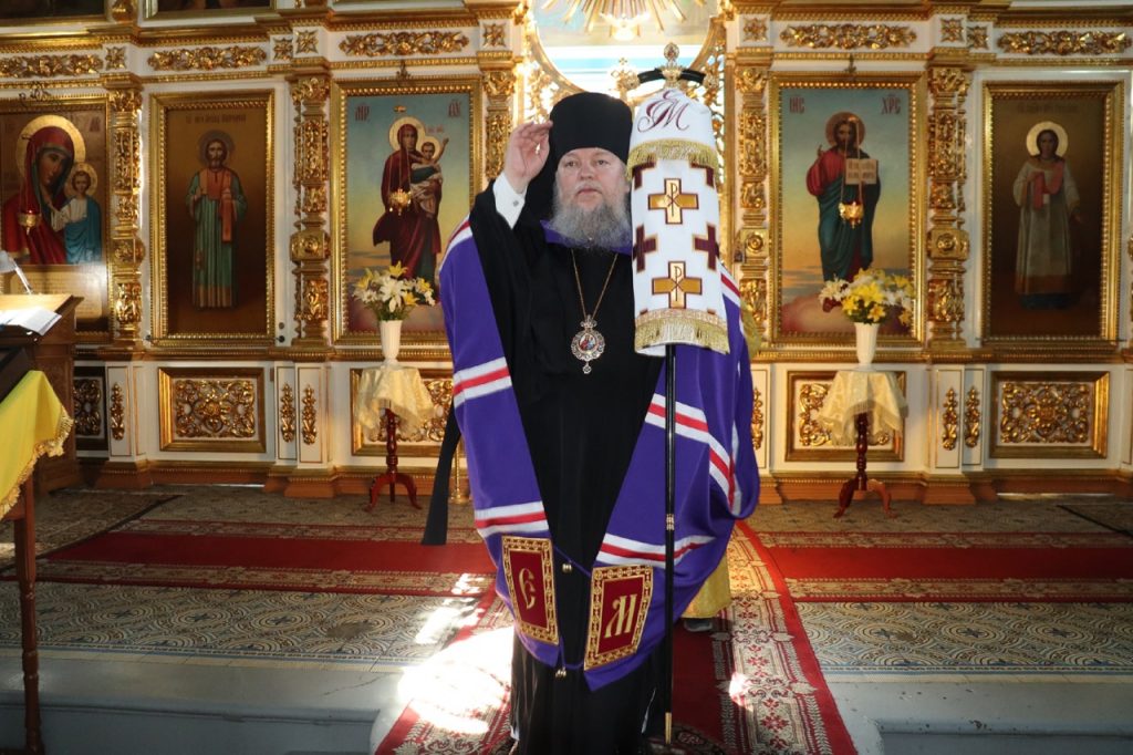 В завершение богослужения епископ Митрофан поздравил паству с праздничным днем и обратился к верующим с архипастырским словом.