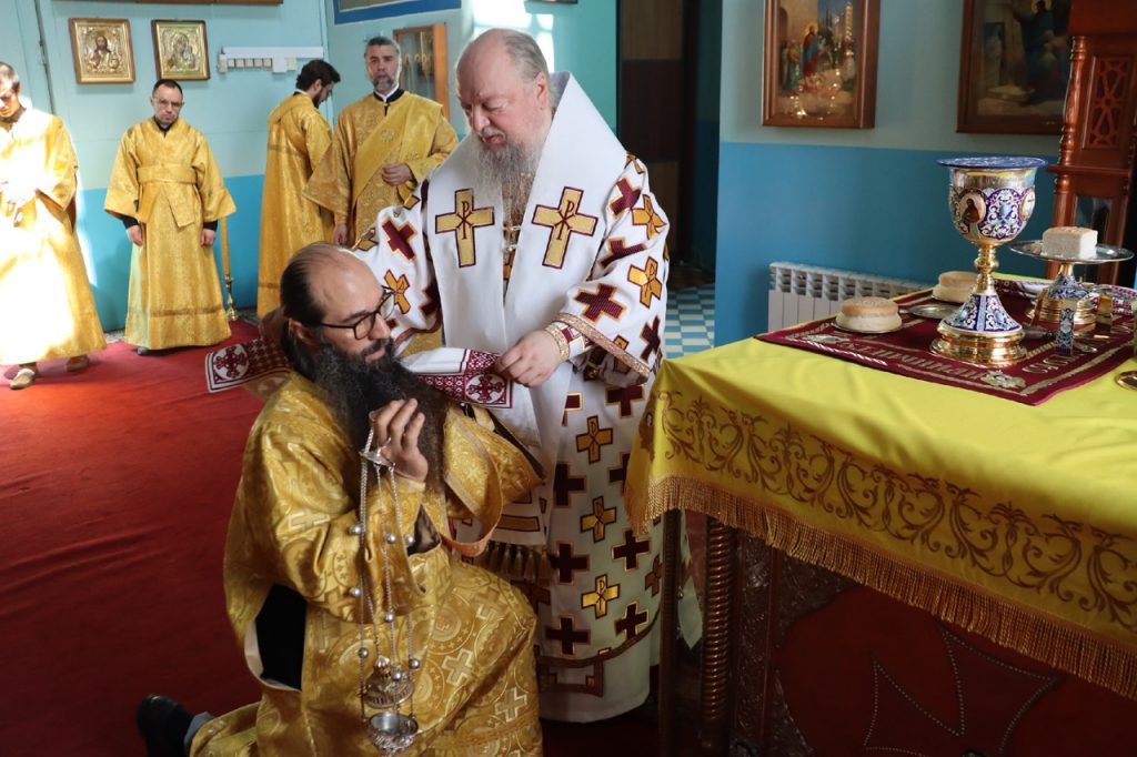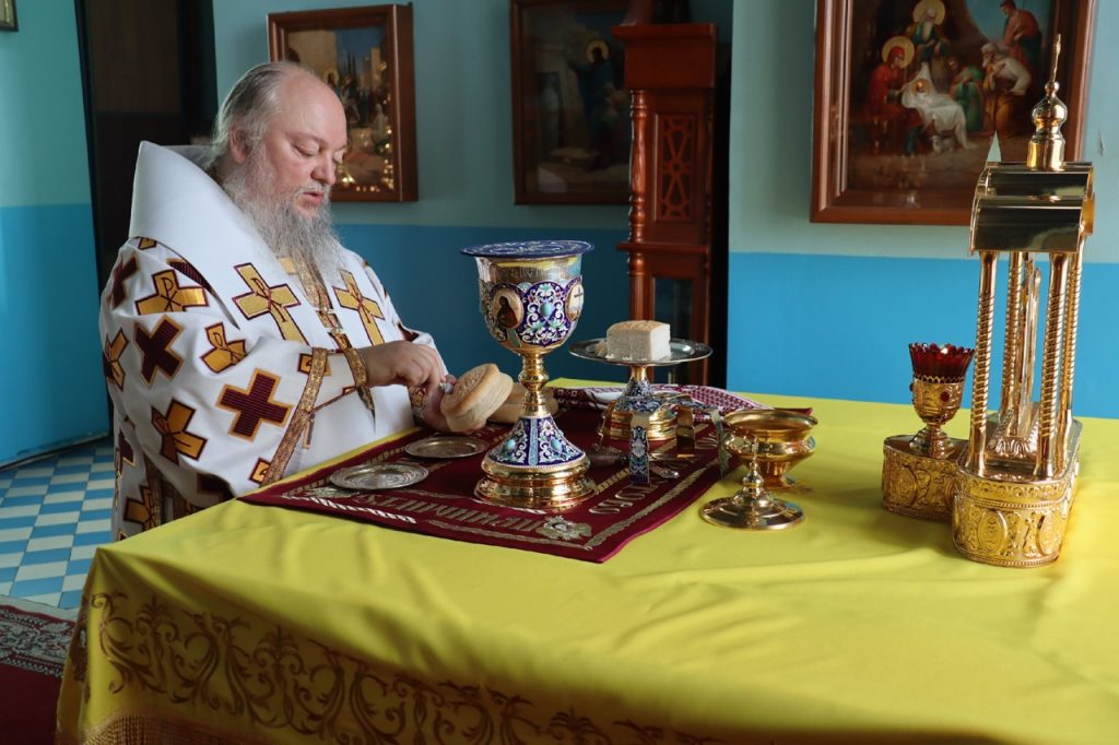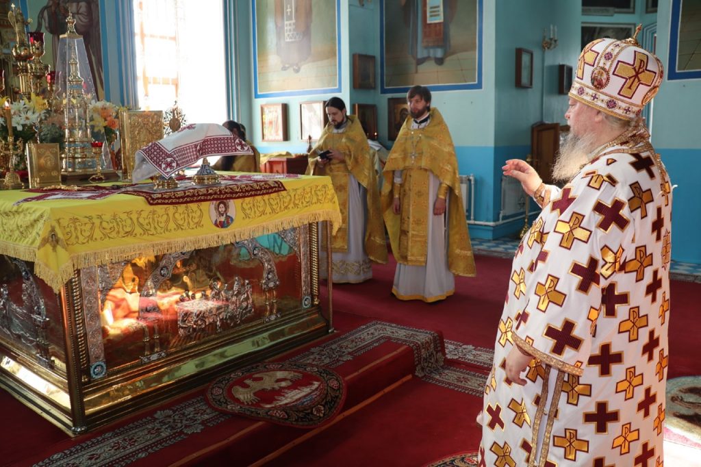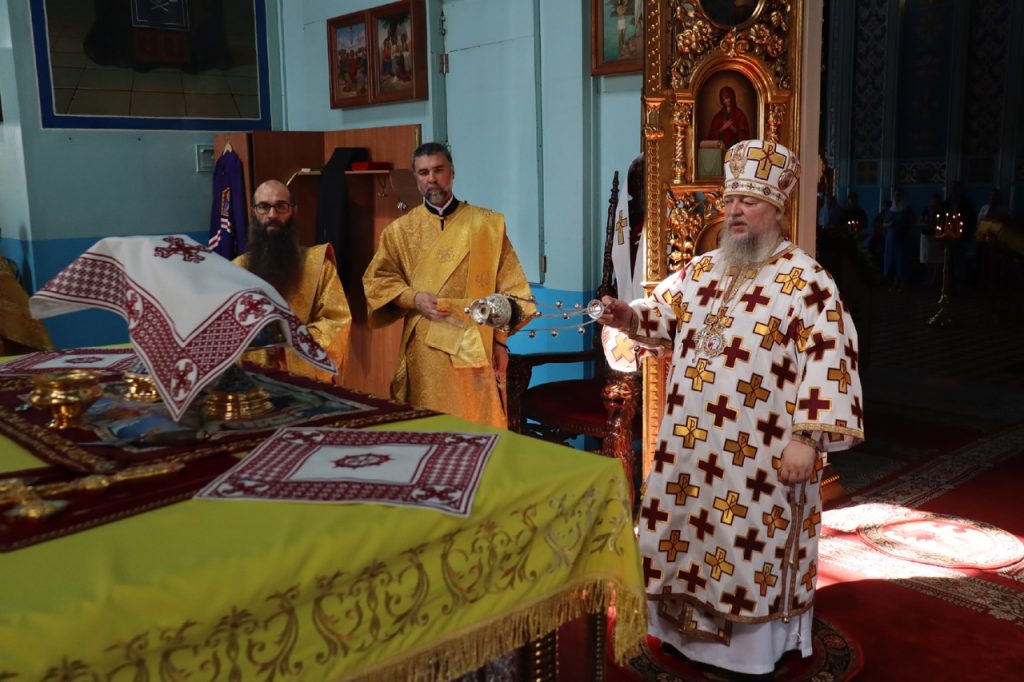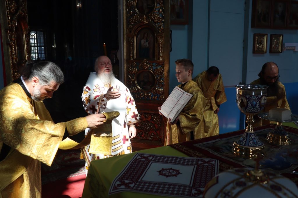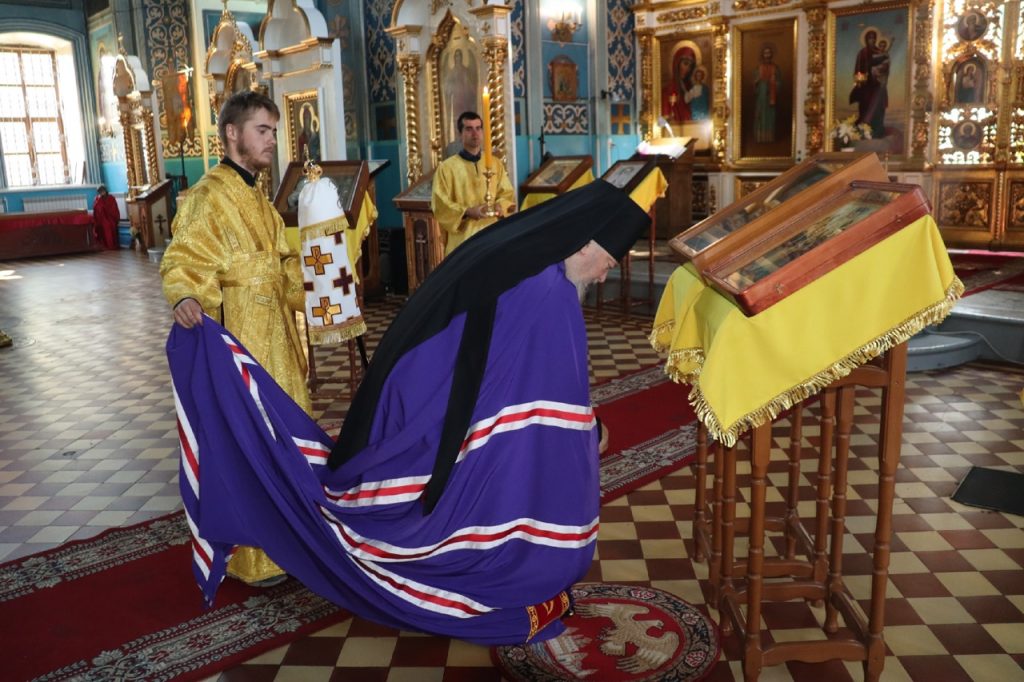 В завершение богослужения епископ Митрофан поздравил паству с праздничным днем и обратился к верующим с архипастырским словом.