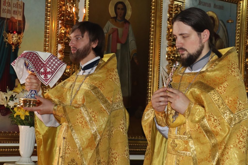 Его Преосвященству сослужили: иеромонах Амвросий (Макаров), врио. секретаря Епархиального Управления; ключарь кафедрального собора Архангела Михаила г.Сердобска, епархиальный древлехранитель иерей Роман Турецких; клирик собора и руководитель епархиального отдела религиозного образования и катехизации иерей Александр Федин; иеродиакон Иннокентий (Ганин), диакон Владимир Эрекайкин.