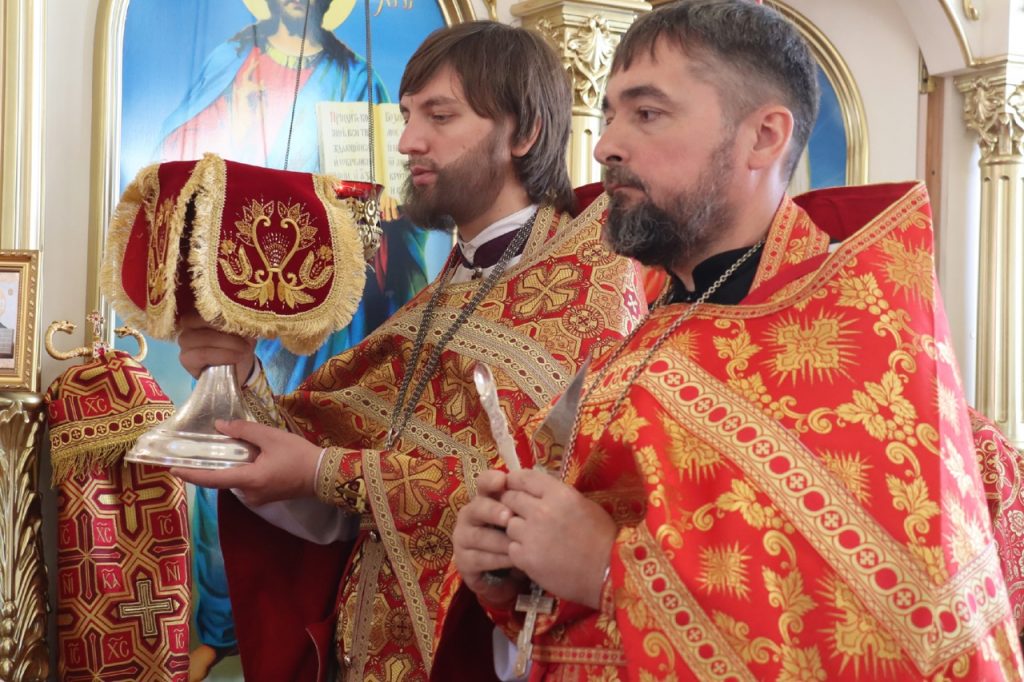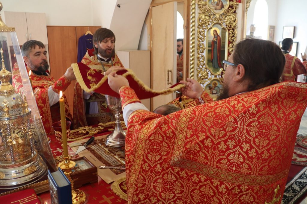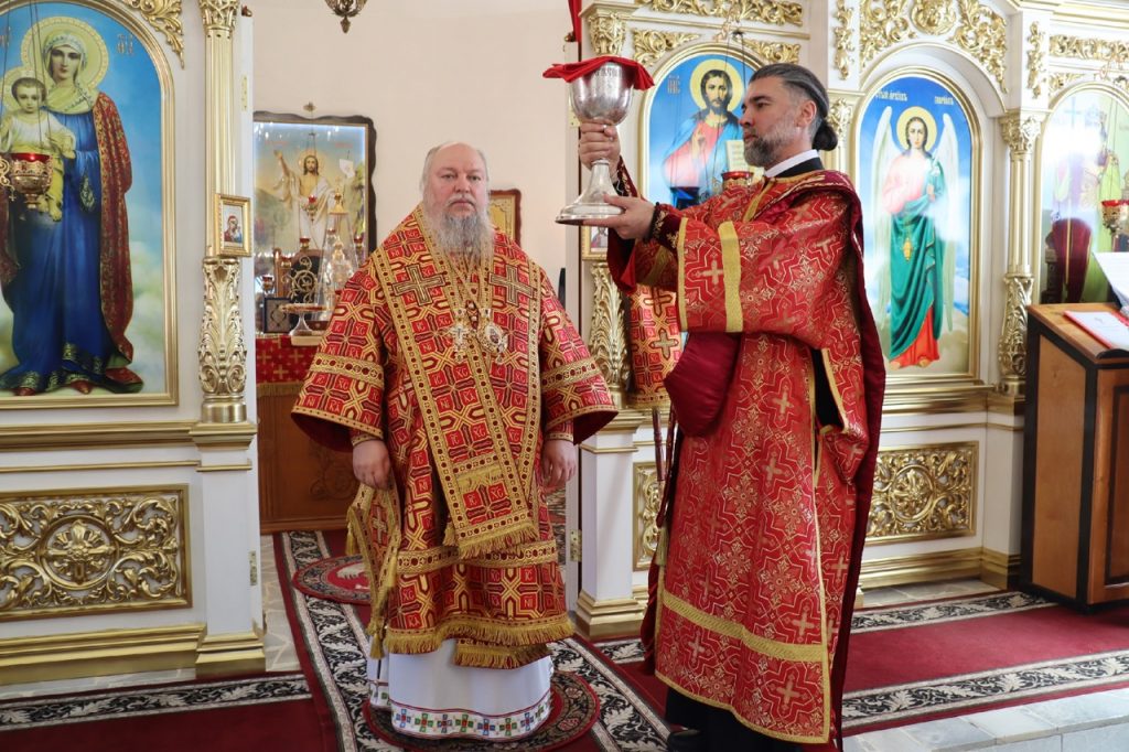 За Литургией Его Преосвященству сослужили: иеромонах Амвросий (Макаров), врио. секретаря Епархиального Управления; настоятель храма святого равноапостольного князя Владимира г.Сердобска, руководитель епархиального отдела по делам молодёжи иерей Максим Лосенков; настоятель молитвенного дома Святителя Николая чудотворца с.Кирово Сердобского района, служащий священник храма святого равноапостольного великого князя Киевского Владимира г.Сердобска иерей Павел Феоктистов; клирик кафедрального собора Архангела Михаила г. Сердобска иеродиакон Иннокентий (Ганин); клирик Сердобского благочиния диакон Владимир Эрекайкин.