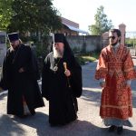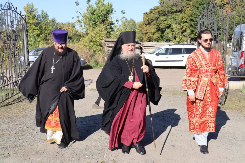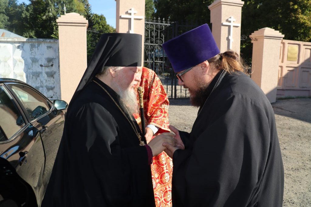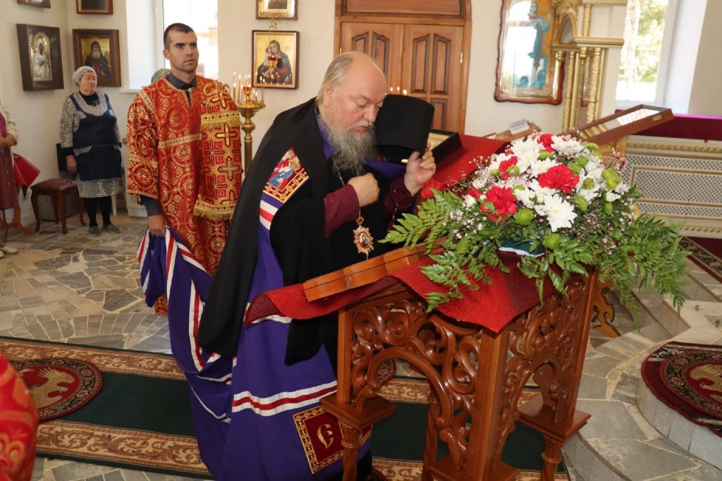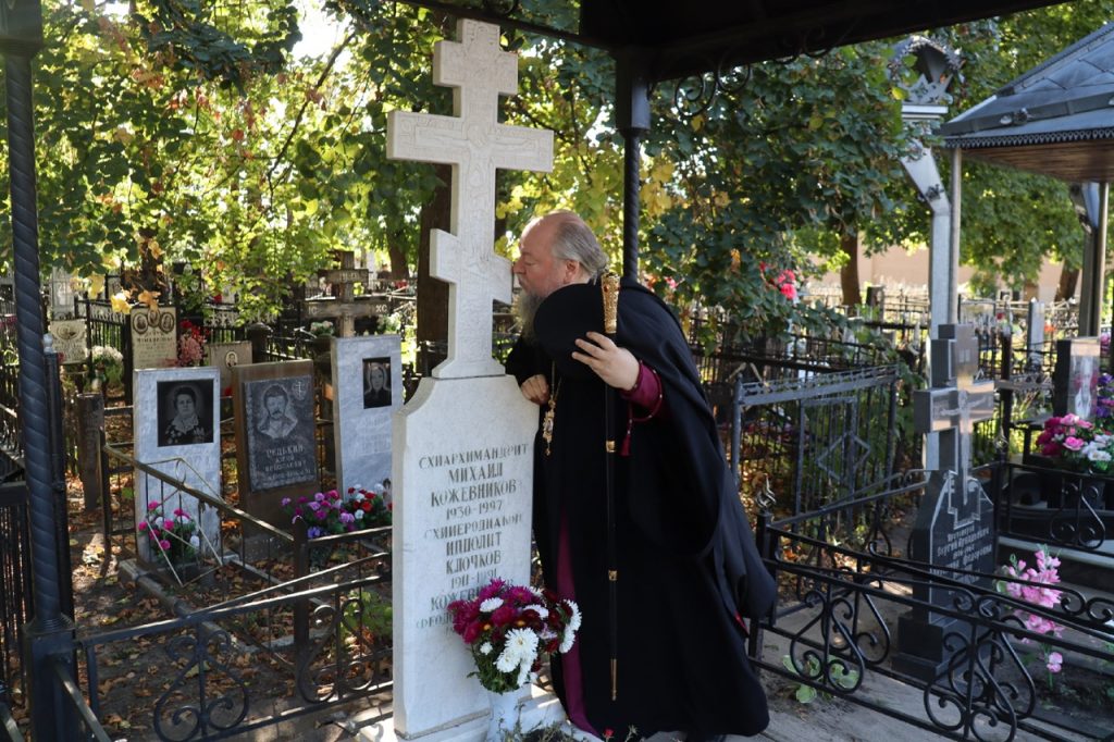 Перед началом богослужения владыка Митрофан в сопровождении настоятеля храма иерея Максима Лосенкова посетил место погребения архимандрита Модеста (Кожевникова) на городском кладбище.