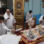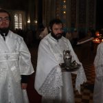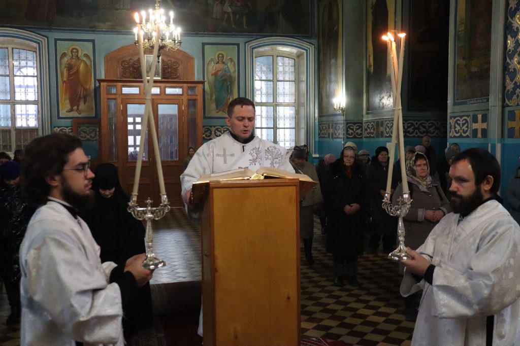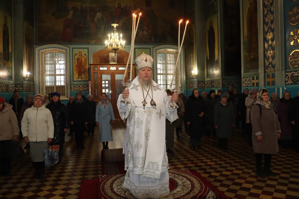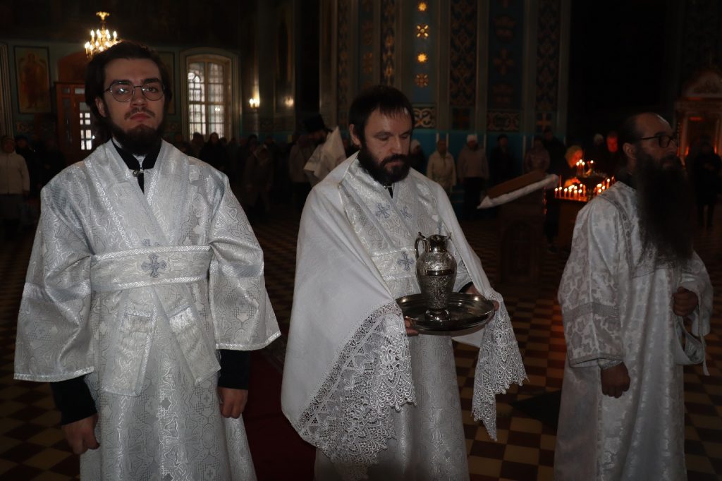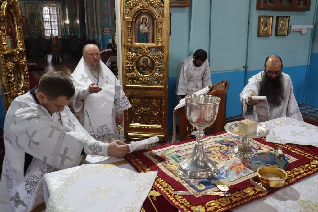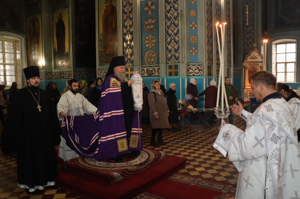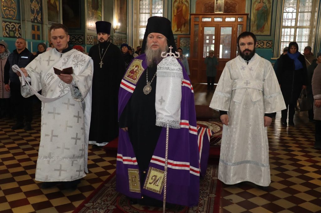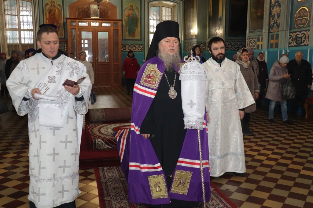 Его Преосвященству сослужили: ключарь кафедрального собора Архангела Михаила г.Сердобска, епархиальный древлехранитель иерей Роман Турецких; клирик собора и руководитель епархиального отдела религиозного образования и катехизации иерей Александр Федин; клирик храма Рождества Христова с. Трескино Колышлейского района диакон Виталий Зинич, диакон Владимир Эрекайкин.