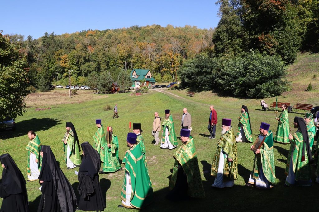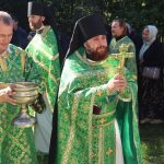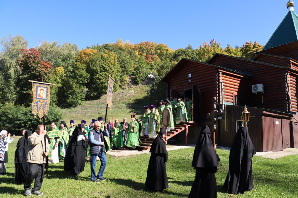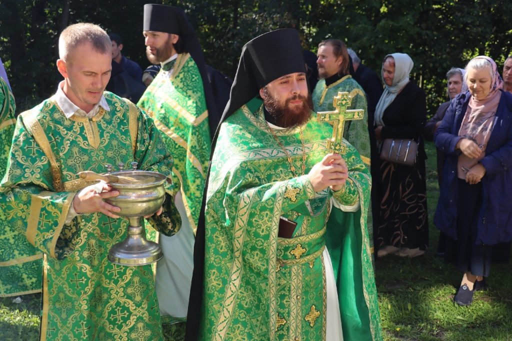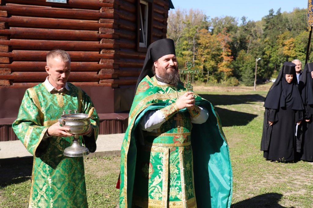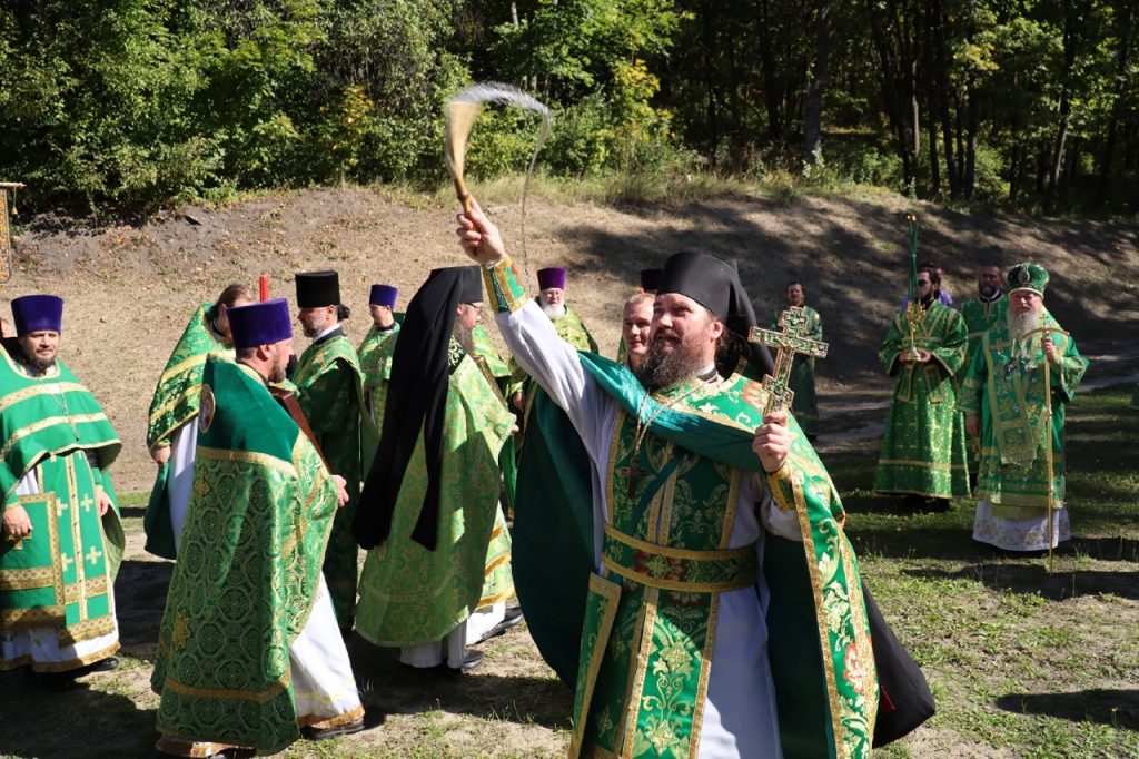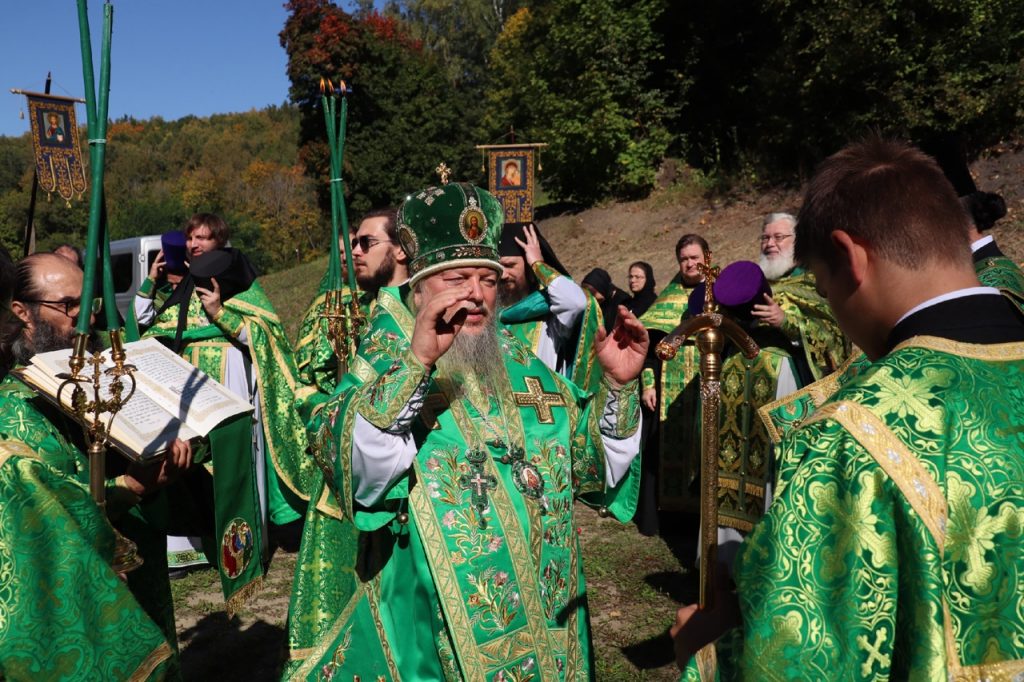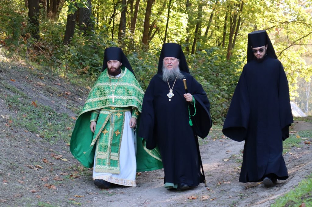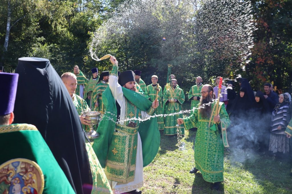 По заамвонной молитве вокруг обители прошел крестный ход, который возглавил епископ Митрофан.