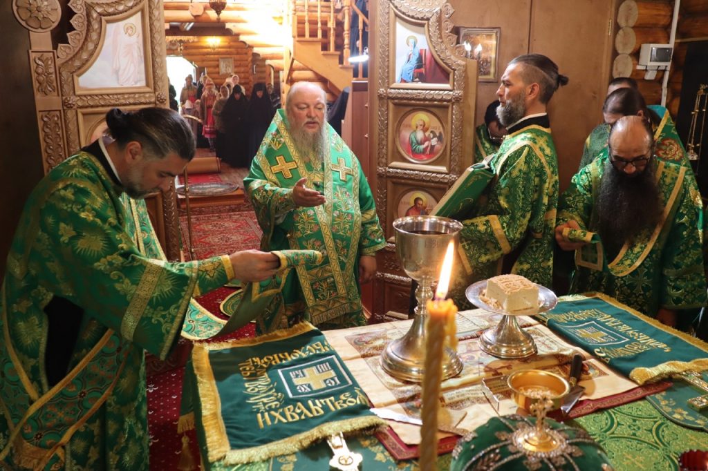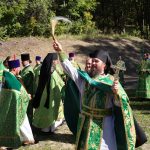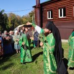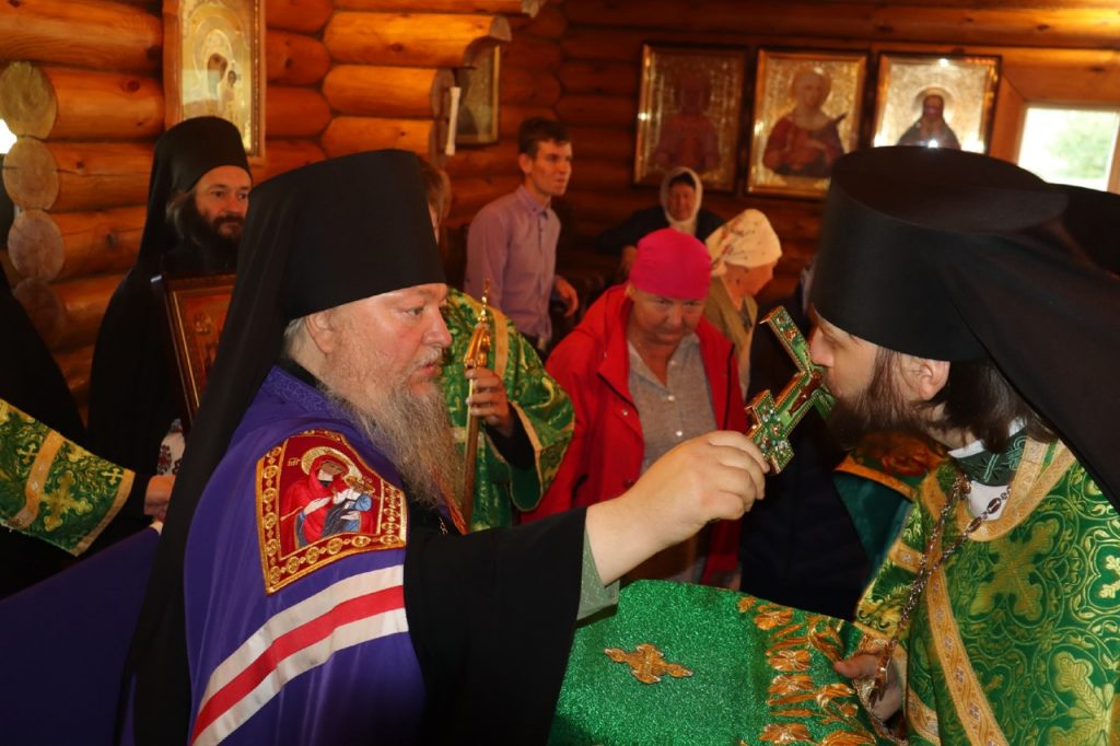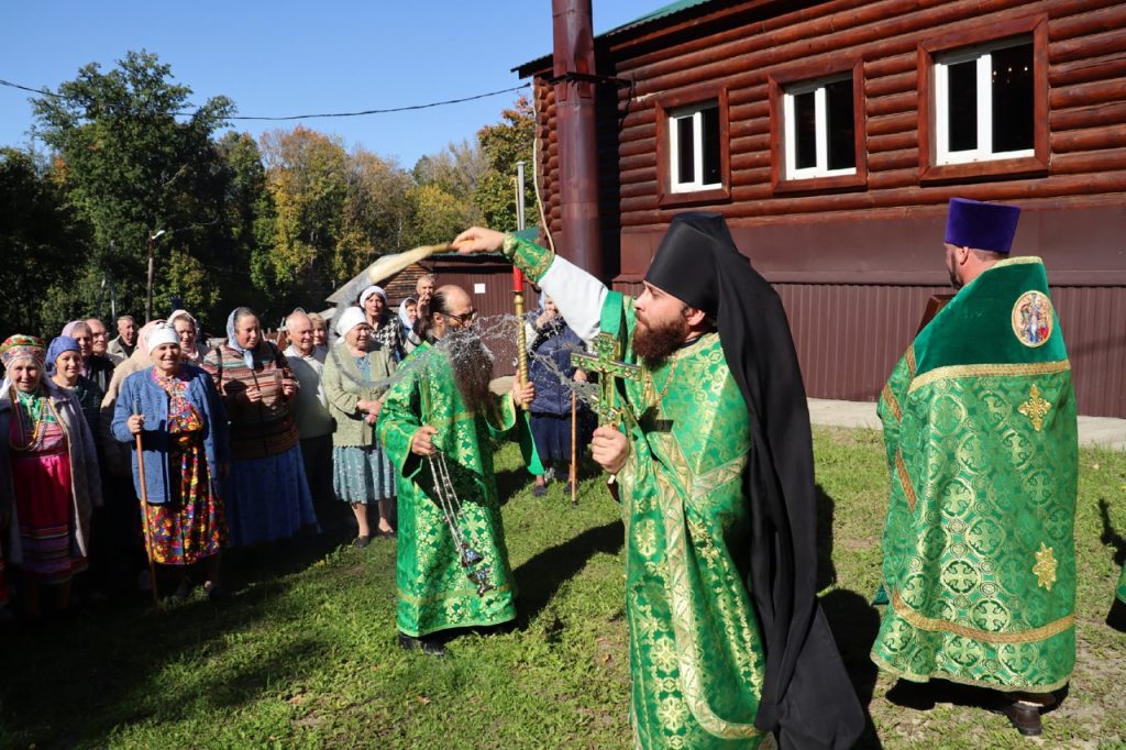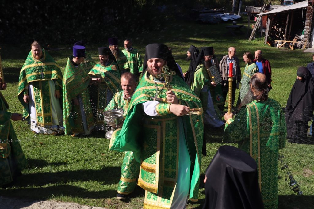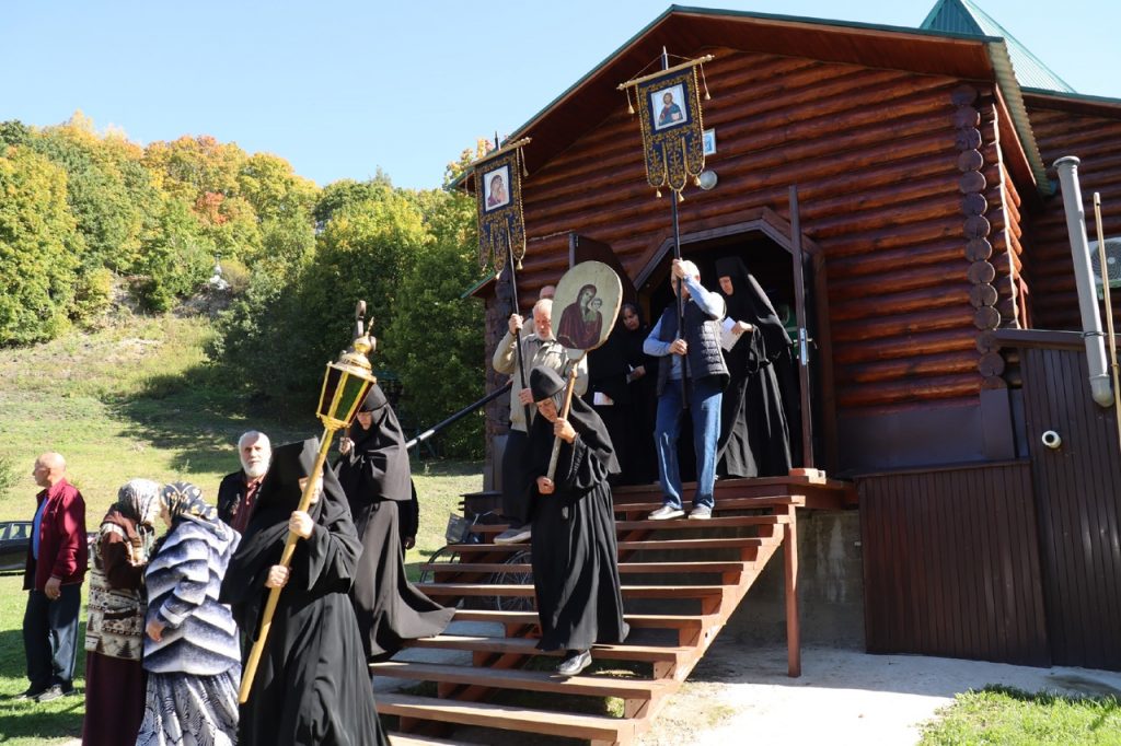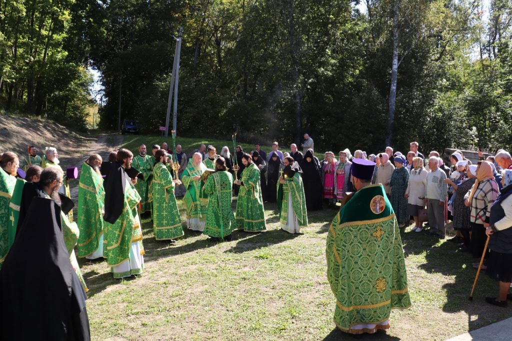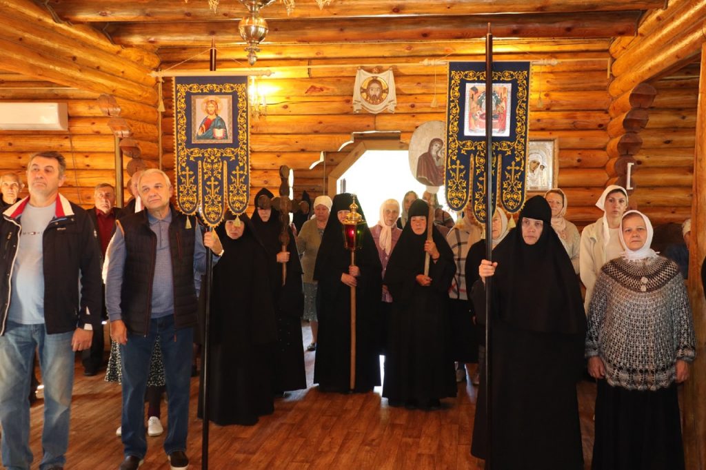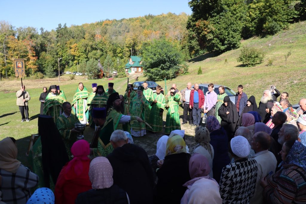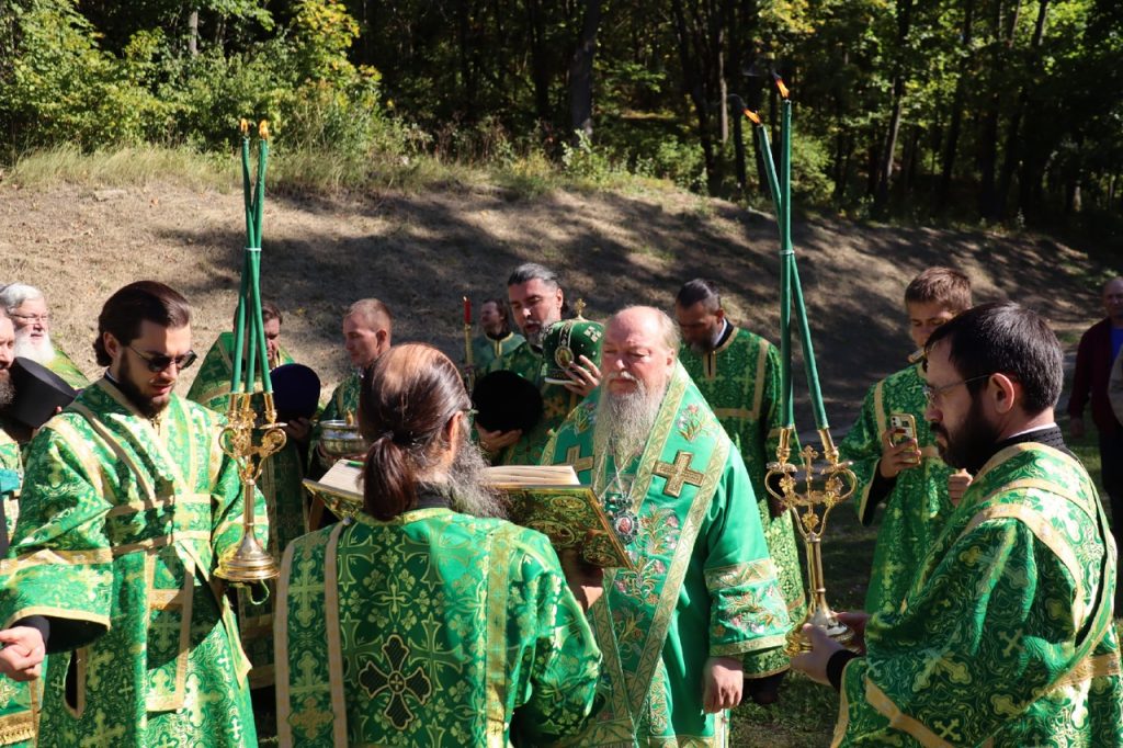 По заамвонной молитве вокруг обители прошел крестный ход, который возглавил епископ Митрофан.