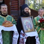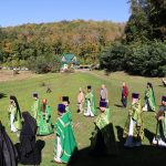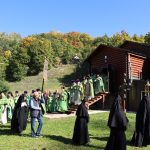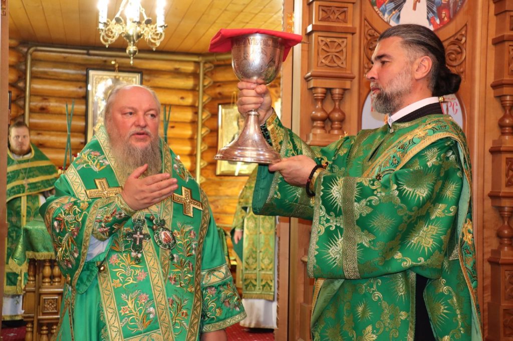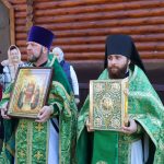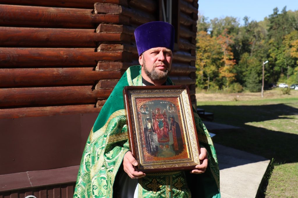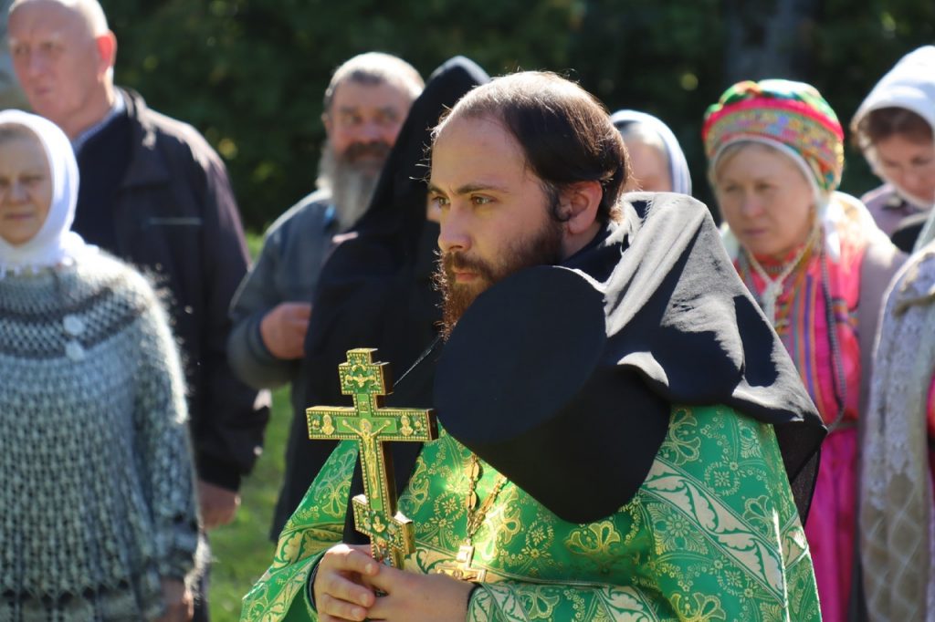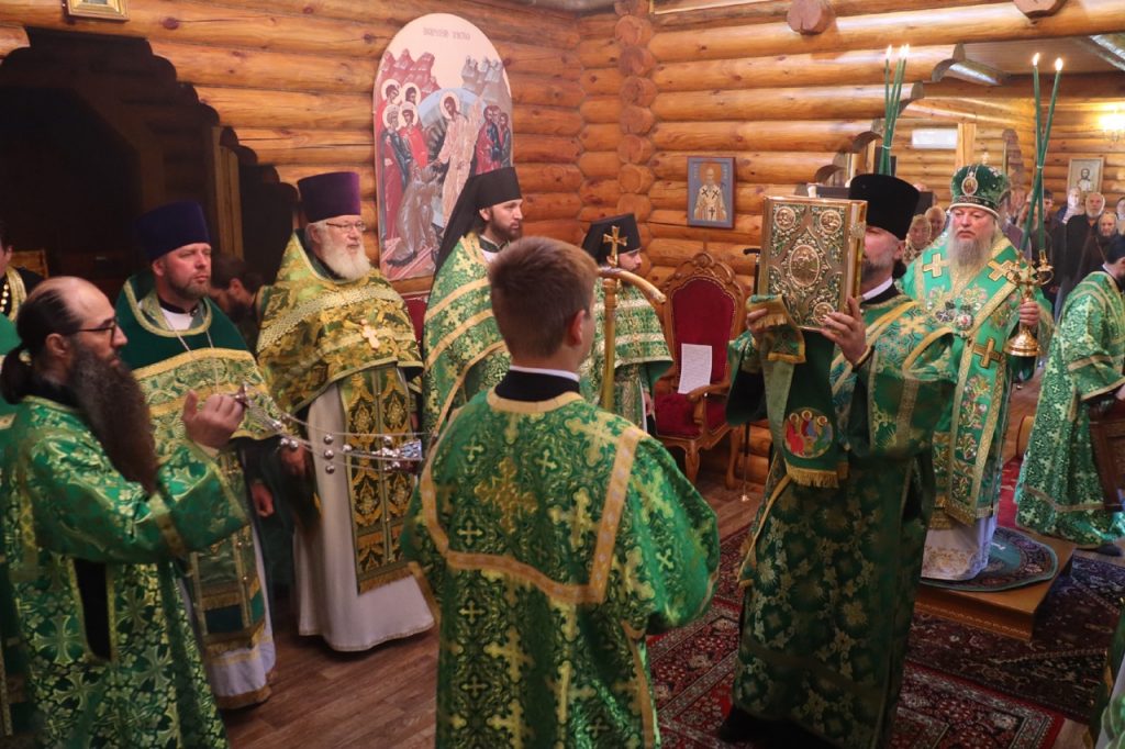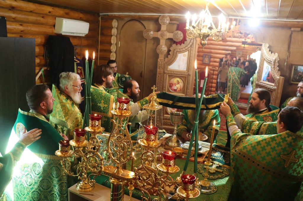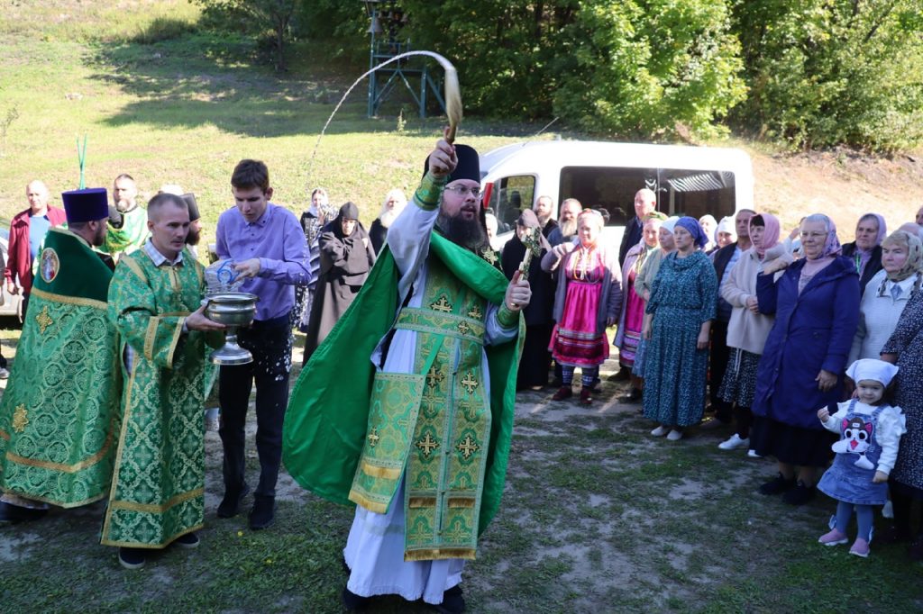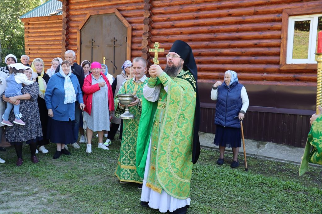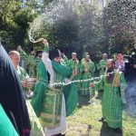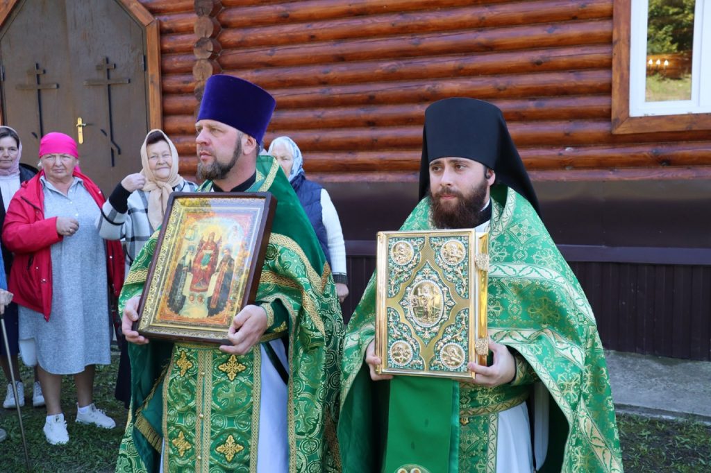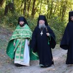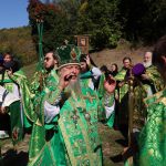 По заамвонной молитве вокруг обители прошел крестный ход, который возглавил епископ Митрофан.