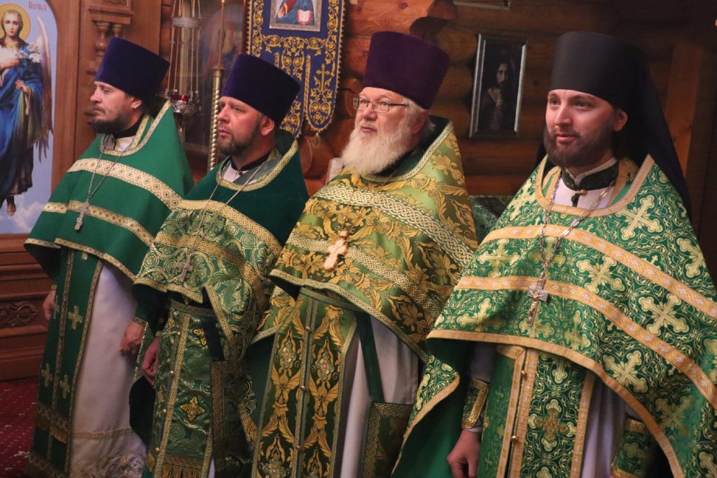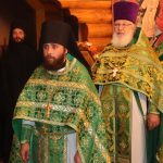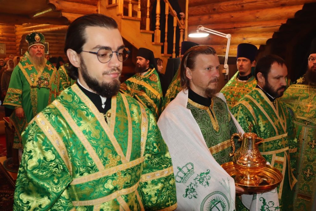 Его Преосвященству сослужили: иеромонах Амвросий (Макаров), врио. секретаря Епархиального Управления; настоятель храма Преображения Господня с. Казённый Майдан Ковылкинского района Республики Мордовия протоиерей Сергий Гришанин; настоятель храма Архангела Михаила с. Баранчеевка Спасского района протоиерей Сергий Агейкин; благочинный монастырей Сердобской епархии, настоятель Мужского Сазанского Пещерного монастыря Казанской Алексиево-Сергиевской пустыни игумен Михей (Мигунов); и.о.наместника Сканова Пещерного мужского монастыря прпп. Антония и Феодосия Печерских с. Сканово Наровчатского района иеромонах Ювеналий (Жучков); и.о.наместника Епархиального Тихвинского Керенского мужского монастыря с.Вадинск Вадинского района иеромонах Питирим (Толмачев); благочинный Наровчатского округа и настоятель собора Покрова Пресвятой Богородицы с.Наровчата иерей Андрей Клопов; клирик Спасского благочиния иерей Георгий Кузнецов; благочинный Спасского округа, руководитель епархиального миссионерского отдела, настоятель собора Вознесения Господня г.Спасска иерей Святослав Бобко; настоятель Покровского храма с.Дубровки Спасского района иерей Павел Куликов; клирики кафедрального собора Архангела Михаила г. Сердобска иеродиакон Иннокентий (Ганин) и диакон Владимир Эрекайкин.