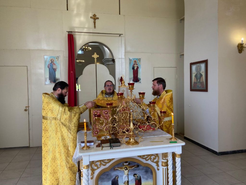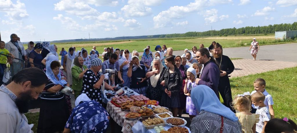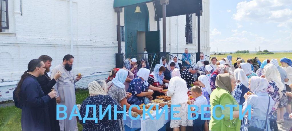 После Божественной литургии, которую совершил благочинный Вадинского округа, настоятель храма иерей Константин Проскуряков в сослужении клирика храма Покрова Пресвятой Богородицы села Татарская Лака Вадинского района иеромонаха Аверкия (Захарова) и настоятеля церкви Богоявления Господня села Вадинска иерея Сергия Третьякова, все присутствующие были приглашены на праздничную трапезу, организованную возле храма.