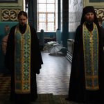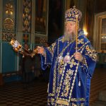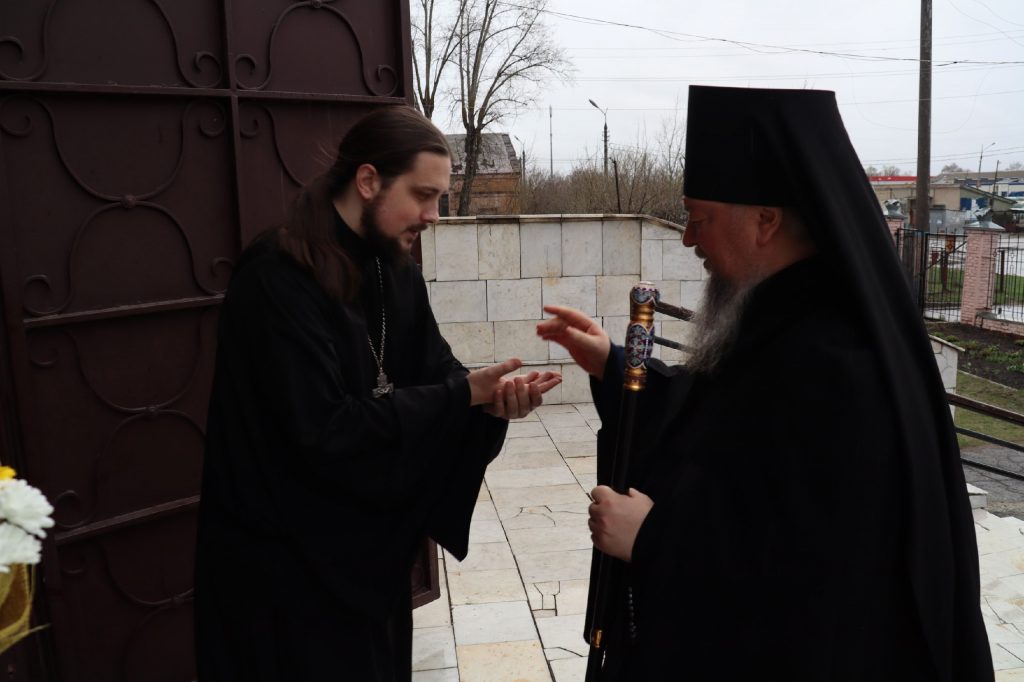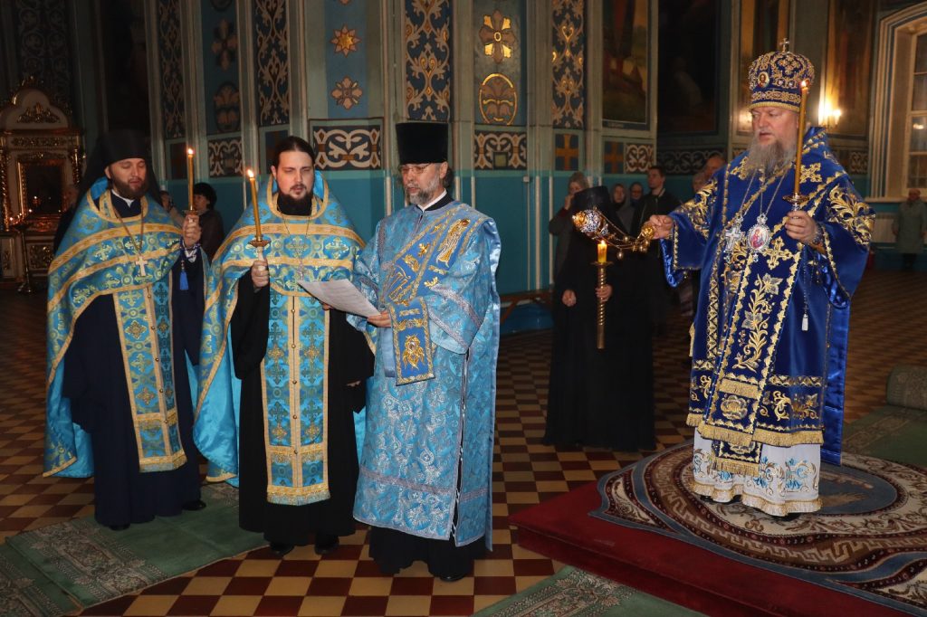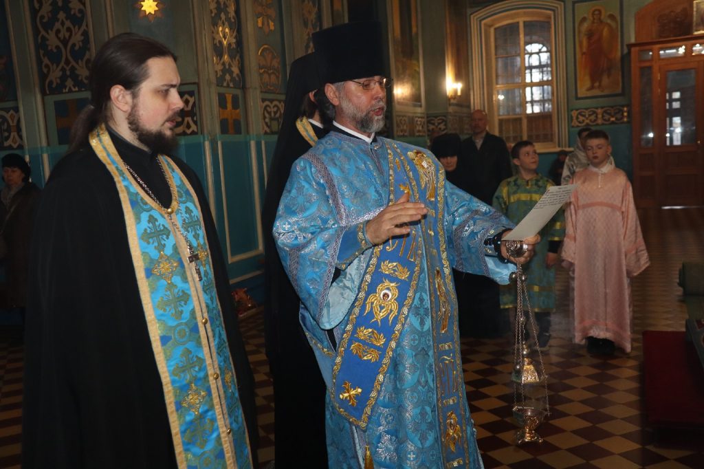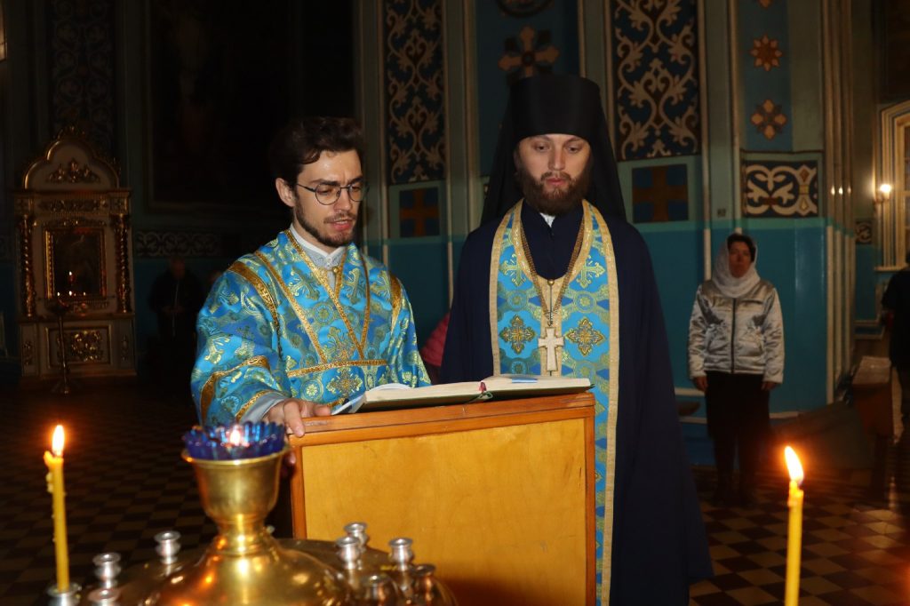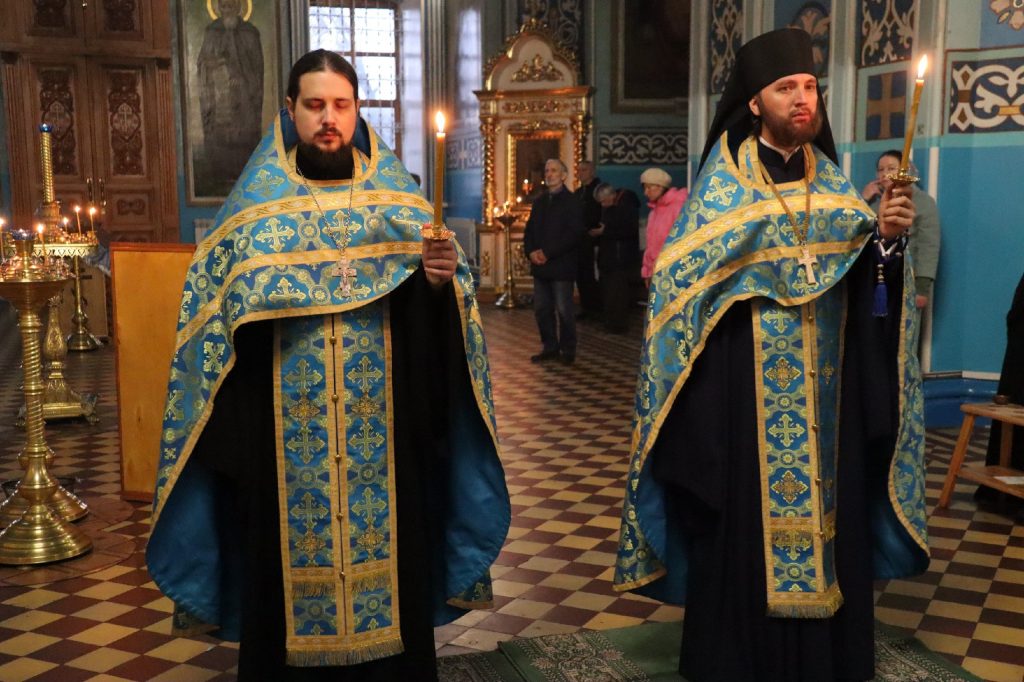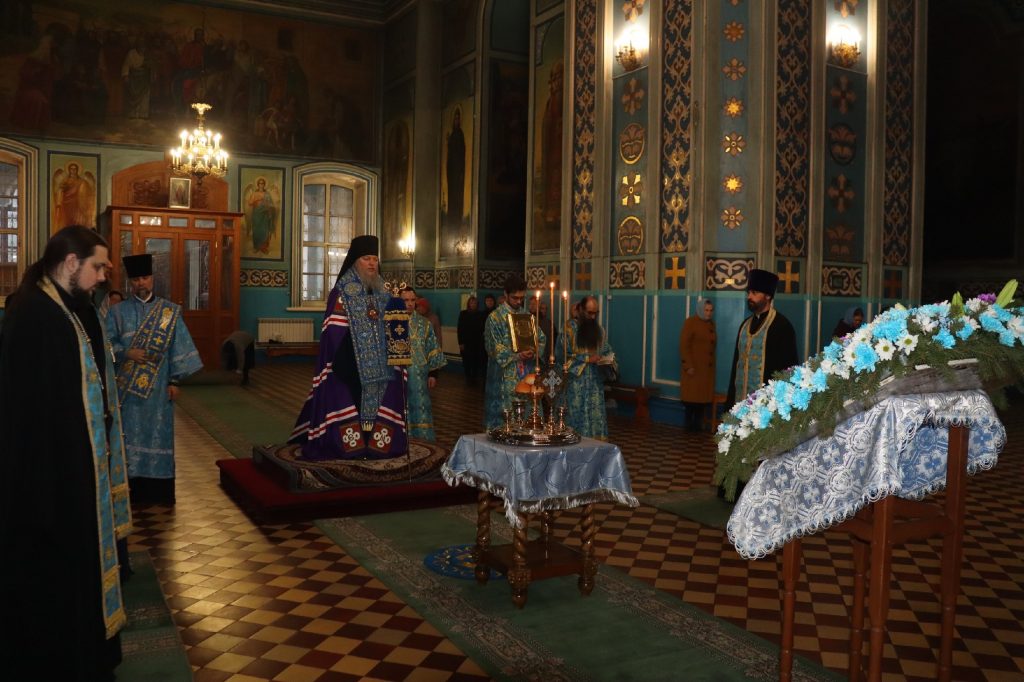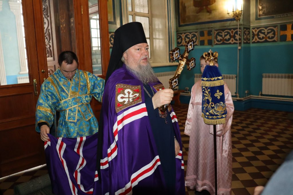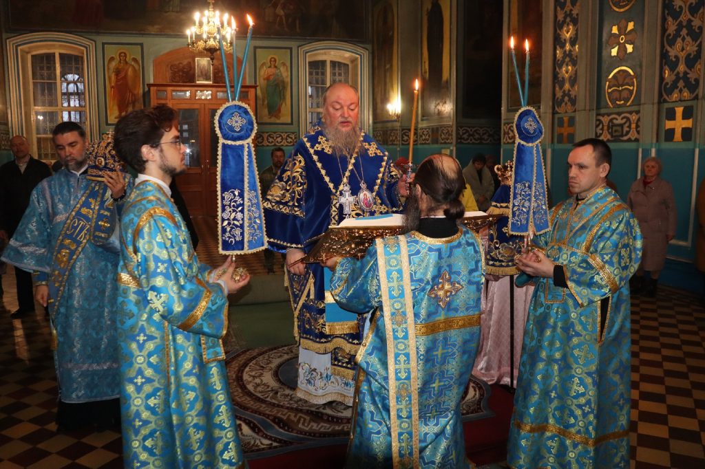 За вечерним богослужением епископ Митрофан совершил литию с освящением хлебов, пшеницы, вина и елея.