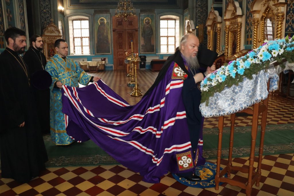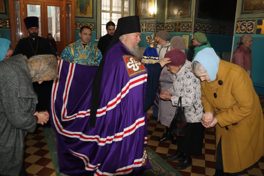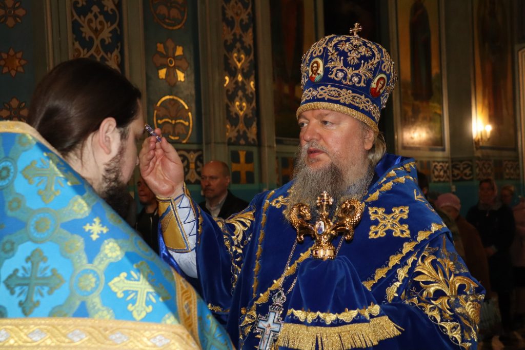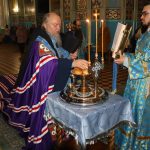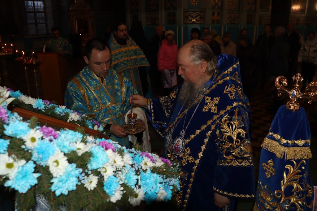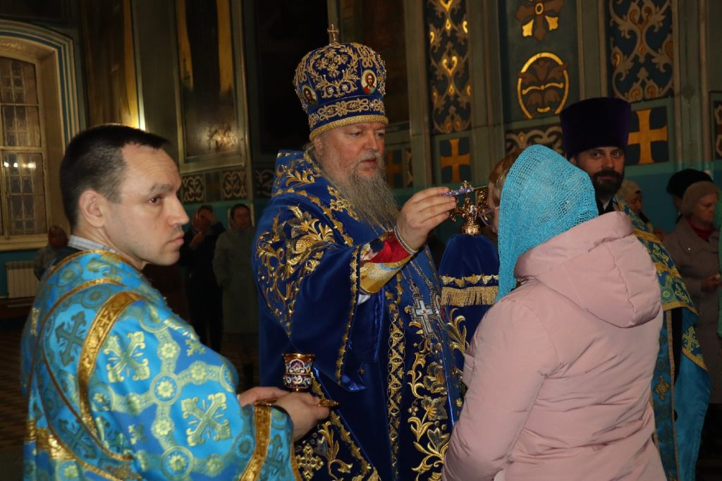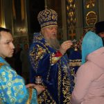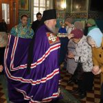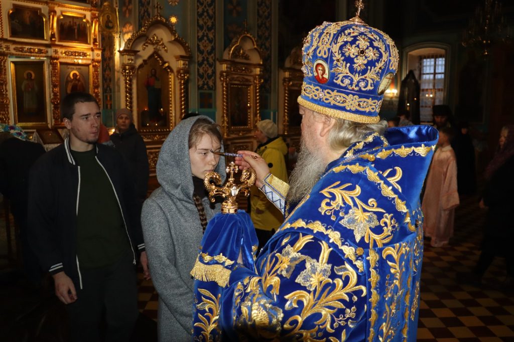 Во время утрени, по прочтении Святого Евангелия, епископ Митрофан совершил помазание духовенства и верующих, собравшихся в храме накануне праздника, освященным елеем.