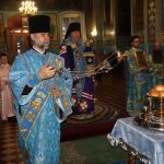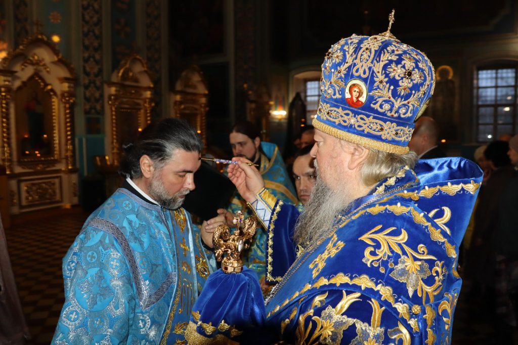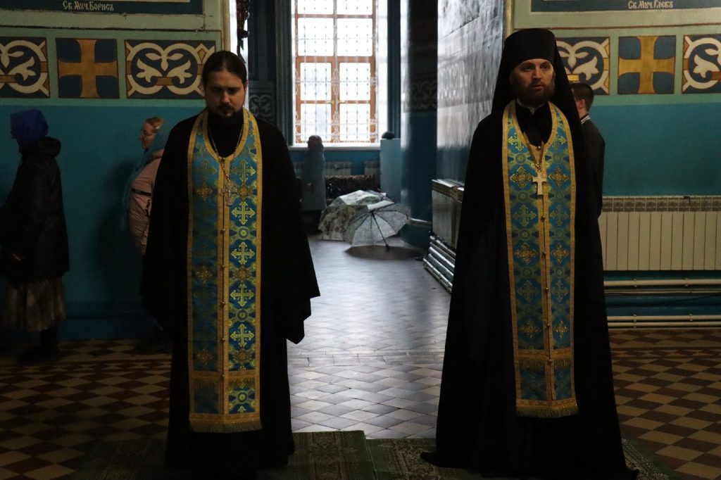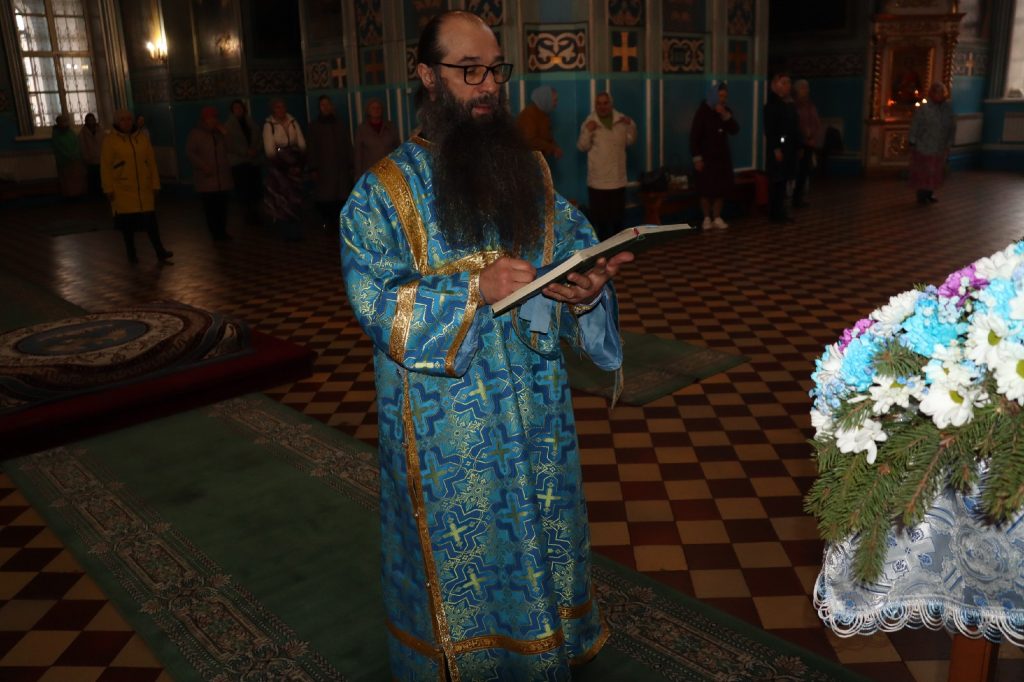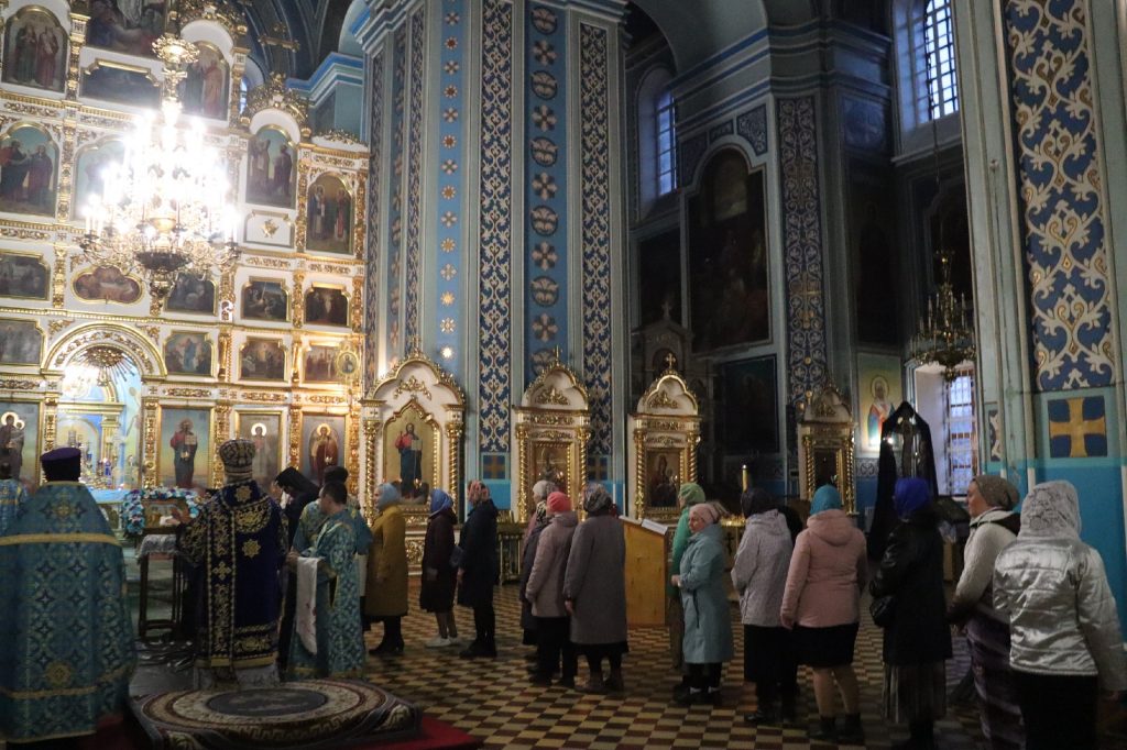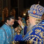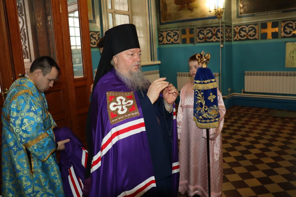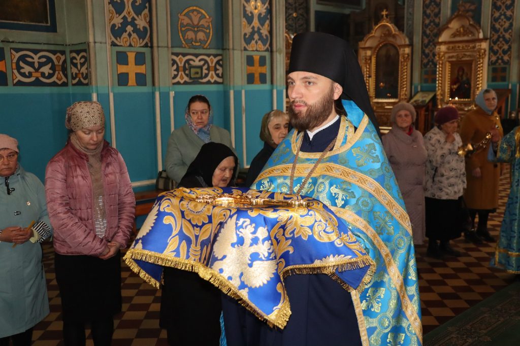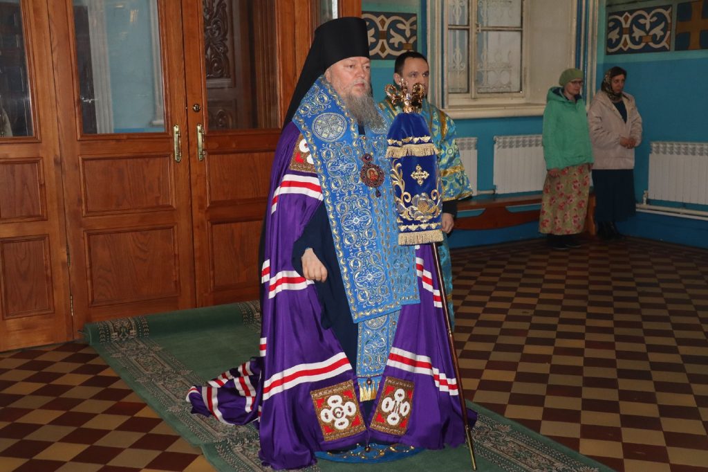 Во время утрени, по прочтении Святого Евангелия, епископ Митрофан совершил помазание духовенства и верующих, собравшихся в храме накануне праздника, освященным елеем.