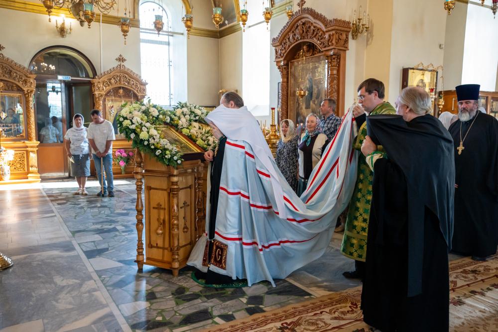 За вечерним богослужением Высокопреосвященный митрополит Серафим совершил литию с освящением хлебов, пшеницы, вина и елея. Во время утрени, по прочтении Святого Евангелия, глава Пензенской митрополии помазал освященным елеем верующих, собравшихся в храме накануне праздника.