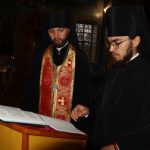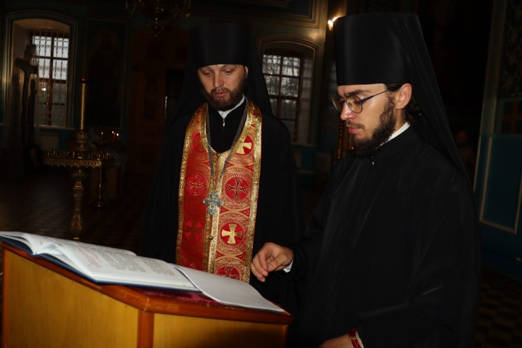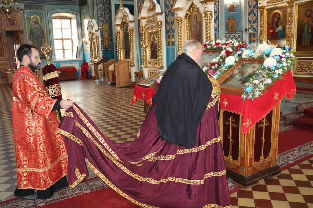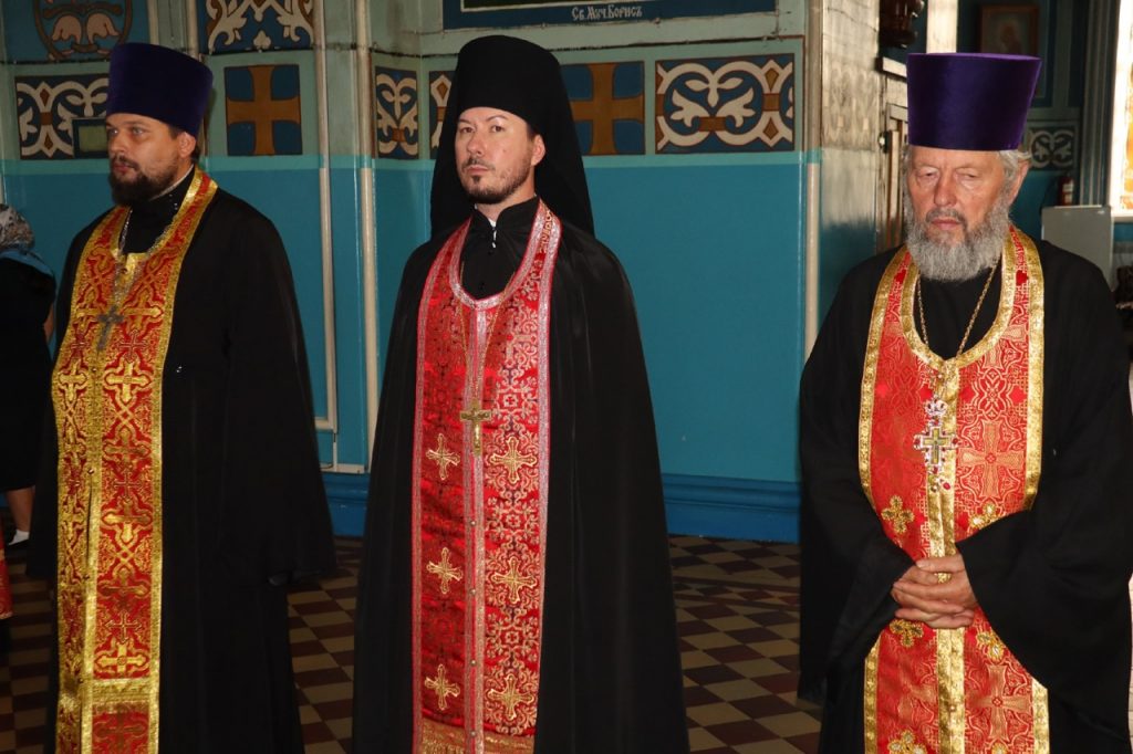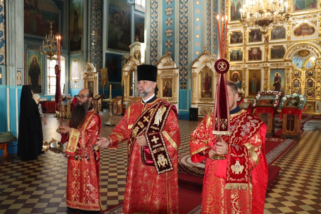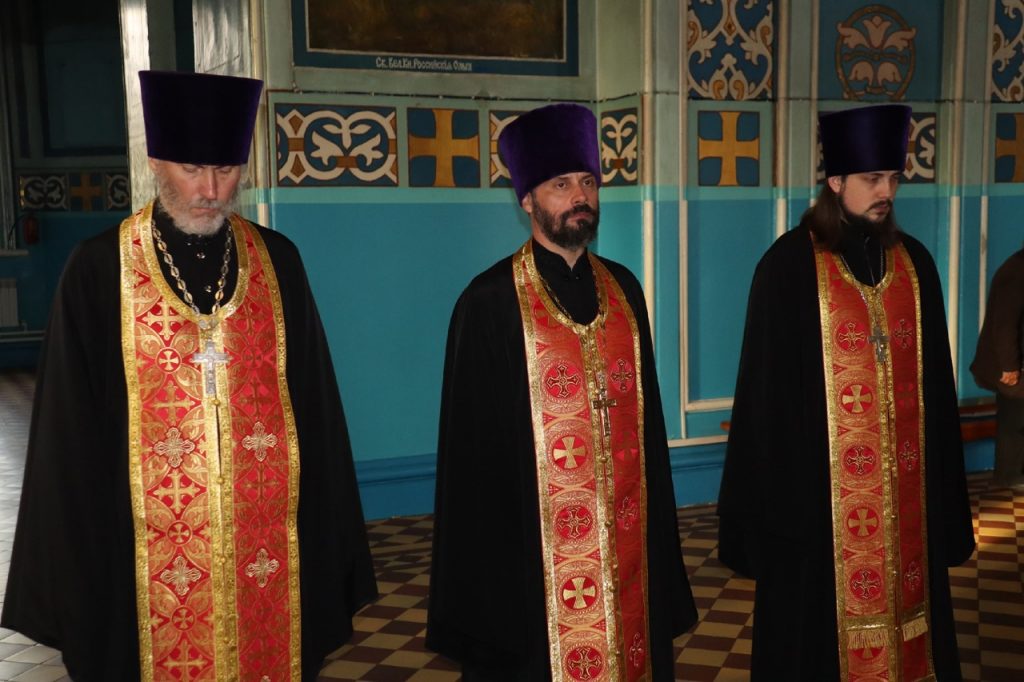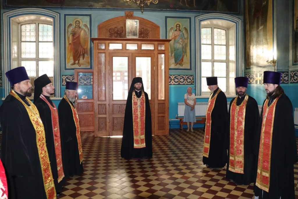 Его Преосвященству сослужили: иеромонах Амвросий (Макаров), врио. секретаря Епархиального Управления; настоятель храма свт.Тихона, Патриарха Московского и всея Руси, с.Красная Горка Колышлейского района протоиерей Иаков Рыбчич; настоятель церкви свт. Николая Чудотворца с.Вертуновка Бековского района протоиерей Георгий Степанов; настоятель церкви Казанской иконы Божией Матери с.Пригородное Сердобского района протоиерей Роман Скворцов; настоятель храма святого преподобного Сергия Радонежского г.Сердобска иеромонах Вениамин (Гришинов); ключарь кафедрального собора Архангела Михаила г.Сердобска, епархиальный древлехранитель иерей Роман Турецких; настоятель храма свт. Николая Чудотворца р.п. Колышлей иерей Димитрий Пятунин; клирик собора и руководитель епархиального отдела религиозного образования и катехизации иерей Александр Федин; клирик кафедрального собора Архангела Михаила г.Сердобска иеродиакон Иннокентий (Ганин), клирик храма Рождества Христова с. Трескино Колышлейского района диакон Виталий Зинич; клирики Сердобского благочиния диакон Владимир Эрекайкин и диакон Михаил Клопов.