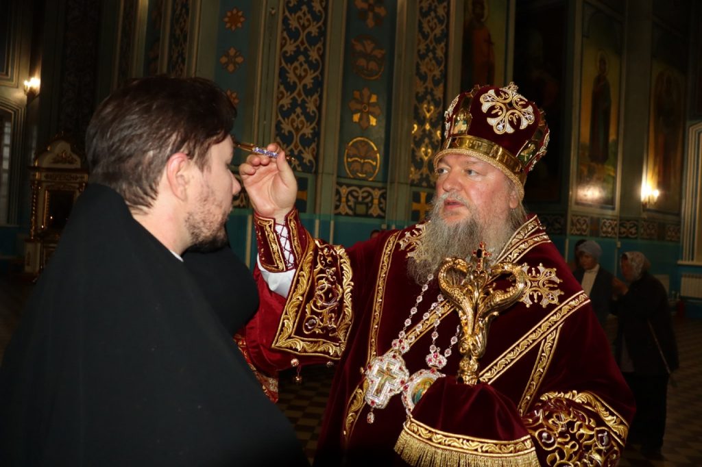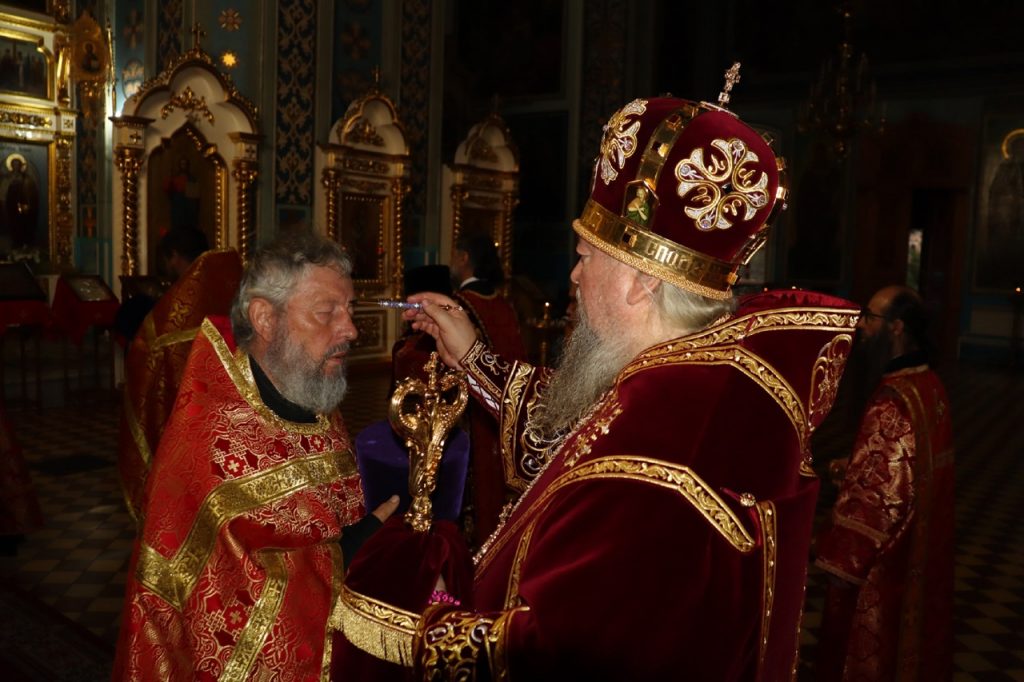 Во время утрени, по прочтении Святого Евангелия, глава Сердобской епархии совершил помазание духовенства и верующих, собравшихся в храме накануне праздничного дня, освященным елеем.