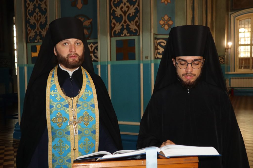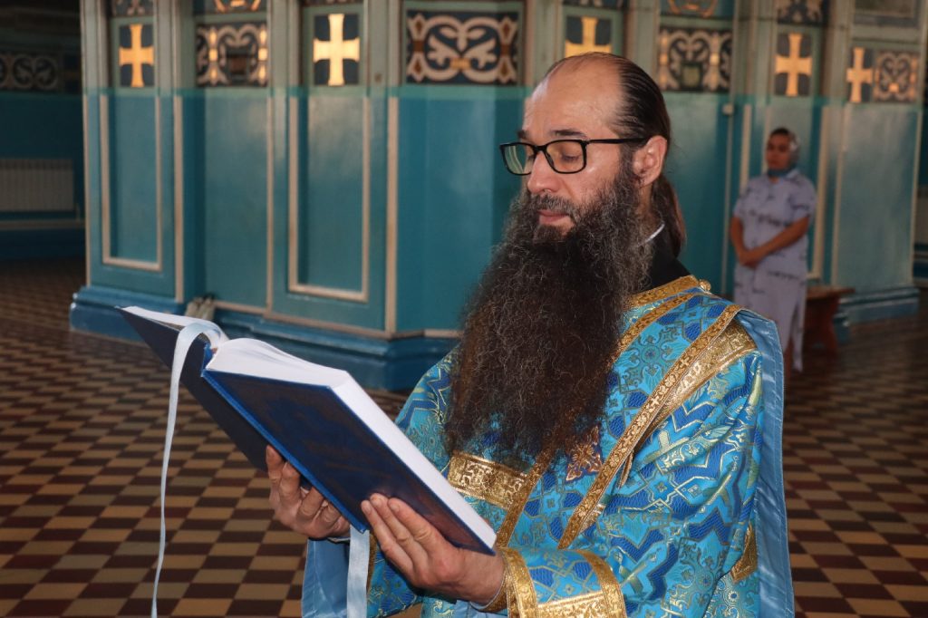 Его Преосвященству сослужили: иеромонах Амвросий (Макаров), врио. секретаря Епархиального Управления; ключарь кафедрального собора Архангела Михаила г.Сердобска, епархиальный древлехранитель иерей Роман Турецких; клирик собора и руководитель епархиального отдела религиозного образования и катехизации иерей Александр Федин; иеродиакон Иннокентий (Ганин); диакон Владимир Эрекайкин, диакон Михаил Клопов.
