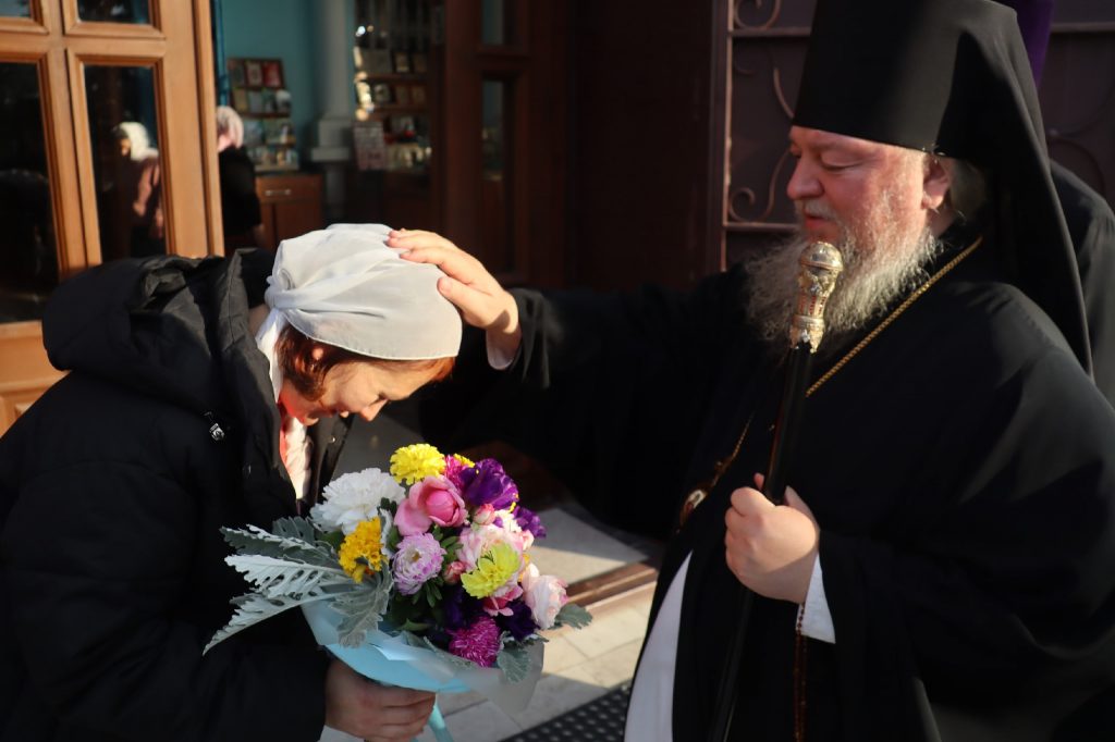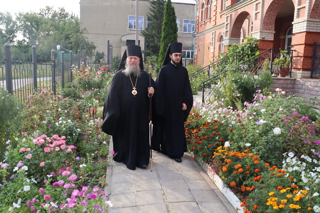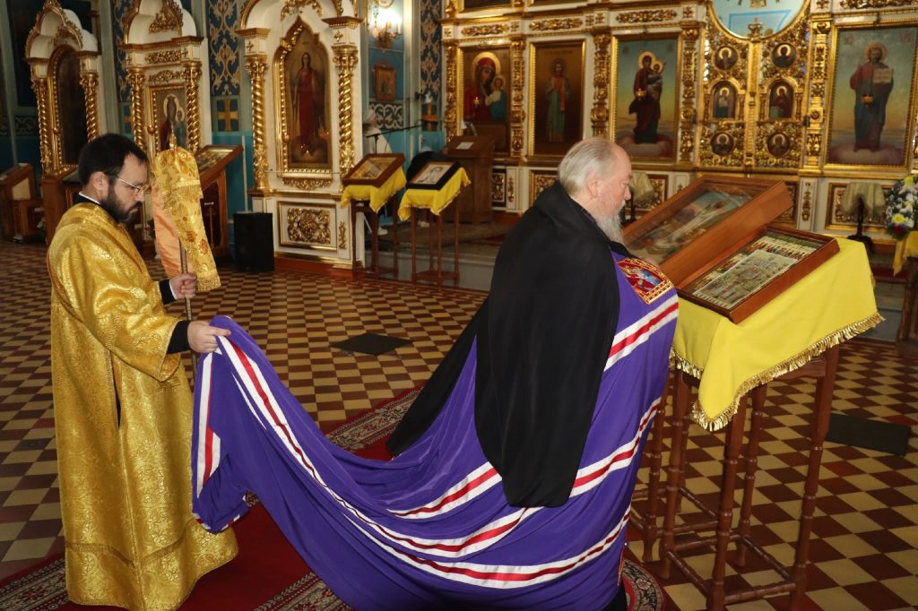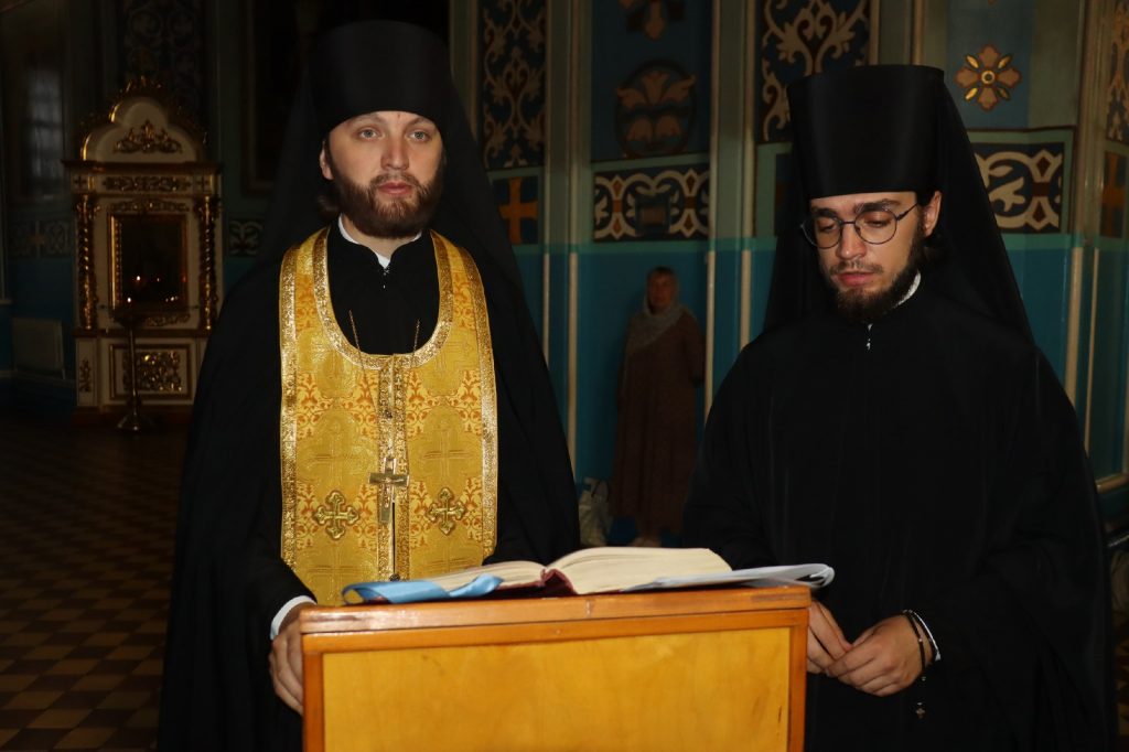 Его Преосвященству сослужили: иеромонах Амвросий (Макаров), врио. секретаря Епархиального Управления; ключарь кафедрального собора Архангела Михаила г.Сердобска, епархиальный древлехранитель иерей Роман Турецких; клирик собора и руководитель епархиального отдела религиозного образования и катехизации иерей Александр Федин; иеродиакон Иннокентий (Ганин); диакон Владимир Эрекайкин, диакон Михаил Клопов.