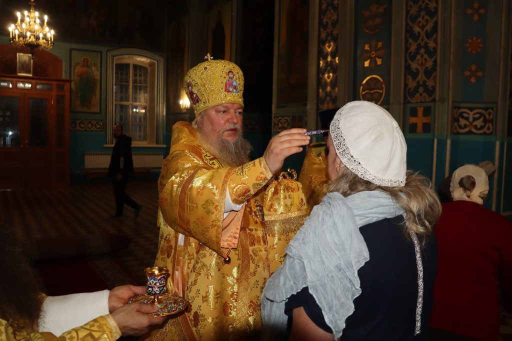 Во время утрени, по прочтении Святого Евангелия, глава Сердобской епархии помазал духовенство и верующих освященным елеем.
