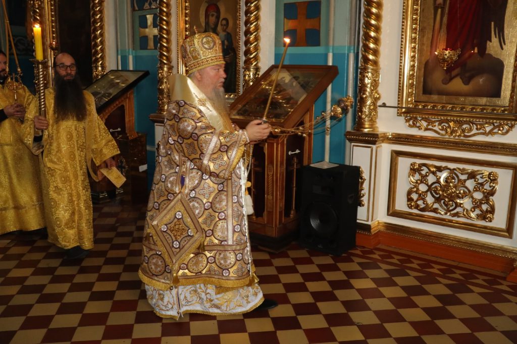 Вечером 4 октября 2025 года, в канун Недели 17-й по Пятидесятнице, епископ Сердобский и Спасский Митрофан совершил всенощное бдение в кафедральном соборе Архангела Михаила г.Сердобска.