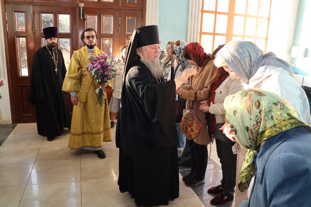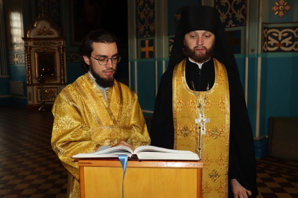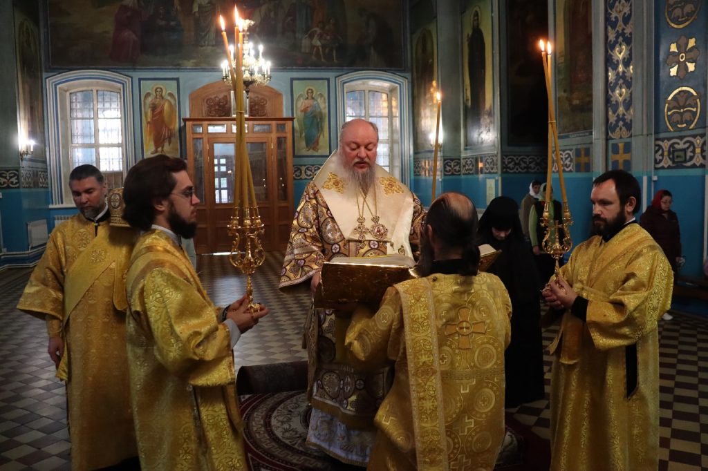 Его Преосвященству сослужили: иеромонах Амвросий (Макаров), врио. секретаря Епархиального Управления; ключарь кафедрального собора Архангела Михаила г.Сердобска, епархиальный древлехранитель иерей Роман Турецких; клирик собора и руководитель епархиального отдела религиозного образования и катехизации иерей Александр Федин; иерей Михаил Клопов; иеродиакон Иннокентий (Ганин); диакон Владимир Эрекайкин. .