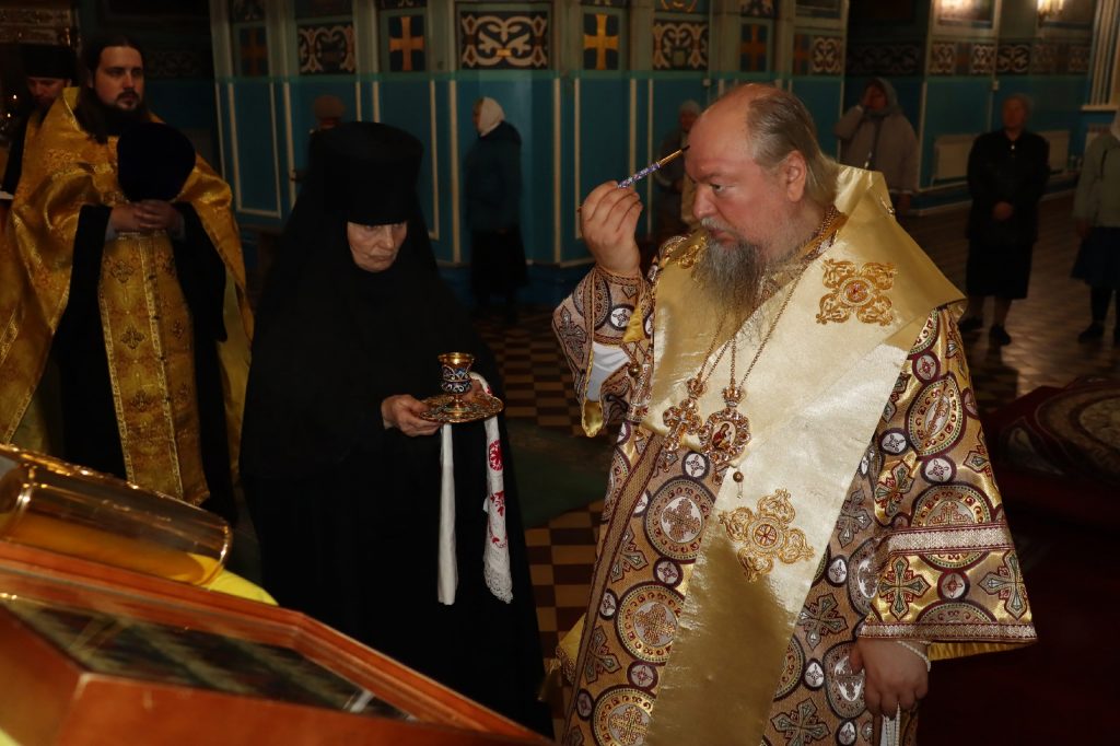 Во время утрени, по прочтении Святого Евангелия, глава Сердобской епархии помазал духовенство и верующих освященным елеем.