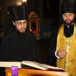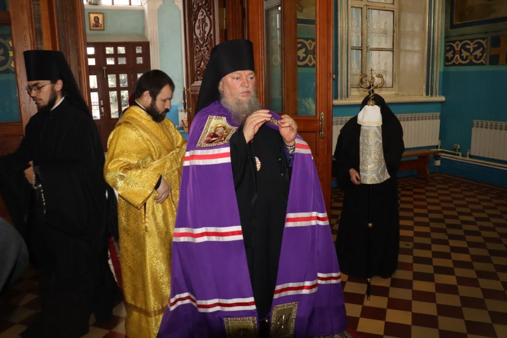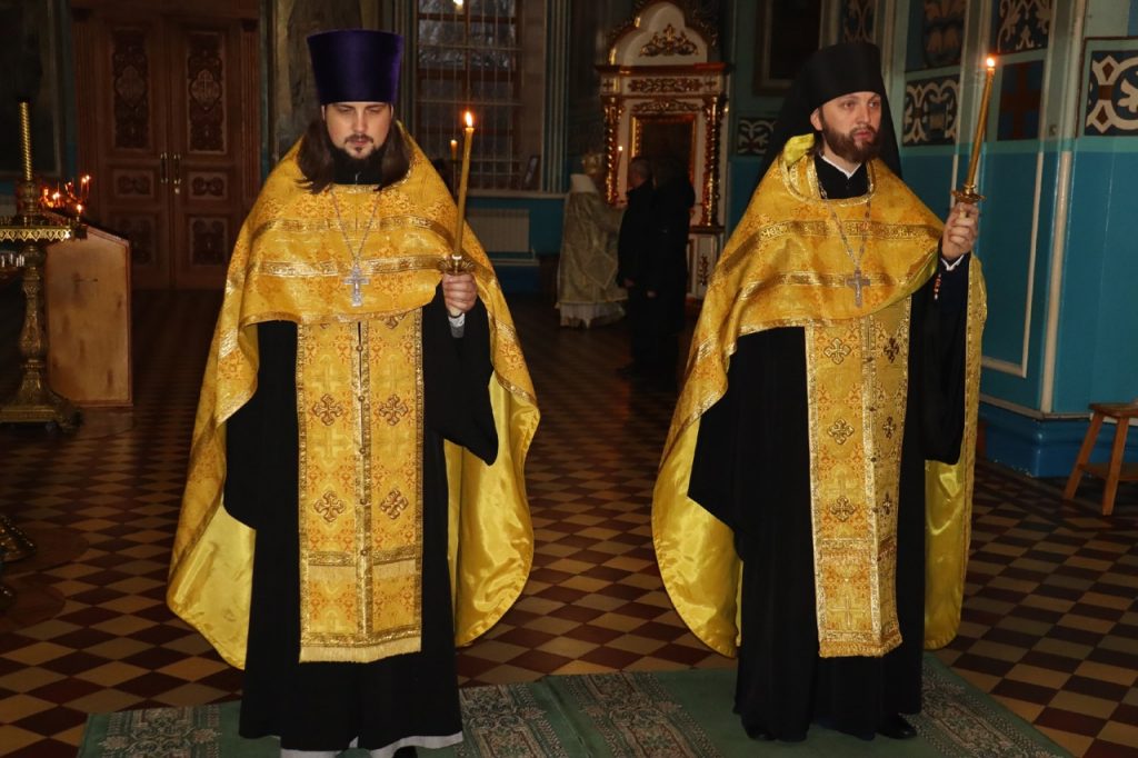 Его Преосвященству сослужили: иеромонах Амвросий (Макаров), врио. секретаря Епархиального Управления; ключарь кафедрального собора Архангела Михаила г.Сердобска, епархиальный древлехранитель иерей Роман Турецких; клирик собора и руководитель епархиального отдела религиозного образования и катехизации иерей Александр Федин; иеродиакон Иннокентий (Ганин); диакон Владимир Эрекайкин.