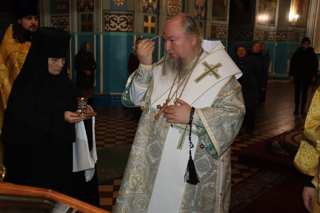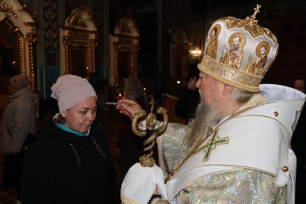 Во время утрени, по прочтении Святого Евангелия, глава Сердобской епархии помазал духовенство и верующих освященным елеем.