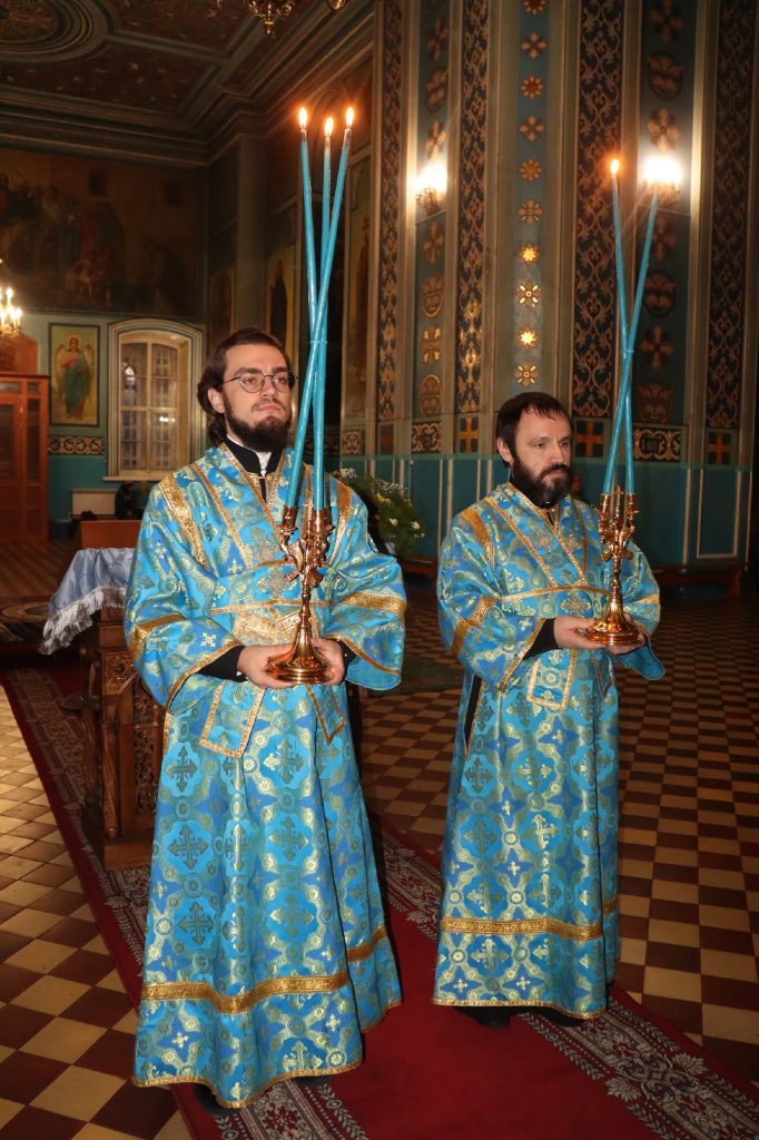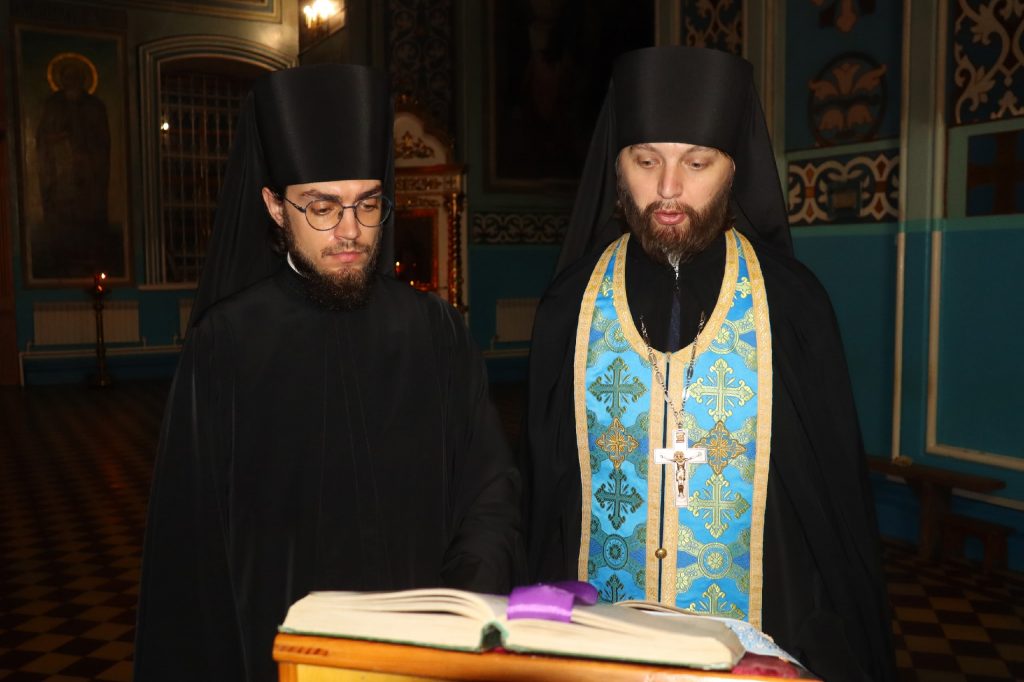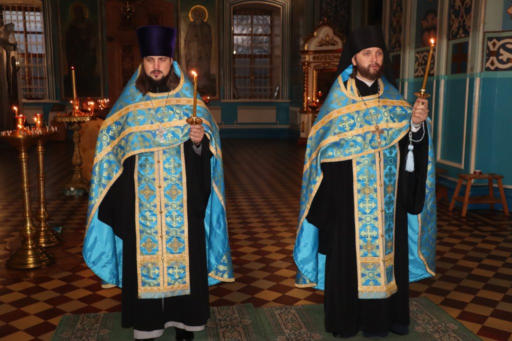 Его Преосвященству сослужили: иеромонах Амвросий (Макаров), врио. секретаря Епархиального Управления; ключарь кафедрального собора Архангела Михаила г.Сердобска, епархиальный древлехранитель иерей Роман Турецких; клирик собора и руководитель епархиального отдела религиозного образования и катехизации иерей Александр Федин; иеродиакон Иннокентий (Ганин); диакон Владимир Эрекайкин.