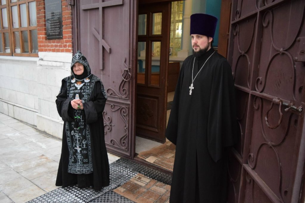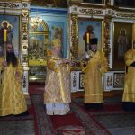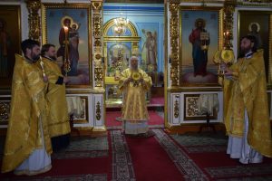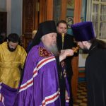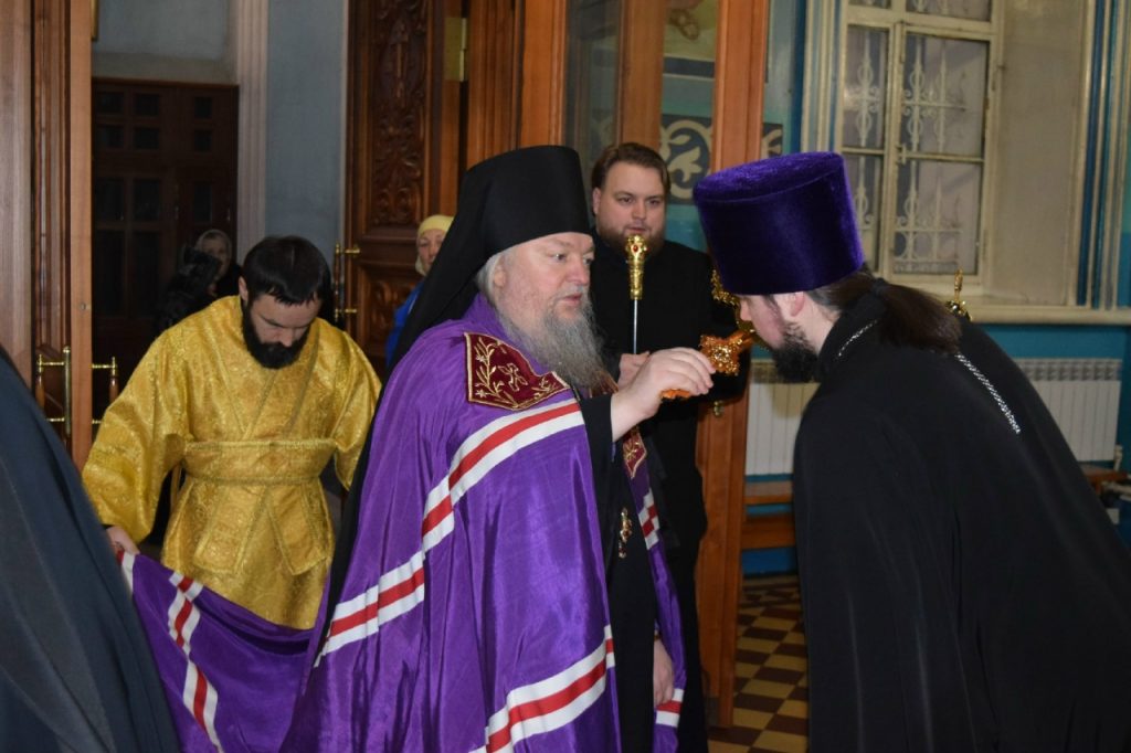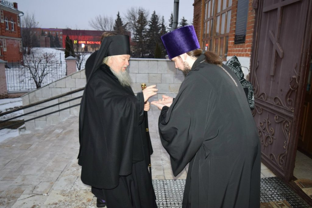 Его Преосвященству сослужили: иеромонах Амвросий (Макаров), врио. секретаря Епархиального Управления; ключарь кафедрального собора Архангела Михаила г.Сердобска, епархиальный древлехранитель иерей Роман Турецких; клирик собора и руководитель епархиального отдела религиозного образования и катехизации иерей Александр Федин; иеродиакон Иннокентий (Ганин); диакон Владимир Эрекайкин.