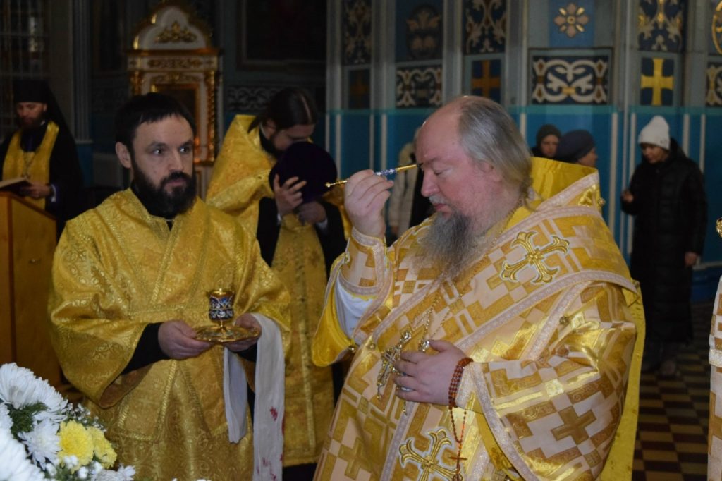 Во время утрени, по прочтении Святого Евангелия, глава Сердобской епархии помазал духовенство и верующих освященным елеем.