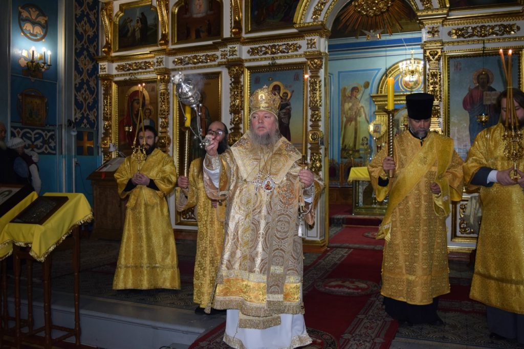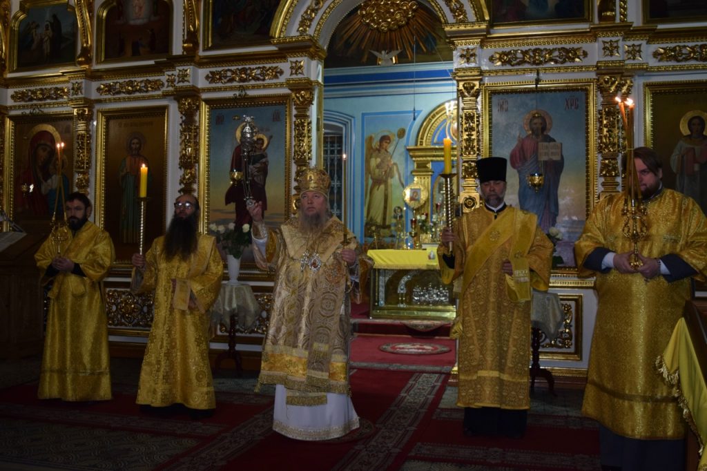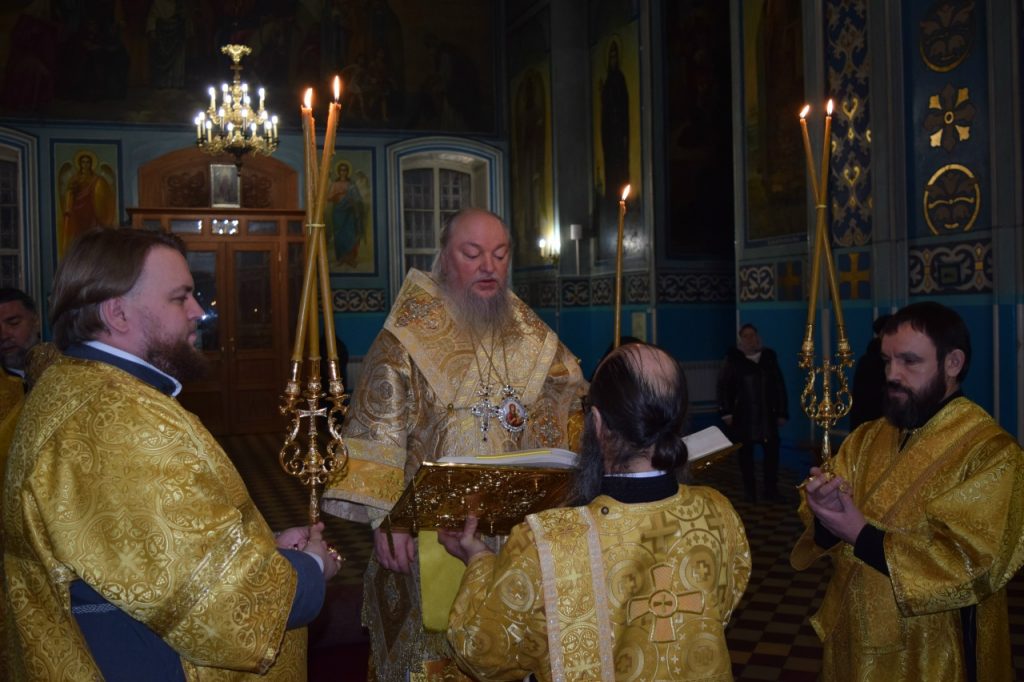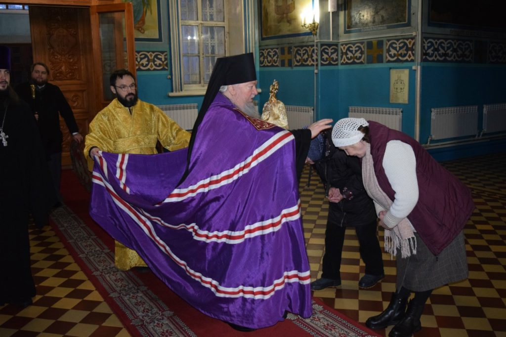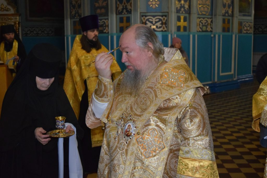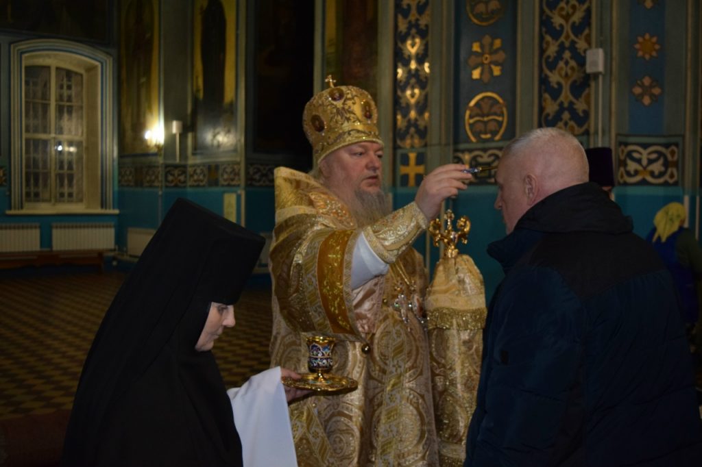 Во время утрени, по прочтении Святого Евангелия, епископ Митрофан совершил помазание духовенства и верующих, собравшихся в храме накануне воскресного дня, освящённым елеем.
