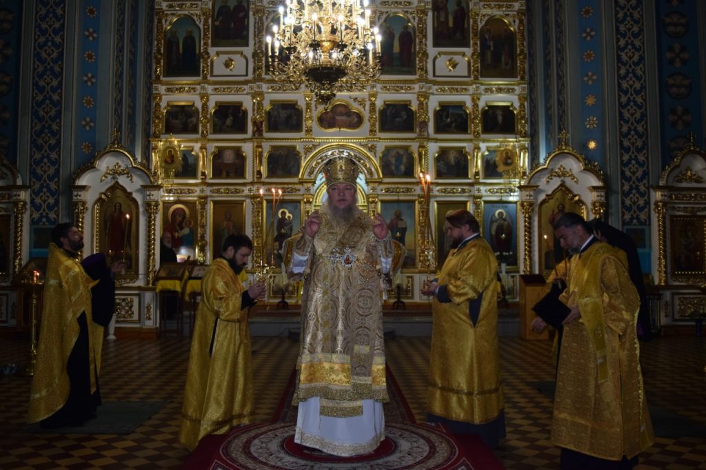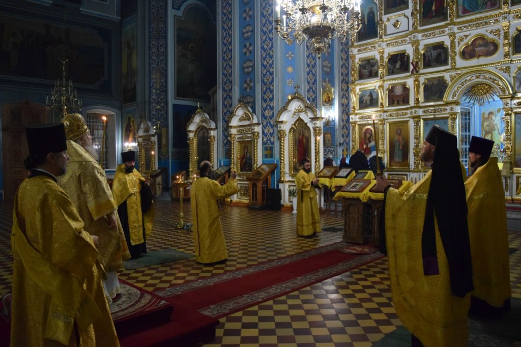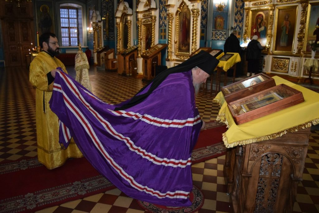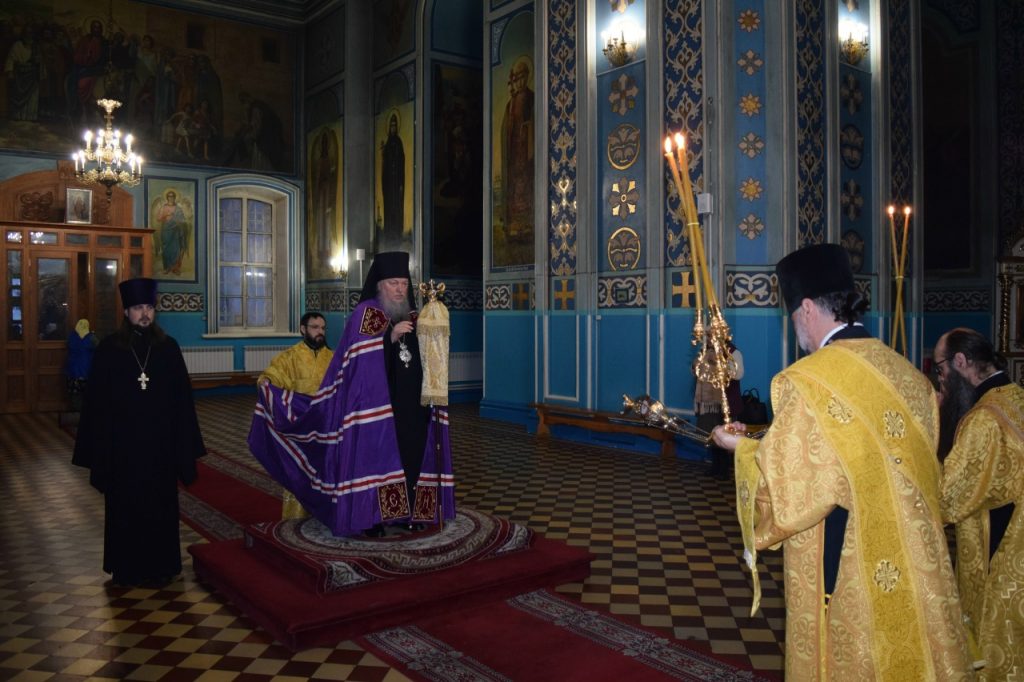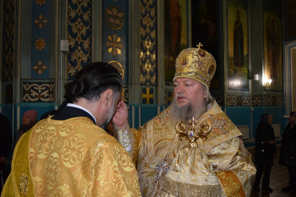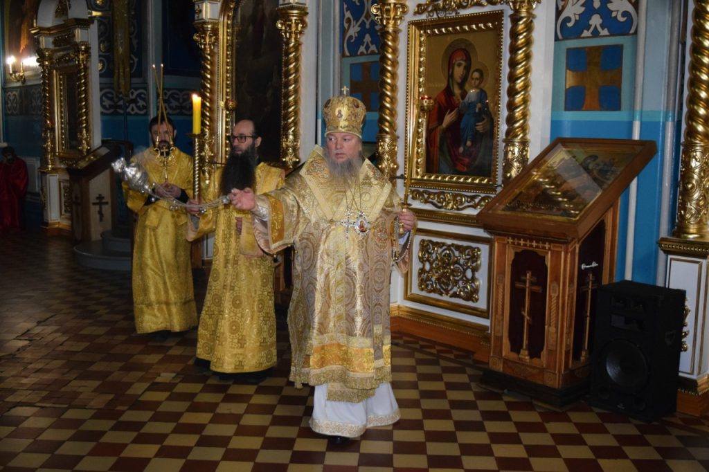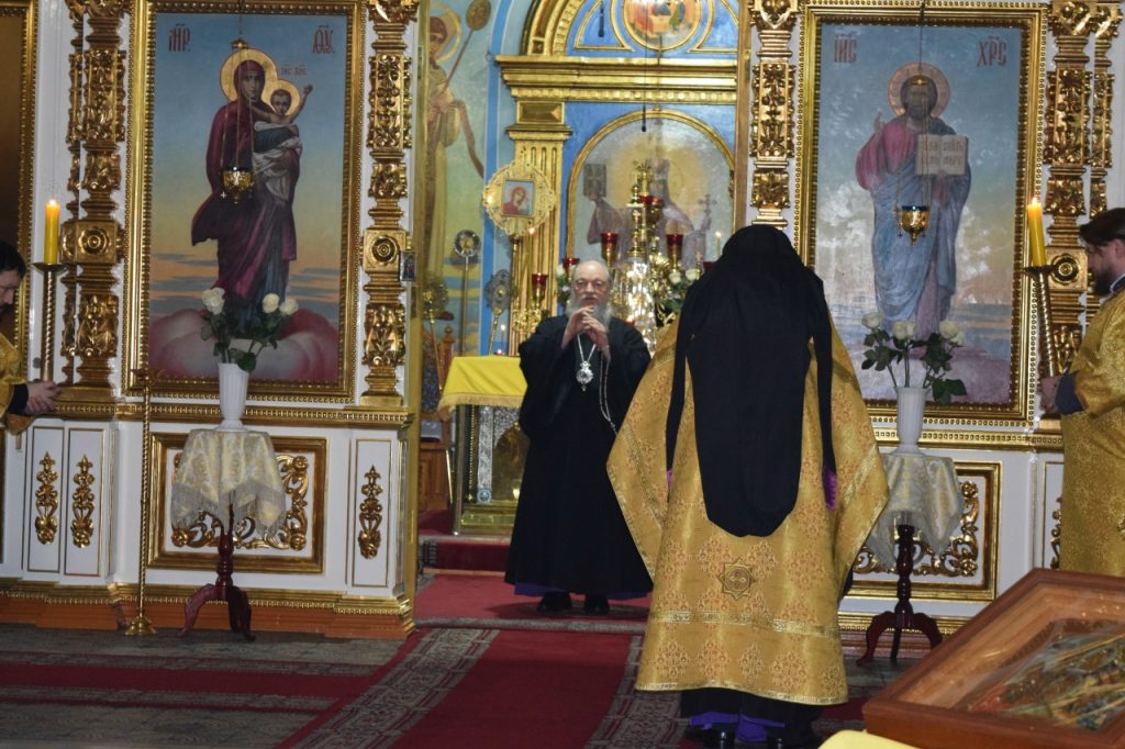Во время утрени, по прочтении Святого Евангелия, епископ Митрофан совершил помазание духовенства и верующих, собравшихся в храме накануне воскресного дня, освящённым елеем.
