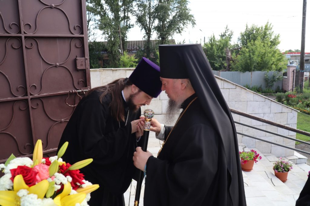 Его Преосвященству сослужили: иеромонах Амвросий (Макаров), врио. секретаря Епархиального Управления; ключарь кафедрального собора Архангела Михаила г.Сердобска, епархиальный древлехранитель иерей Роман Турецких; клирик собора и руководитель епархиального отдела религиозного образования и катехизации иерей Александр Федин; иеродиакон Иннокентий (Ганин); диакон Владимир Эрекайкин.