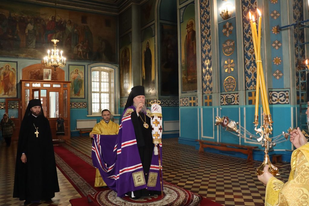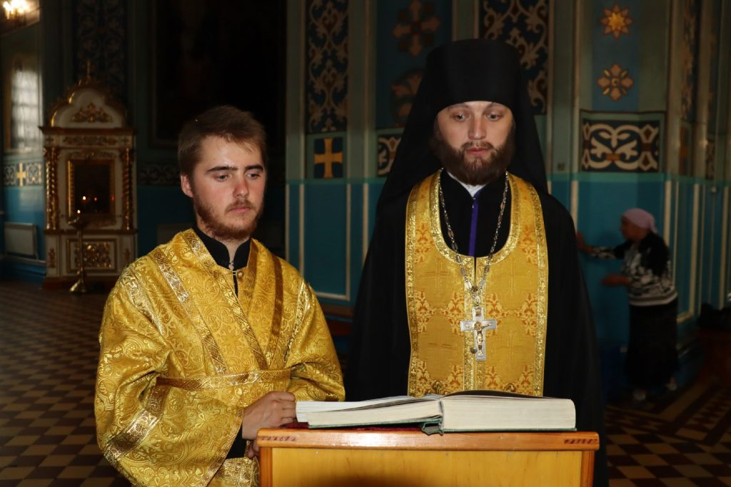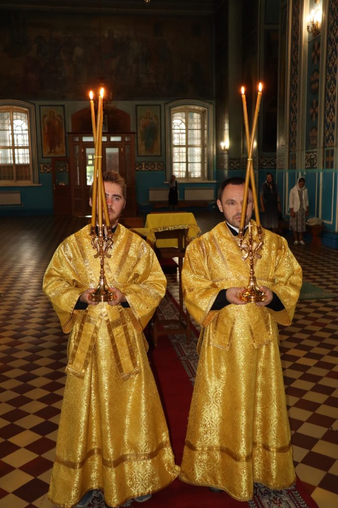 Его Преосвященству сослужили: иеромонах Амвросий (Макаров), врио. секретаря Епархиального Управления; ключарь кафедрального собора Архангела Михаила г.Сердобска, епархиальный древлехранитель иерей Роман Турецких; иеродиакон Иннокентий (Ганин); диакон Владимир Эрекайкин.