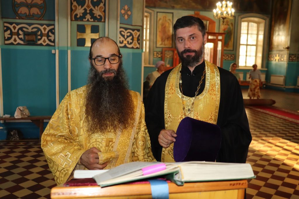 Его Преосвященству сослужили: иеромонах Амвросий (Макаров), врио. секретаря Епархиального Управления; ключарь кафедрального собора Архангела Михаила г.Сердобска, епархиальный древлехранитель иерей Роман Турецких; клирик собора и руководитель епархиального отдела религиозного образования и катехизации иерей Александр Федин; иеродиакон Иннокентий (Ганин); диакон Владимир Эрекайкин.