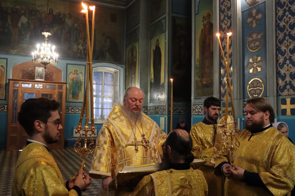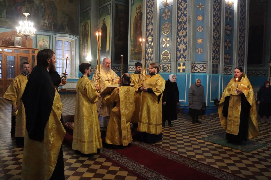 Вечером 22 февраля 2025 года, в канун Недели мясопустной, о Страшном Суде, епископ Сердобский и Спасский Митрофан совершил всенощное бдение в кафедральном соборе Архангела Михаила г.Сердобска.