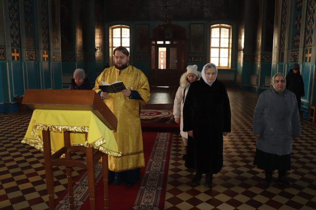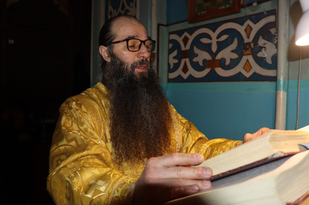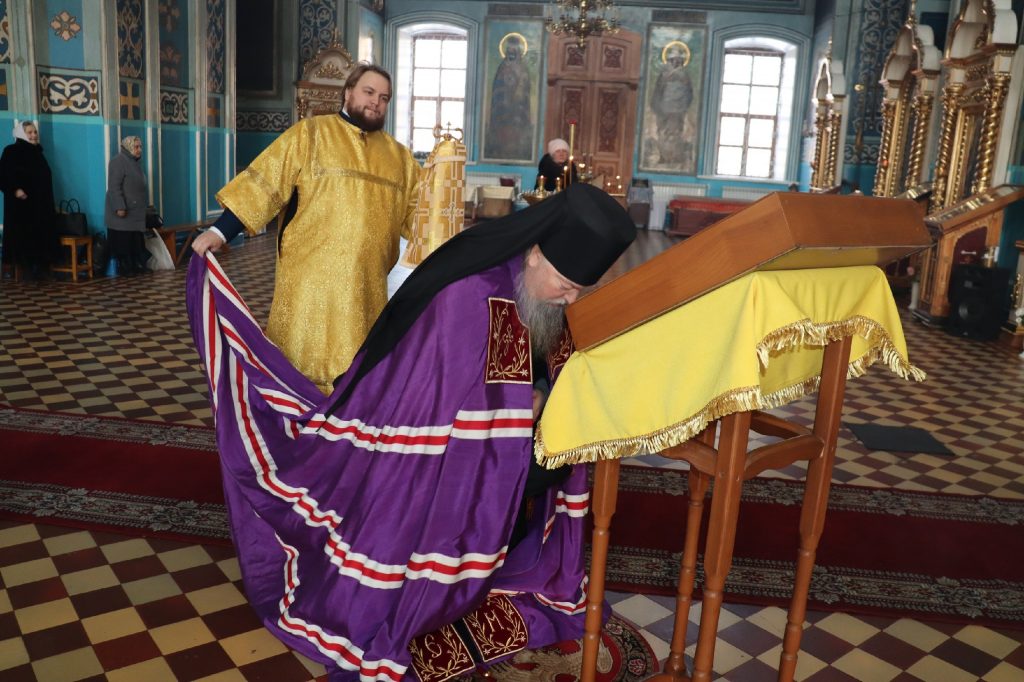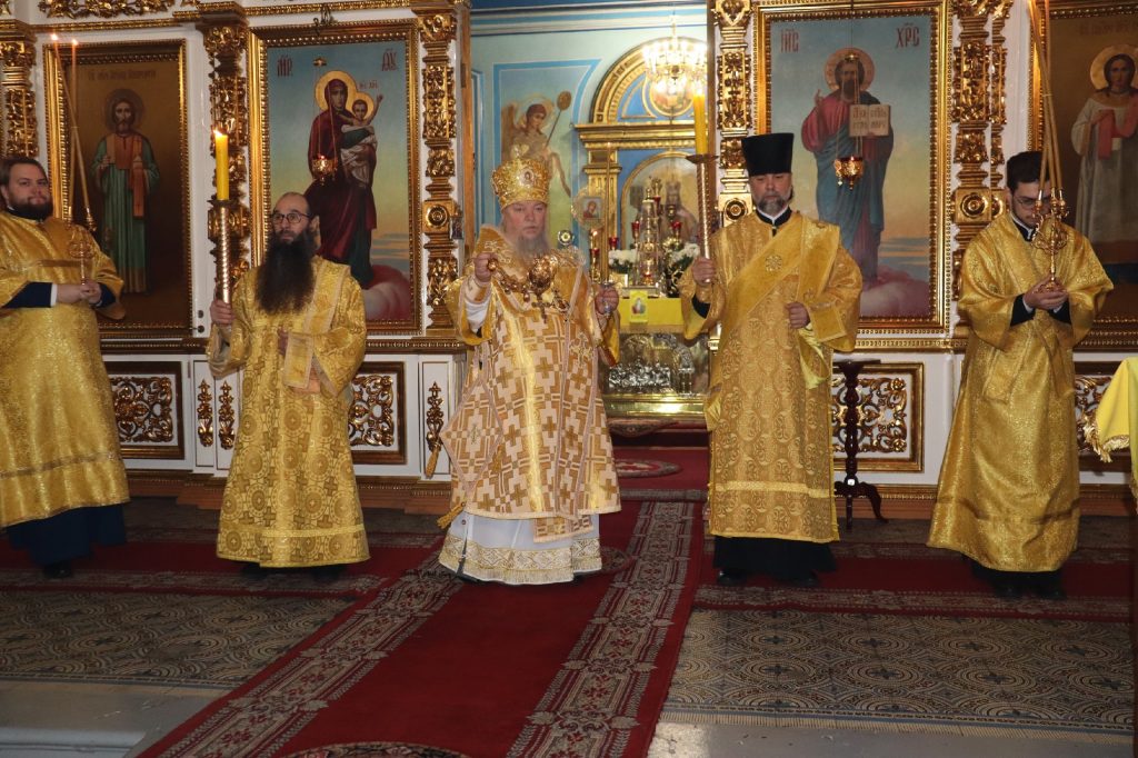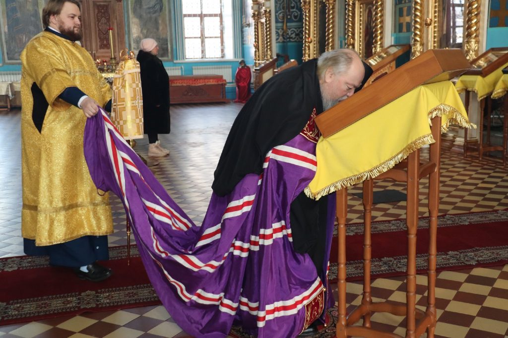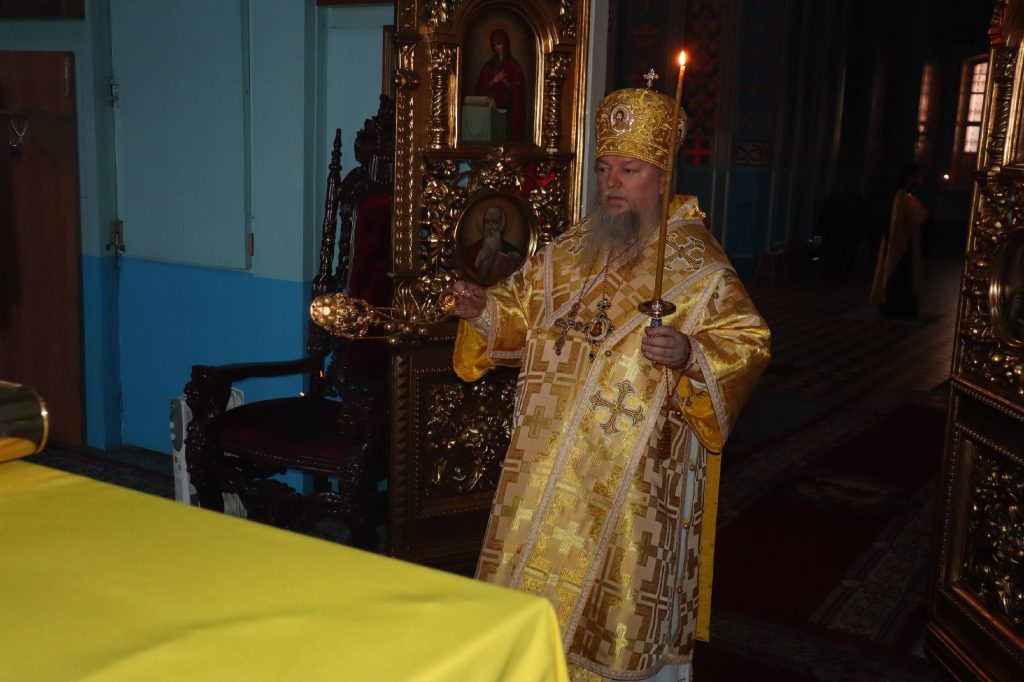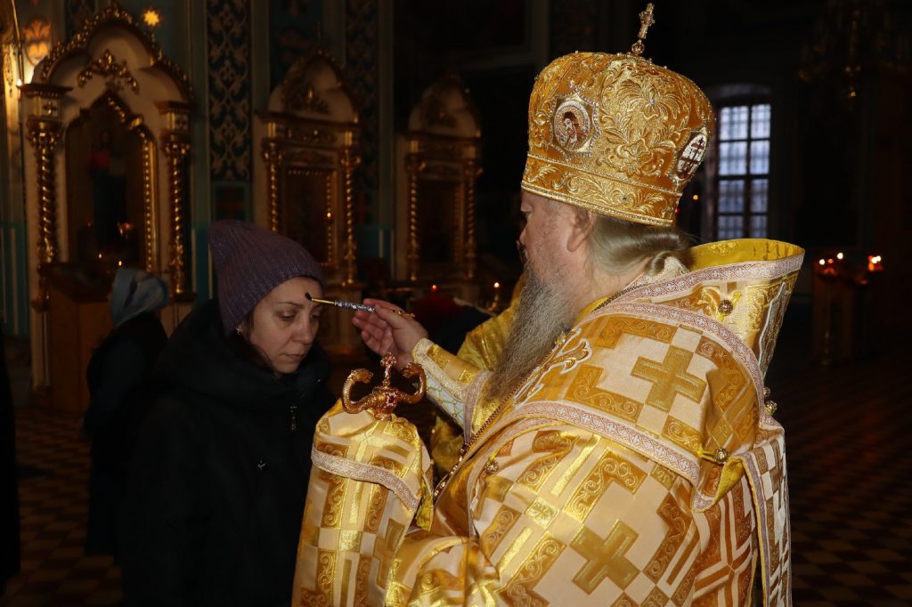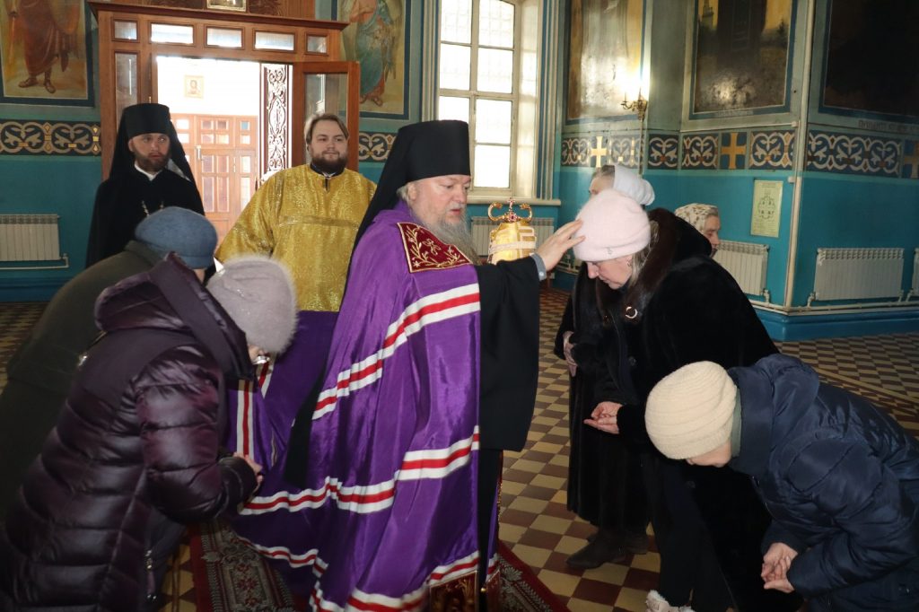 Во время утрени, по прочтении Святого Евангелия, епископ Митрофан совершил помазание духовенства и верующих, собравшихся в храме накануне воскресного дня, освященным елеем.