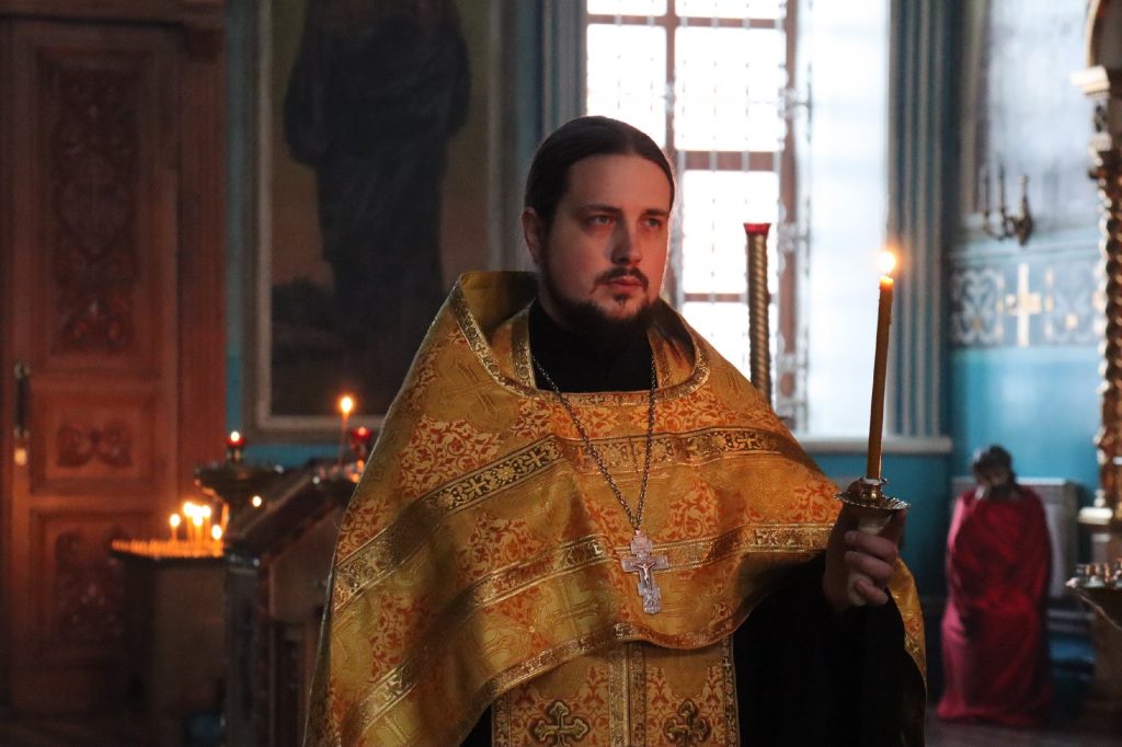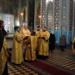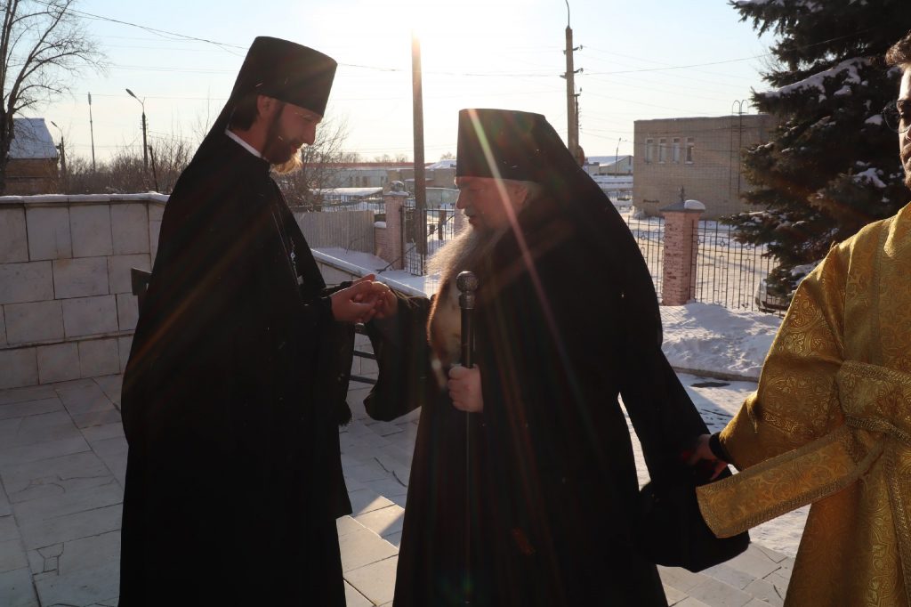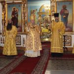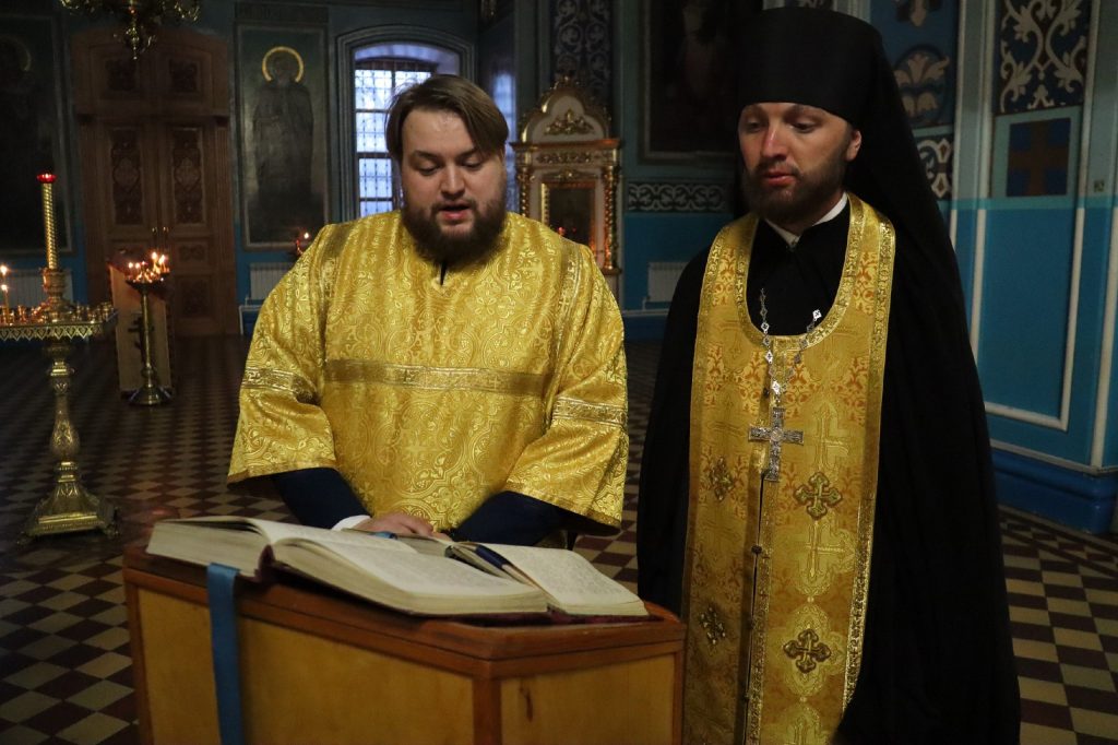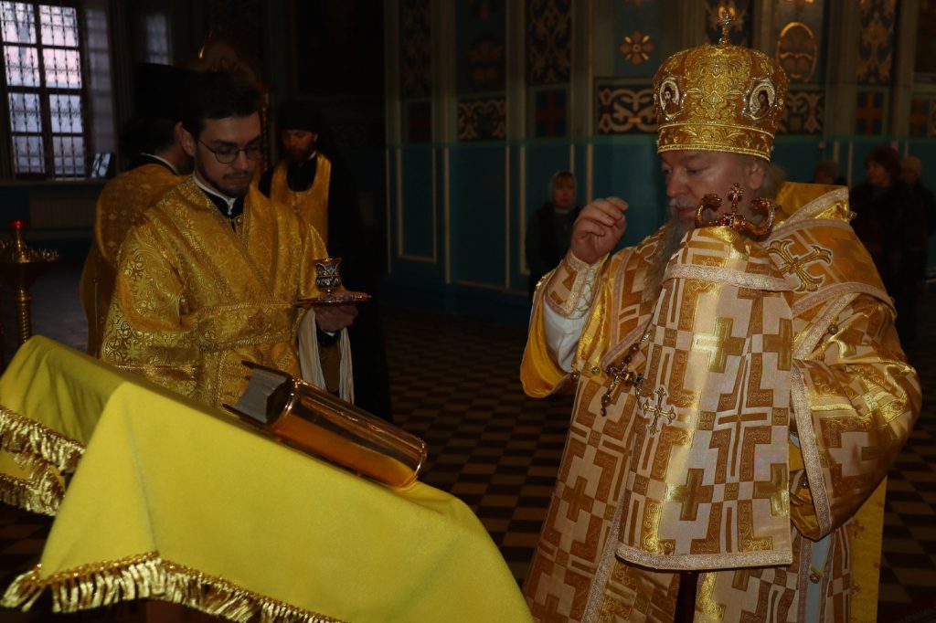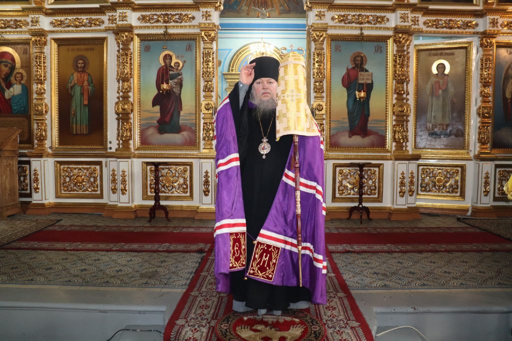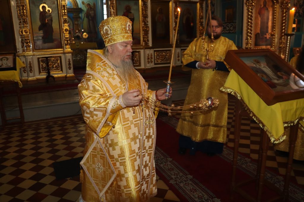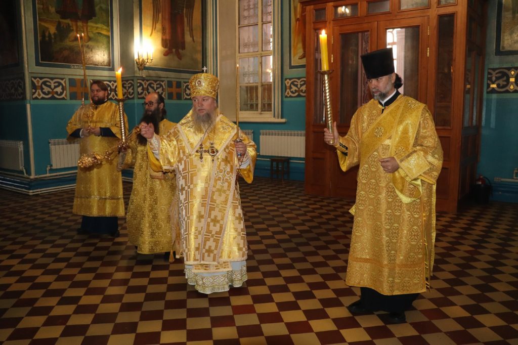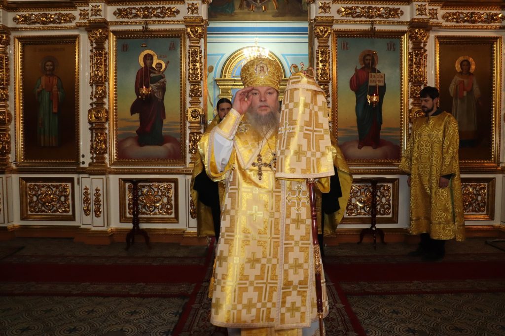 Его Преосвященству сослужили: иеромонах Амвросий (Макаров), врио. секретаря Епархиального Управления; клирик собора и руководитель епархиального отдела религиозного образования и катехизации иерей Александр Федин; иеродиакон Иннокентий (Ганин); диакон Владимир Эрекайкин.