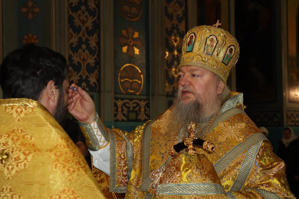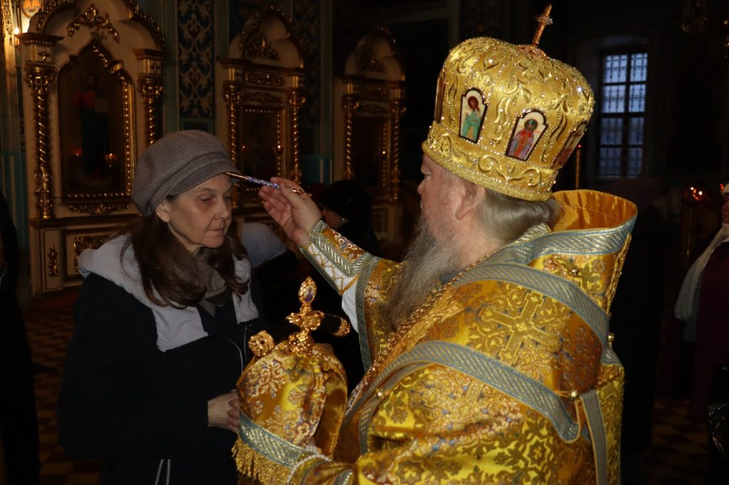 Во время утрени, по прочтении Святого Евангелия, епископ Митрофан совершил помазание духовенства и верующих, собравшихся в храме накануне праздника, освященным елеем.