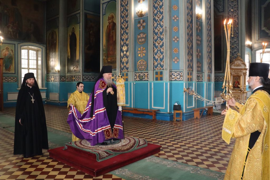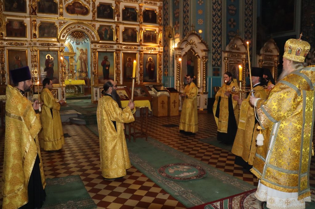 Вечером 01 марта 2025 года, в канун Недели сыропустной, воспоминания Адамова изгнания (Прощенного воскресенья), накануне дня памяти сщмч. Ермогена, патриарха Московского и всея Руси, чудотворца (1612), епископ Сердобский и Спасский Митрофан совершил всенощное бдение в кафедральном соборе Архангела Михаила г.Сердобска.