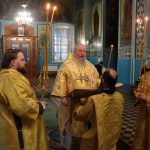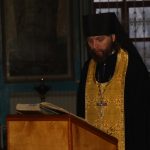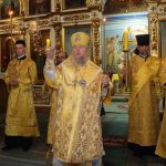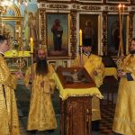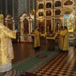 Его Преосвященству сослужили: иеромонах Амвросий (Макаров), врио. секретаря Епархиального Управления; клирик собора, руководитель епархиального отдела религиозного образования и катехизации иерей Александр Федин; иеродиакон Иннокентий (Ганин); диакон Владимир Эрекайкин, диакон Илия Кошолкин.